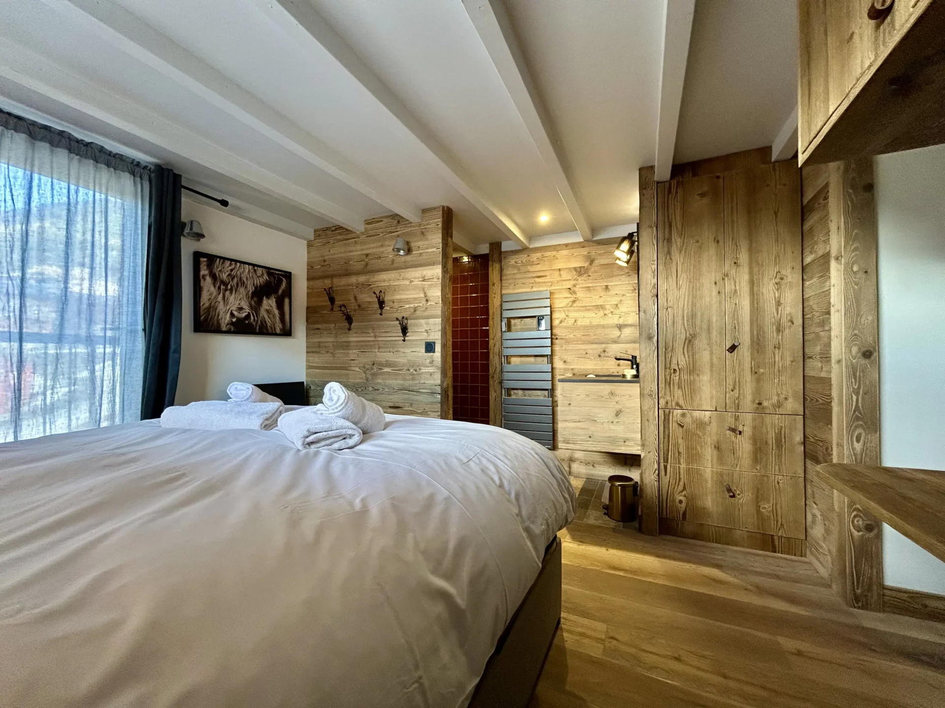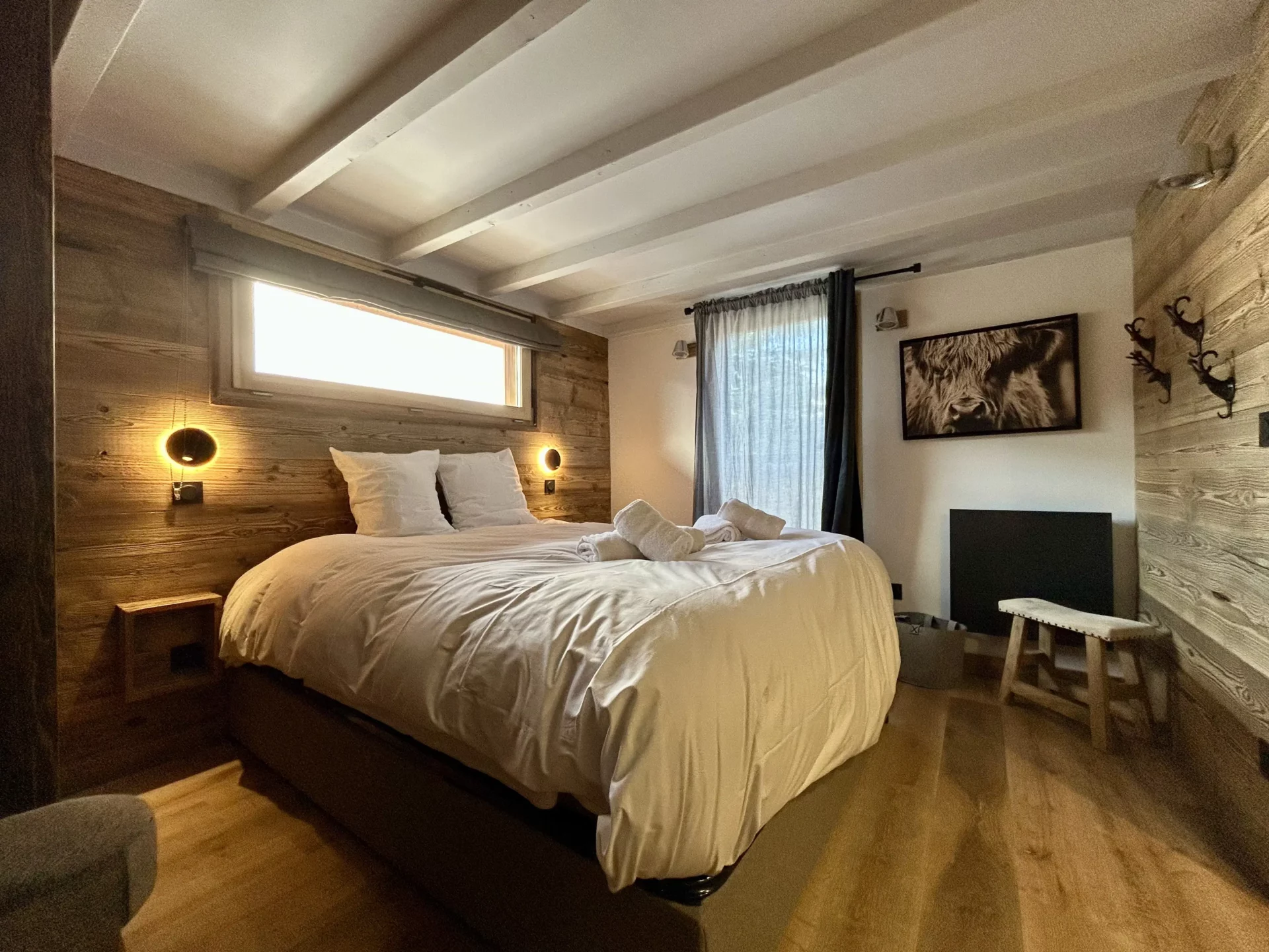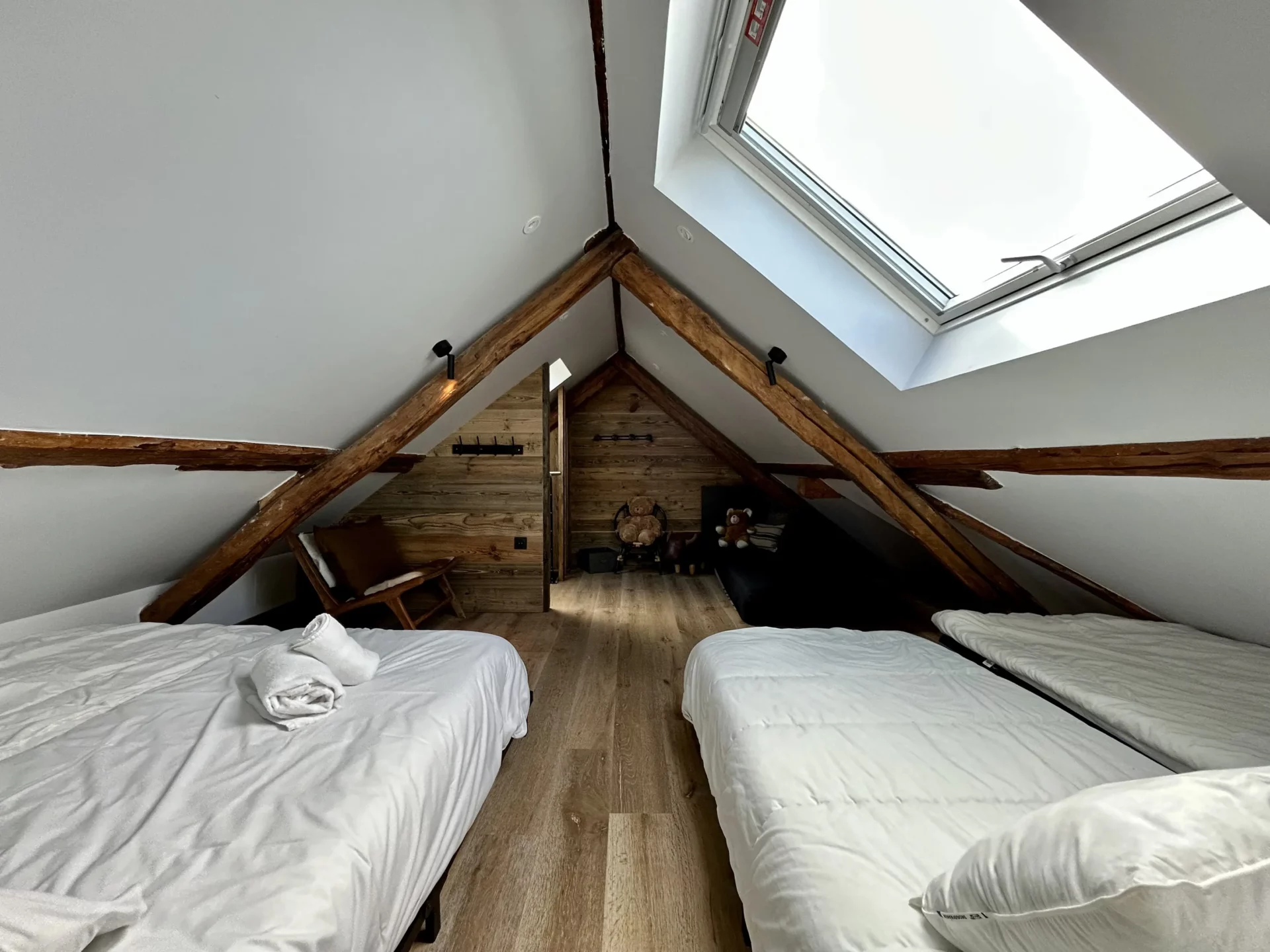 Du côté des couchages, le Chalet Eternel offre 4 chambres avec lit double (dont 2 en-suite), 1 dortoir chaleureux de 5 lits simples et 1 coin montagne de 2 lits superposés (1 lit double et 1 lit simple) pouvant ainsi accueillir jusqu’à 14 personnes (10 adultes maximum).