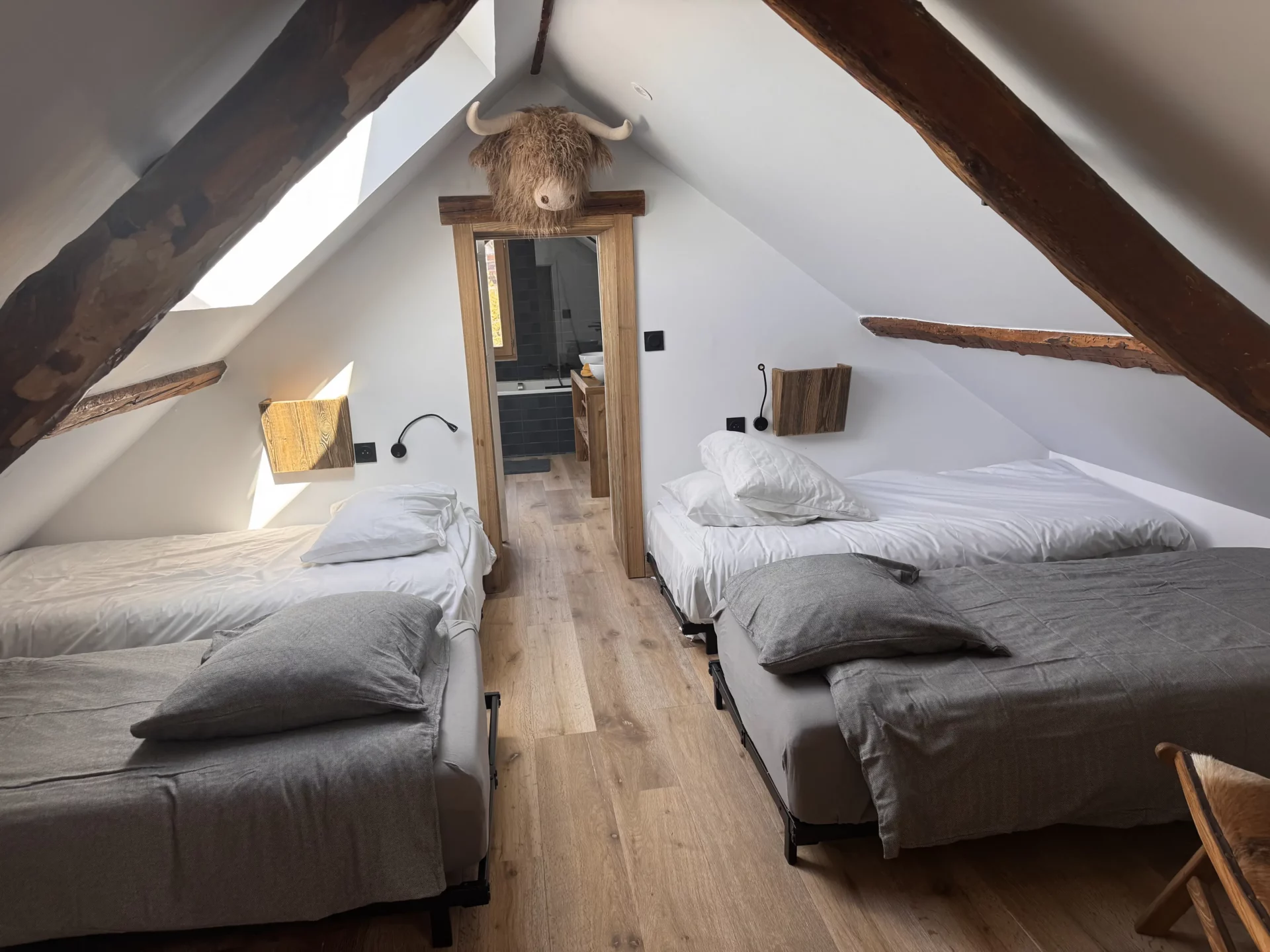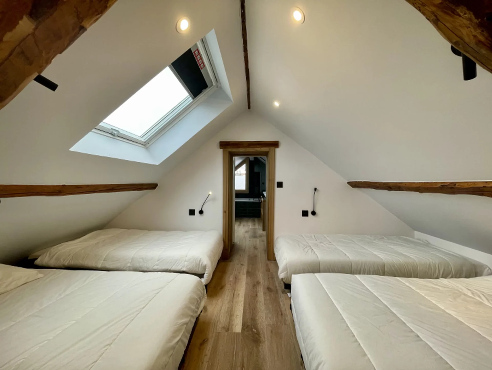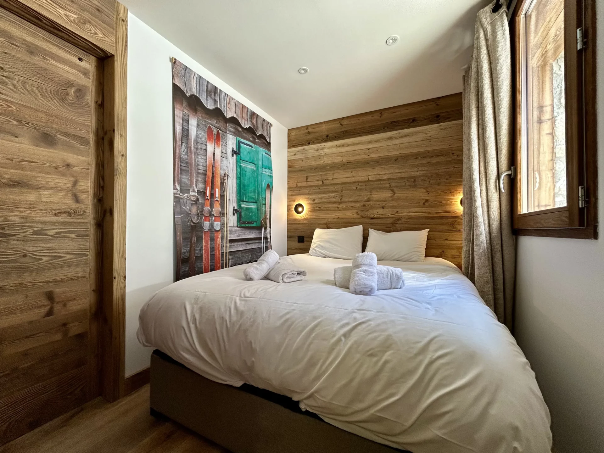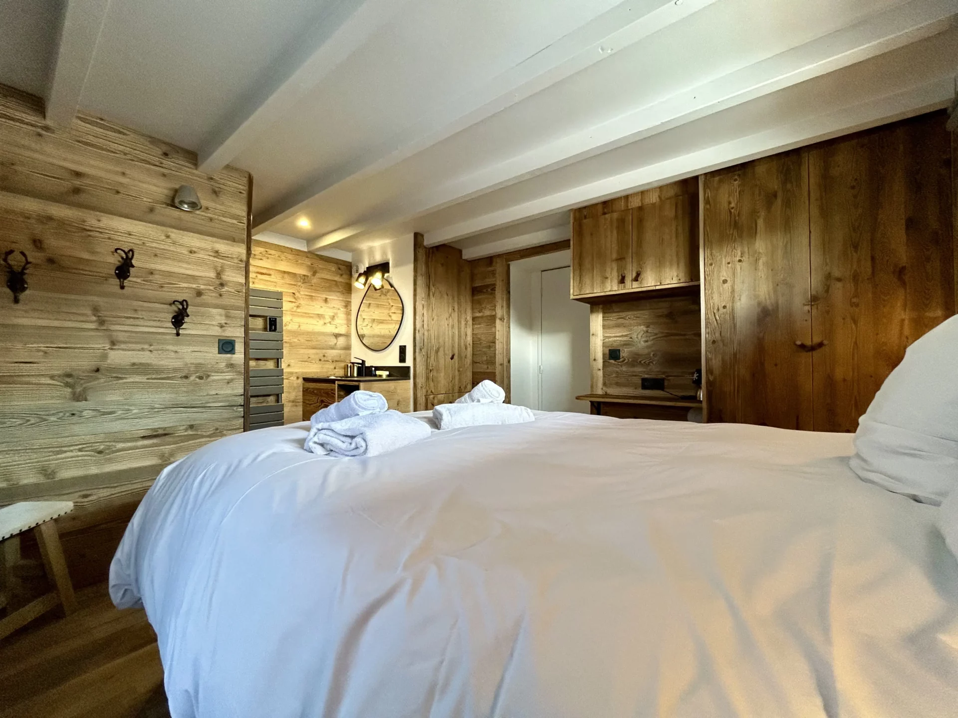 Du côté des couchages, le Chalet Eternel offre 4 chambres avec lit double (dont 2 en-suite), 1 dortoir chaleureux de 5 lits simples et 1 coin montagne de 2 lits superposés (1 lit double et 1 lit simple) pouvant ainsi accueillir jusqu’à 14 personnes (10 adultes maximum).