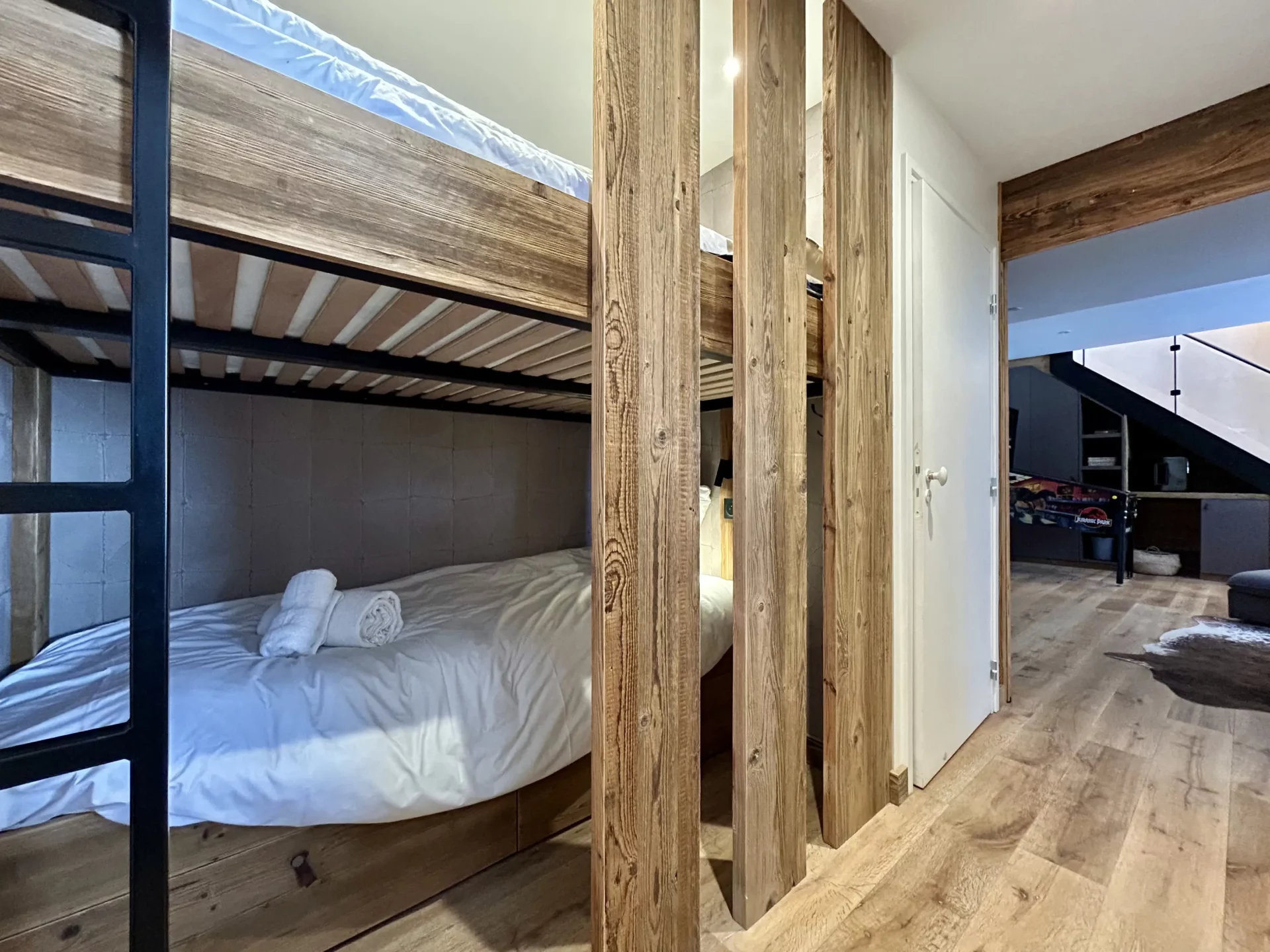 - 1 coin montagne avec 2 lits superposés (1 de 140 + 1 de 90)