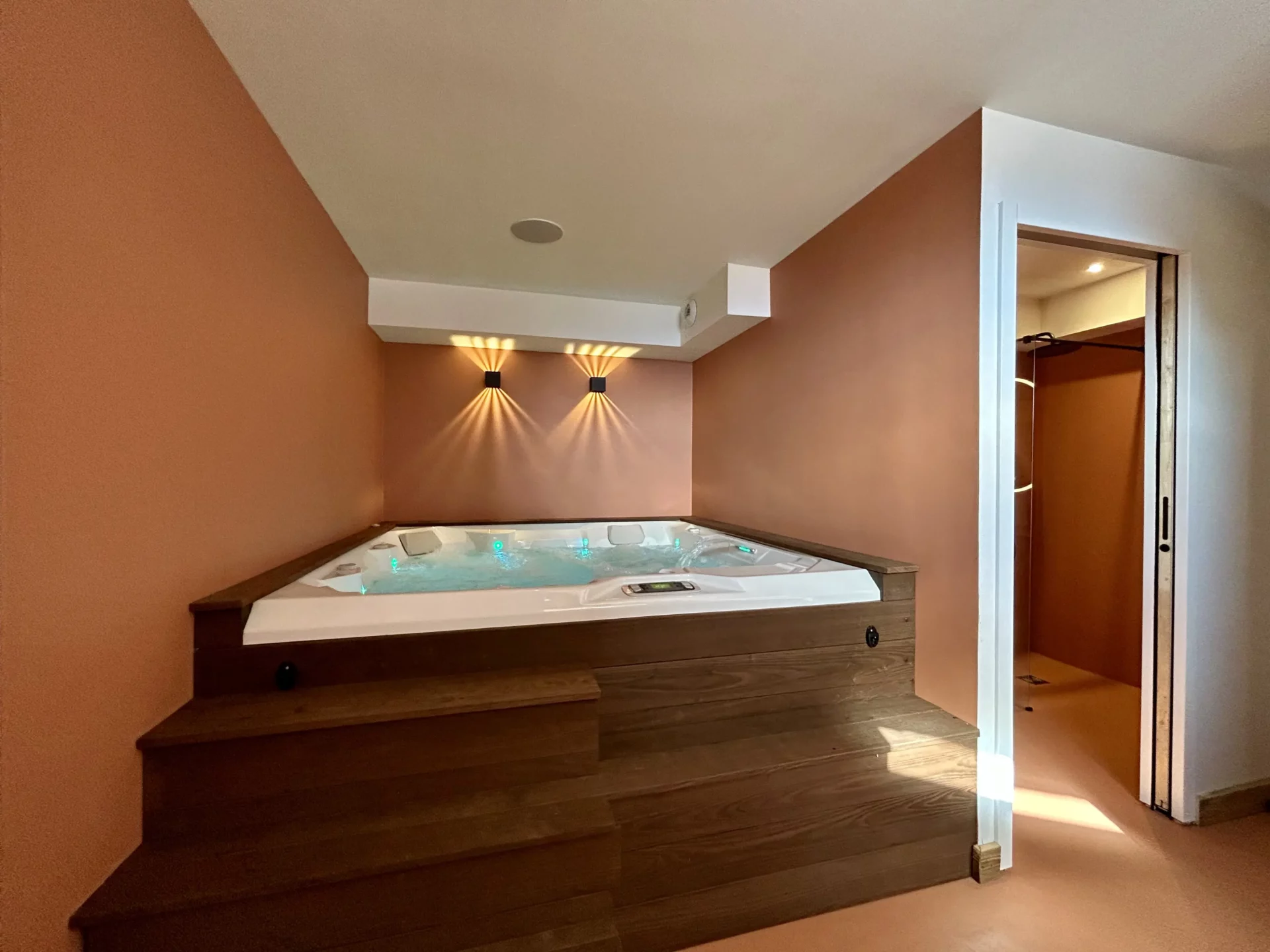 - Espace détente (Jacuzzi) et salle d’eau (douche)