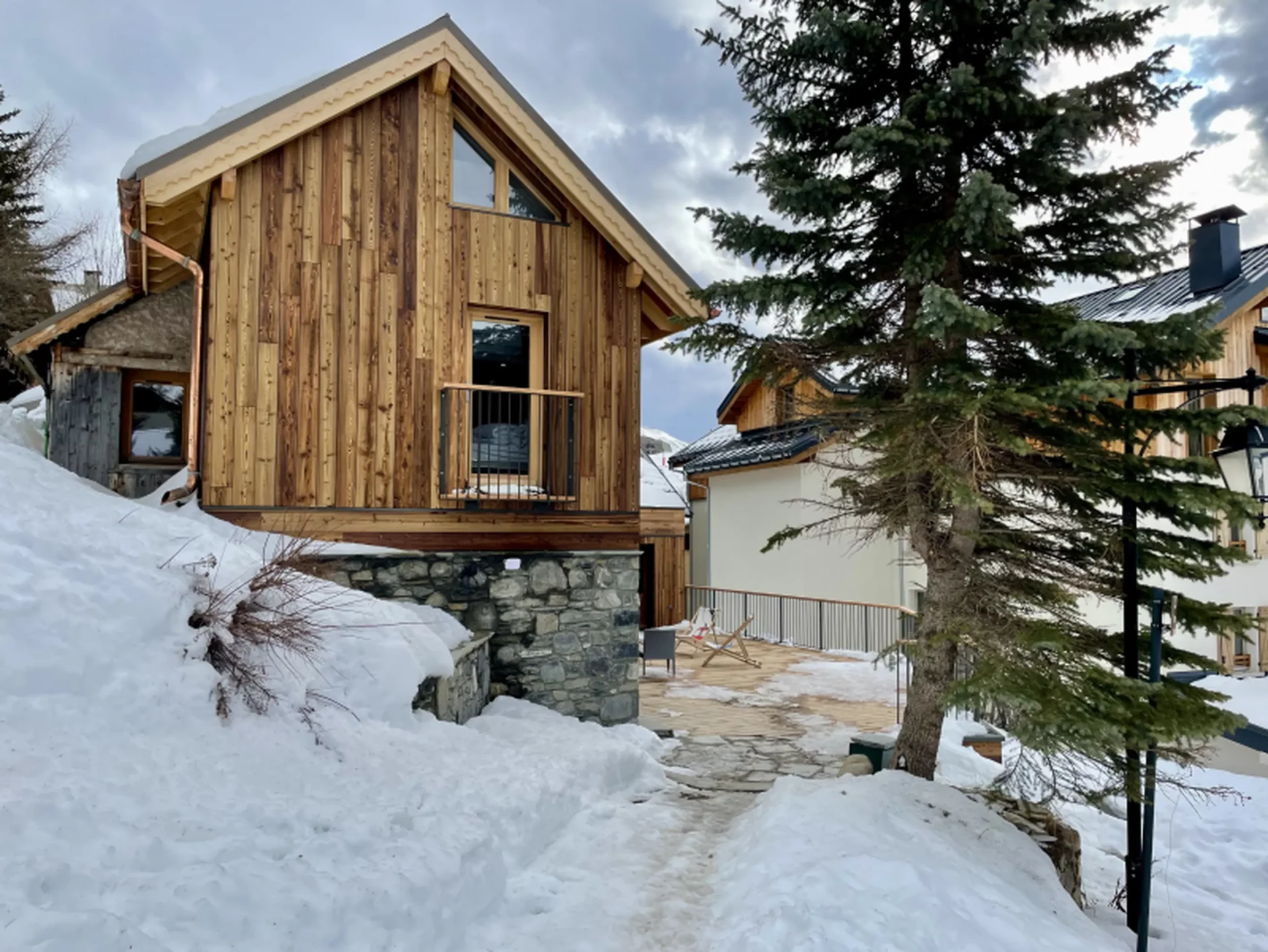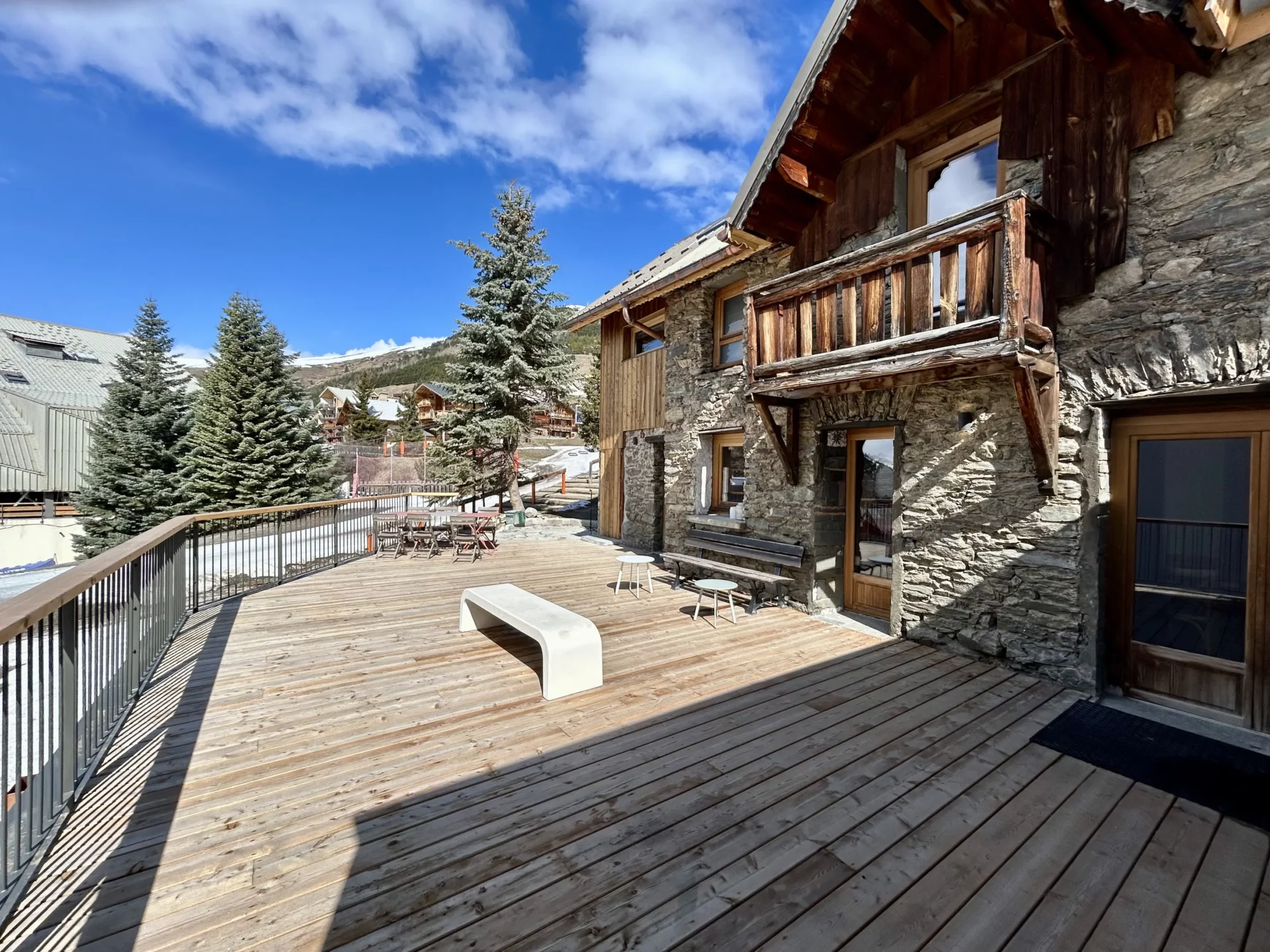 Le point fort de ce chalet réside également dans son époustouflante terrasse de 80m² avec accès direct sur les pistes.