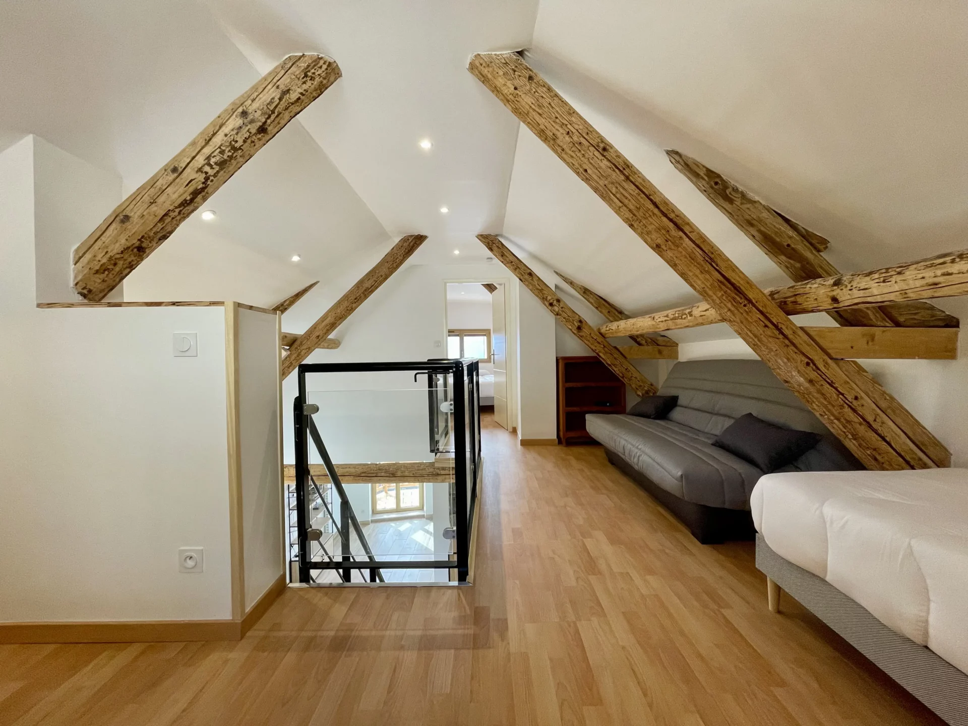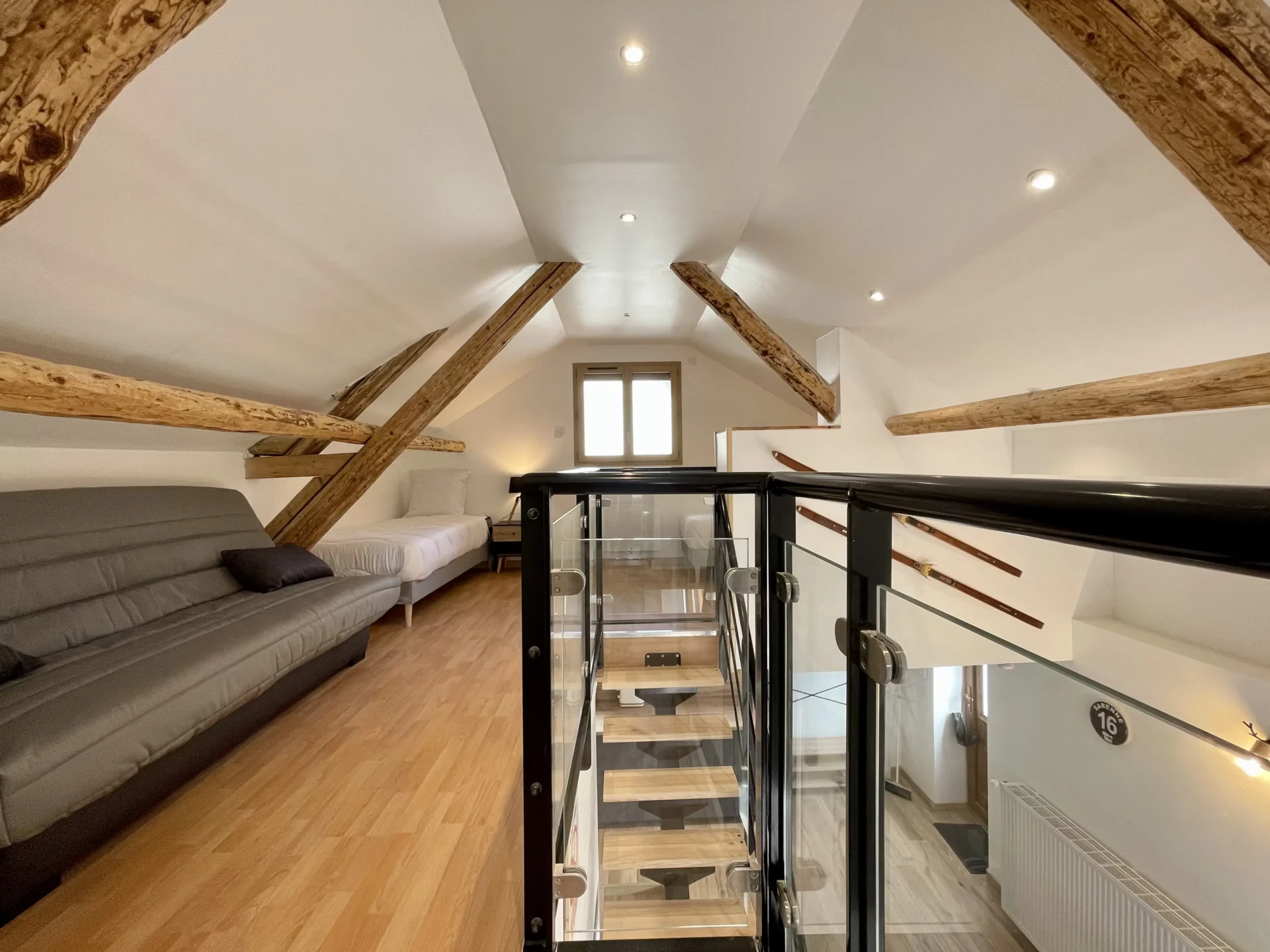 Le chalet La Gaule a été entièrement rénové. Au rez-de-chaussée, il offre une cuisine ouverte sur salle à manger, un salon avec canapé lit et à l’étage, vous trouverez une chambre ainsi qu’une mezzanine ouverte sur le séjour (avec 1 canapé-lit et 2 lits simples). Le chalet peut accueillir jusqu’à 8 personnes mais nous limitons l’occupation à 6 adultes pour vous permettre de profiter pleinement du chalet.