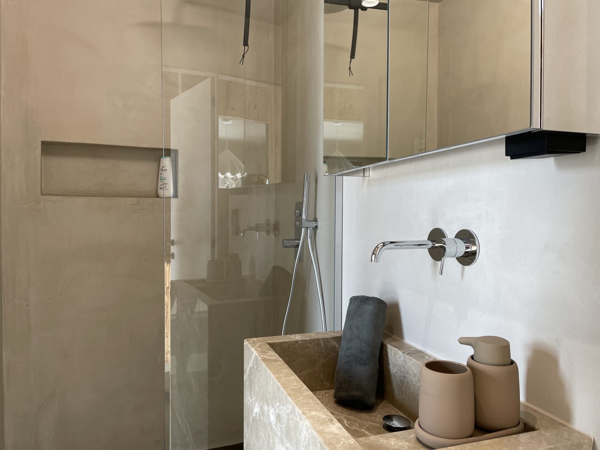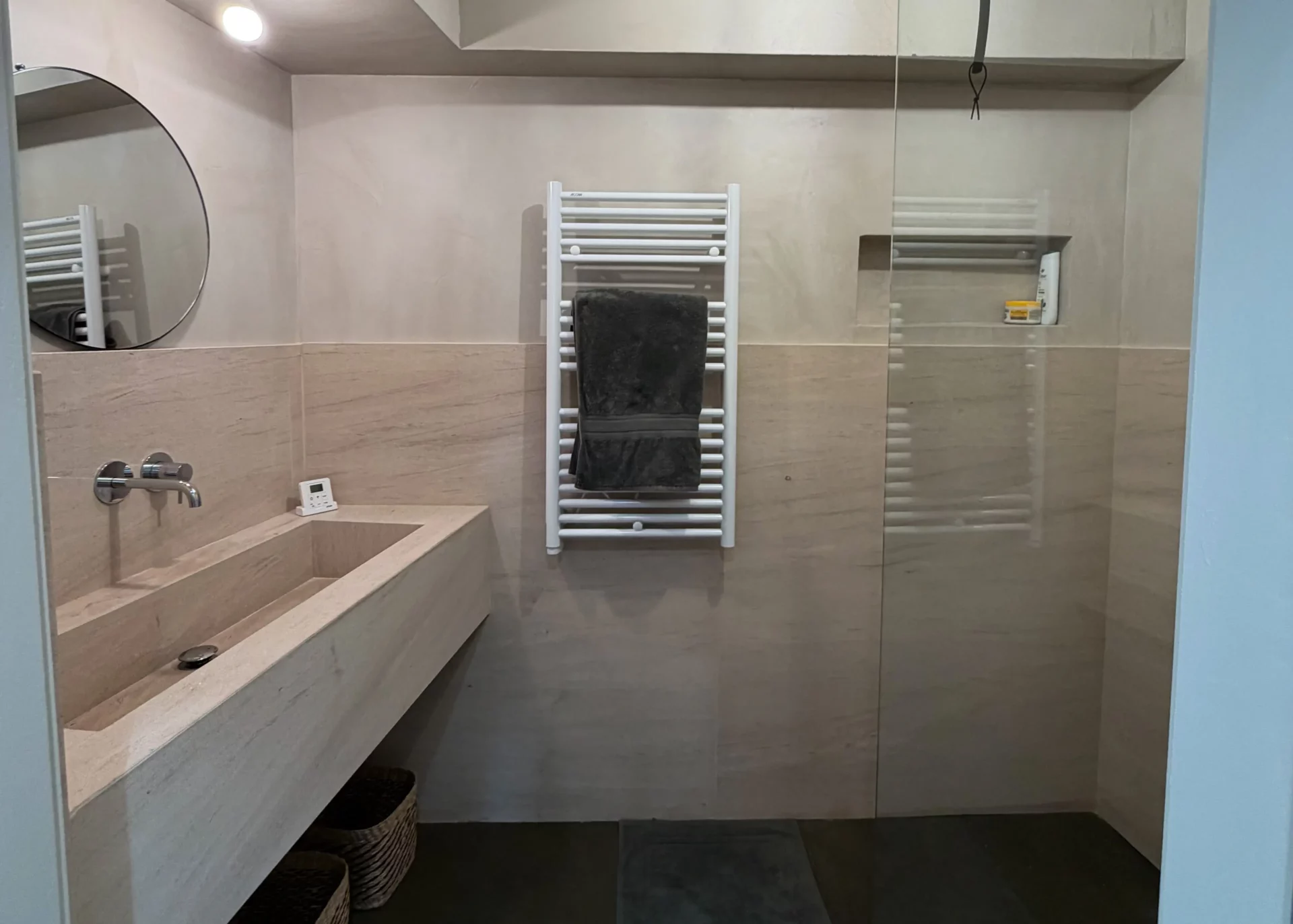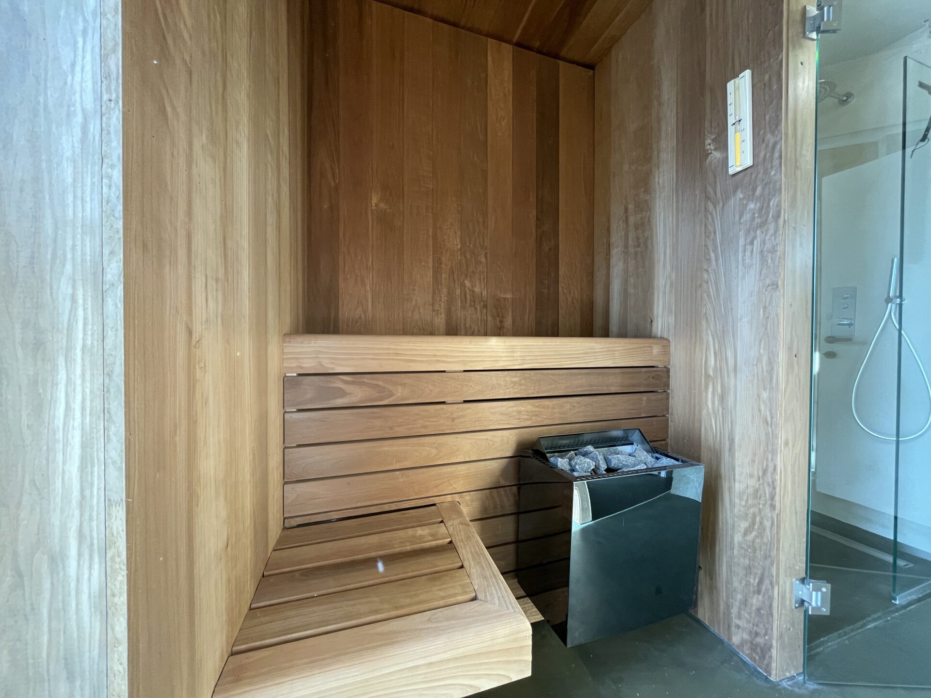 - Salle d’eau attenante douche + simple vasque + Sauna