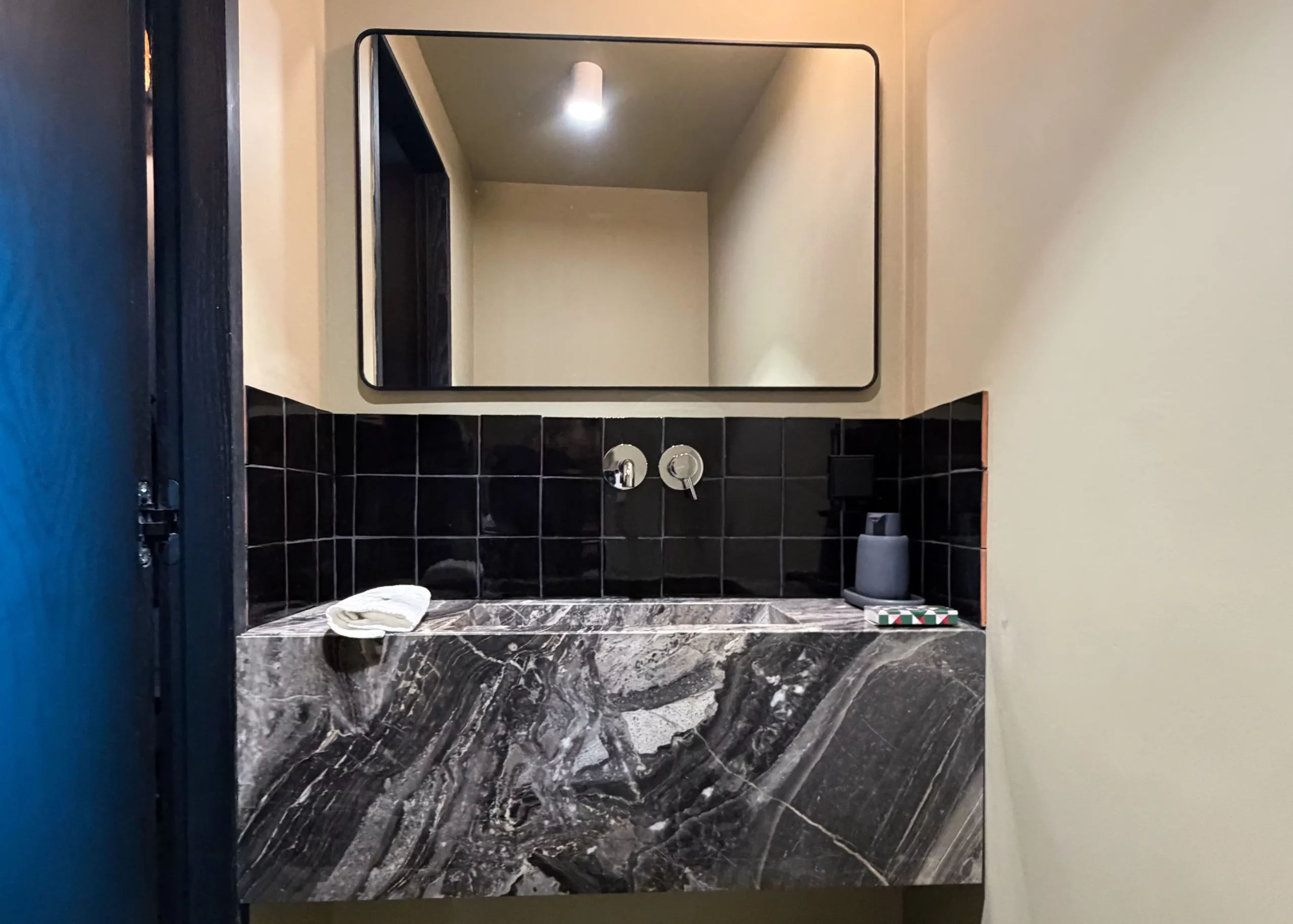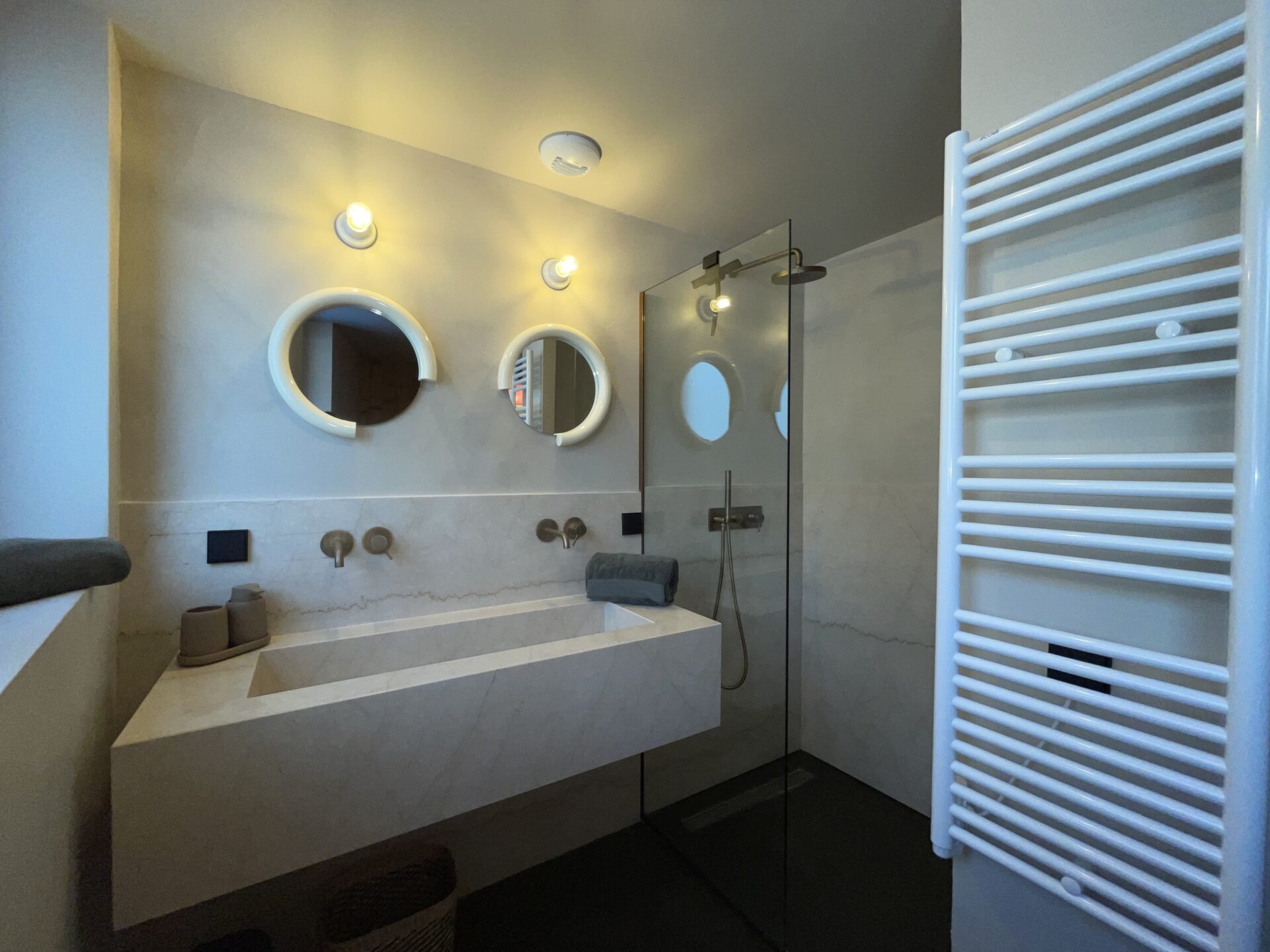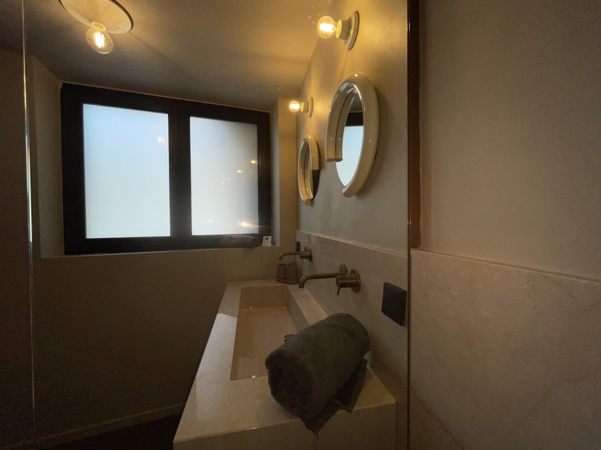 - Salle d’eau attenante douche + simple vasque + Sauna