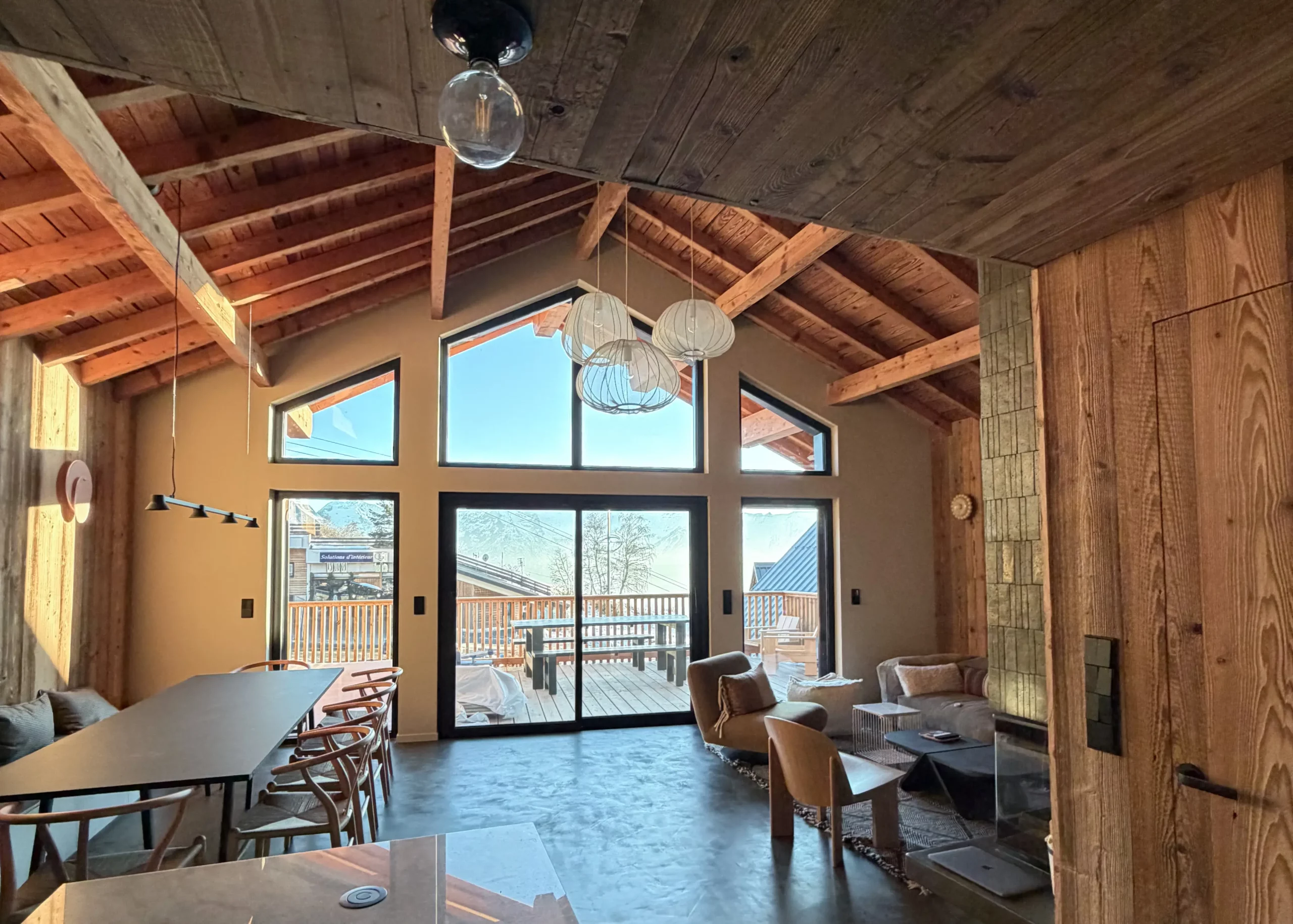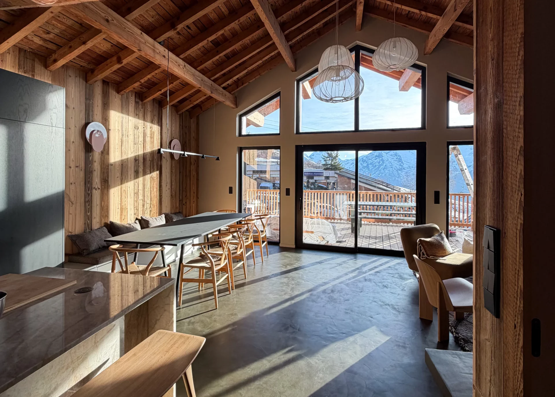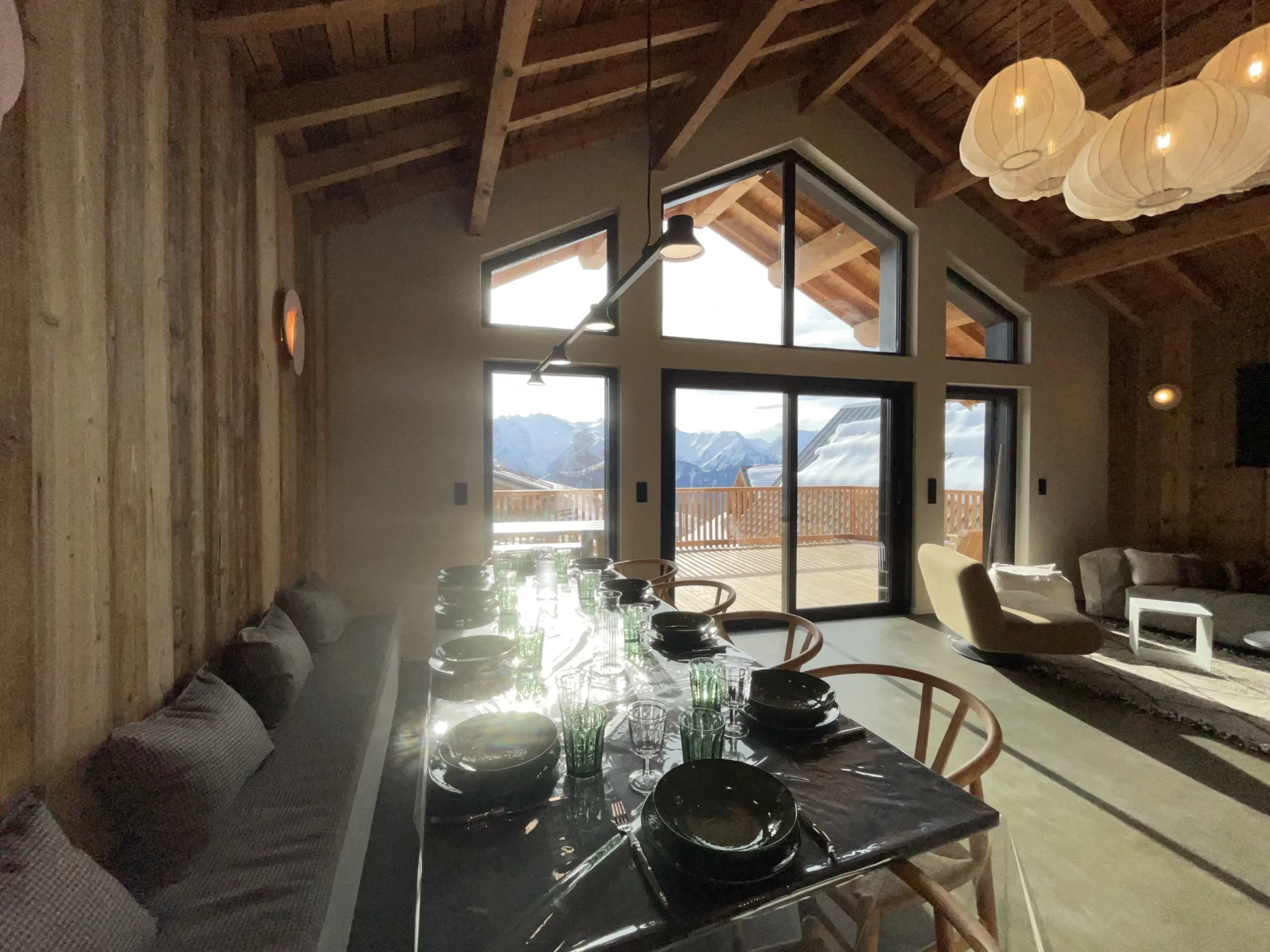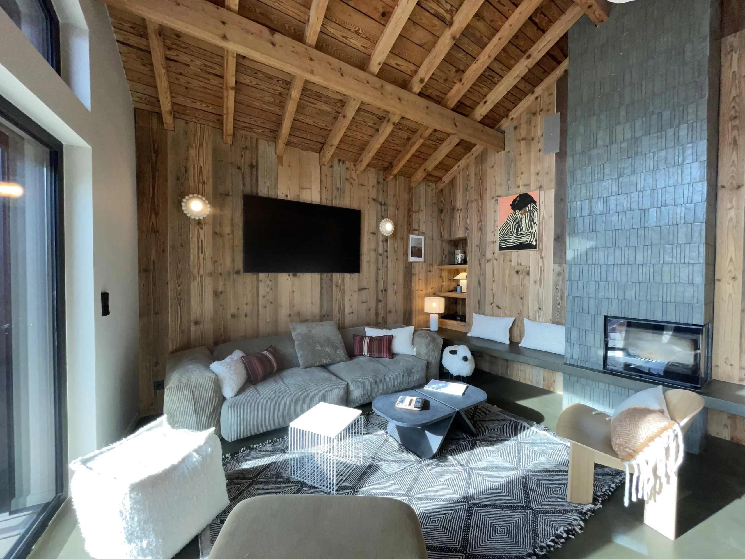 Grâce à son architecture élégante et l’utilisation de matériaux nobles – bois massif, pierre naturelle, béton ciré et finitions contemporaines – le Chalet Neva incarne parfaitement l’équilibre où confort et élégance se rencontrent.