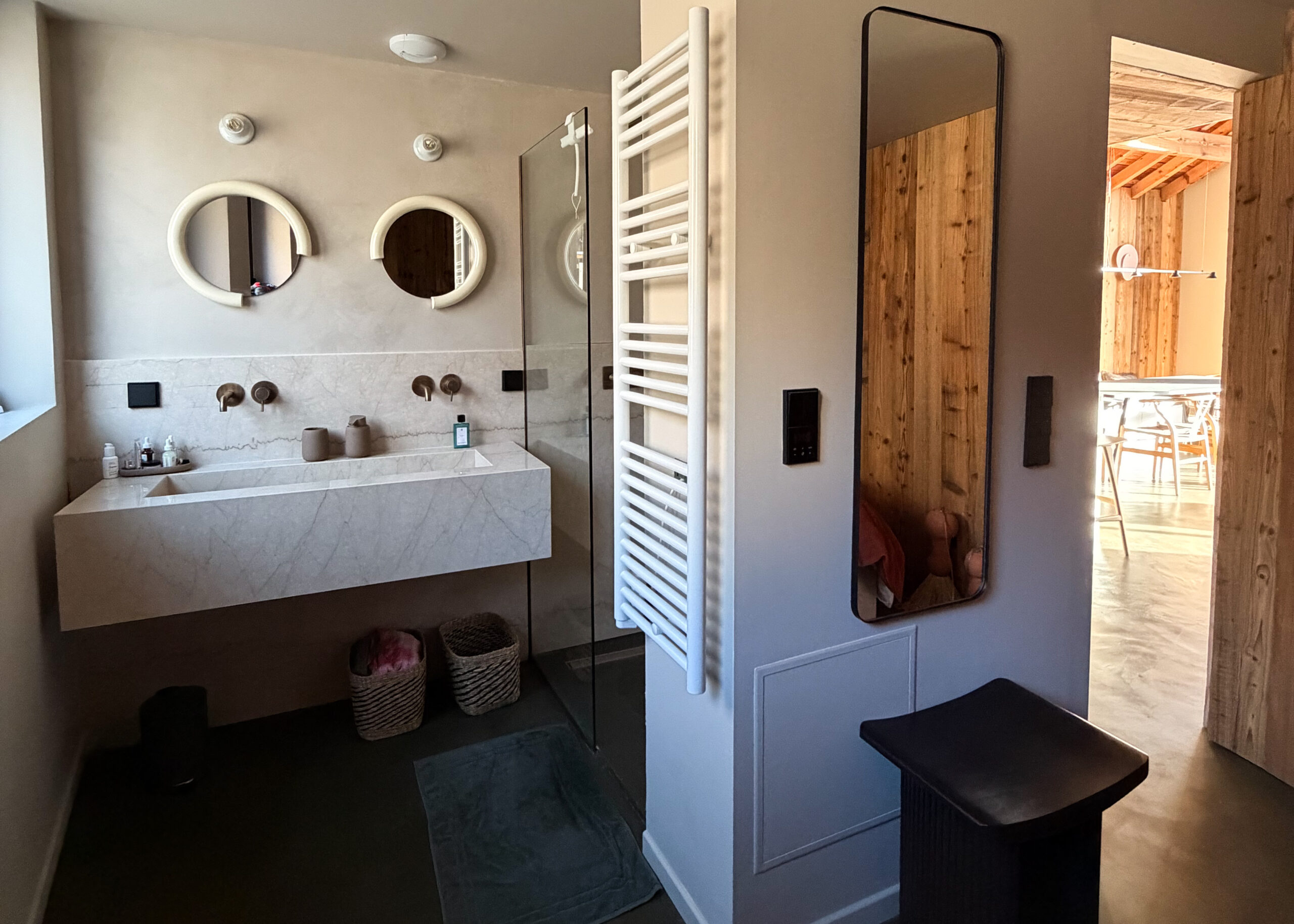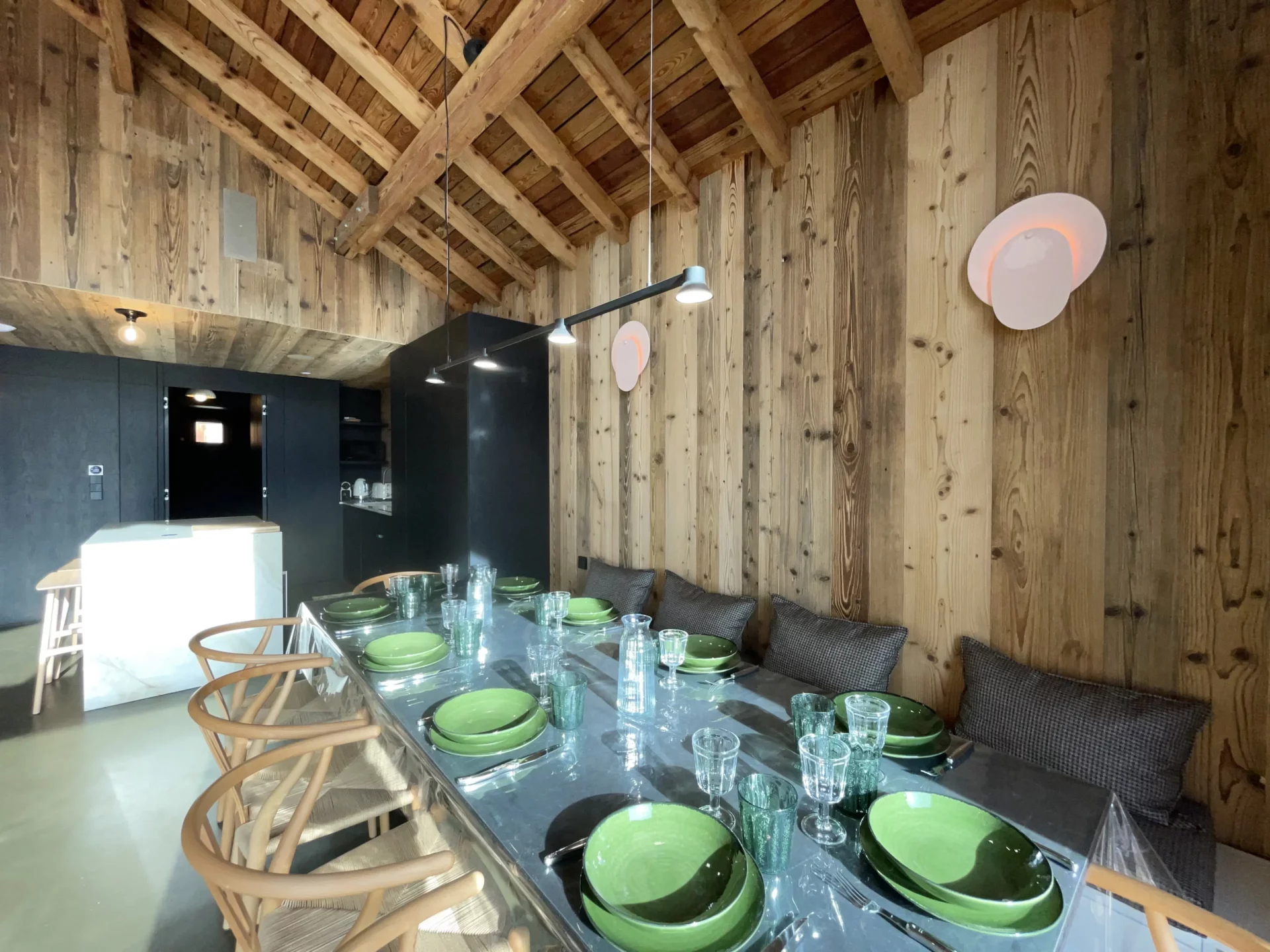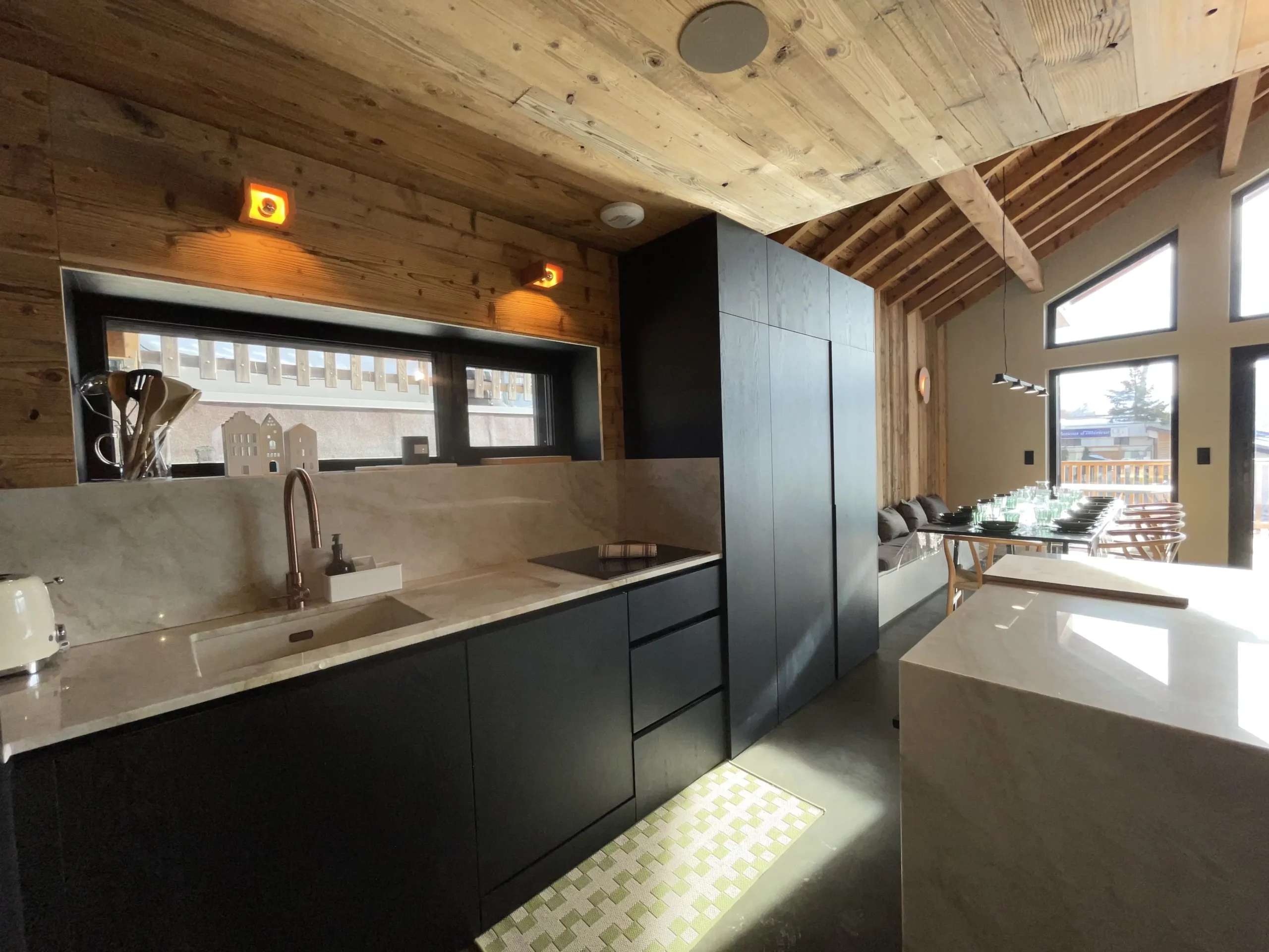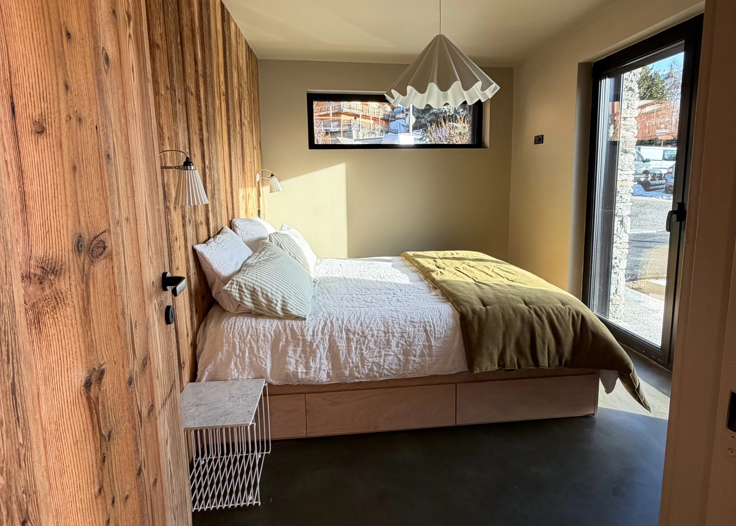 Grâce à son architecture élégante et l’utilisation de matériaux nobles – bois massif, pierre naturelle, béton ciré et finitions contemporaines – le Chalet Neva incarne parfaitement l’équilibre où confort et élégance se rencontrent.
