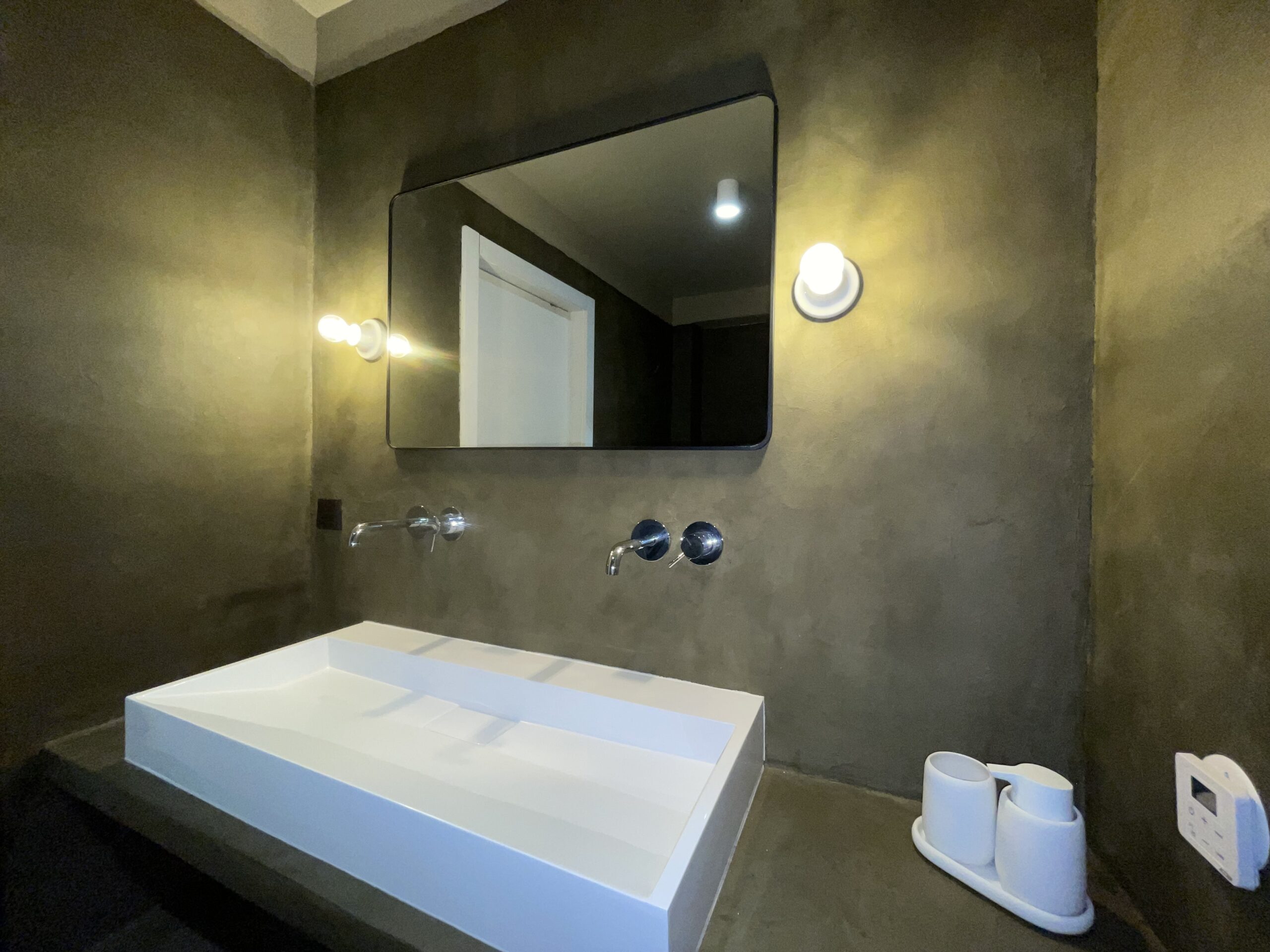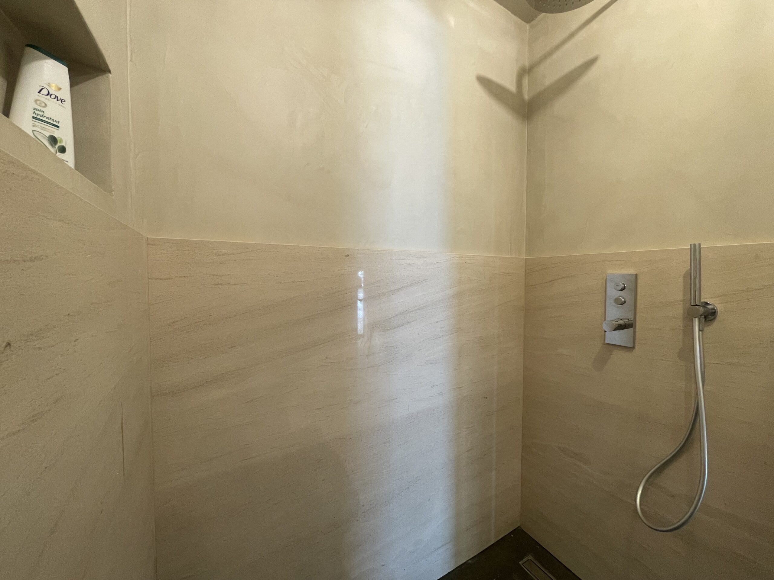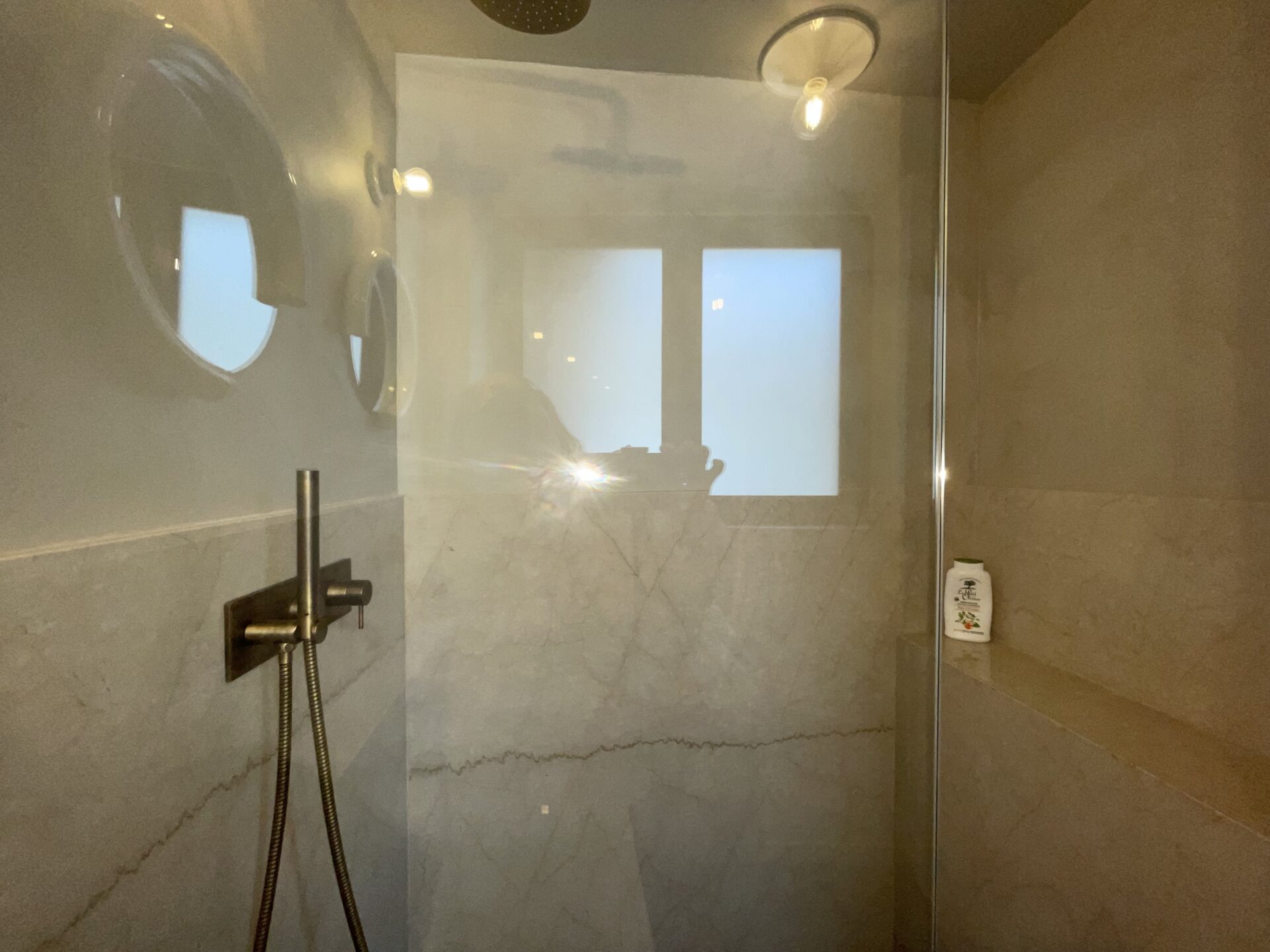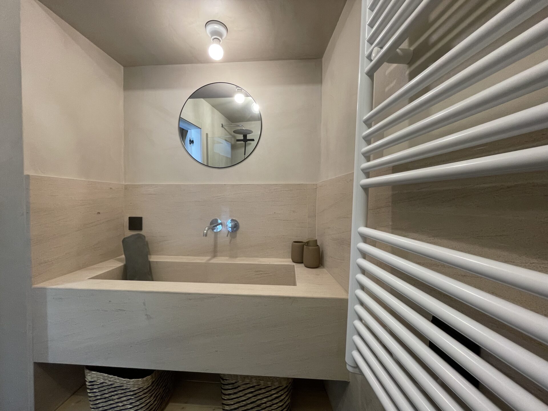 - Salle d’eau (en face de la chambre) : douche + simple vasque
