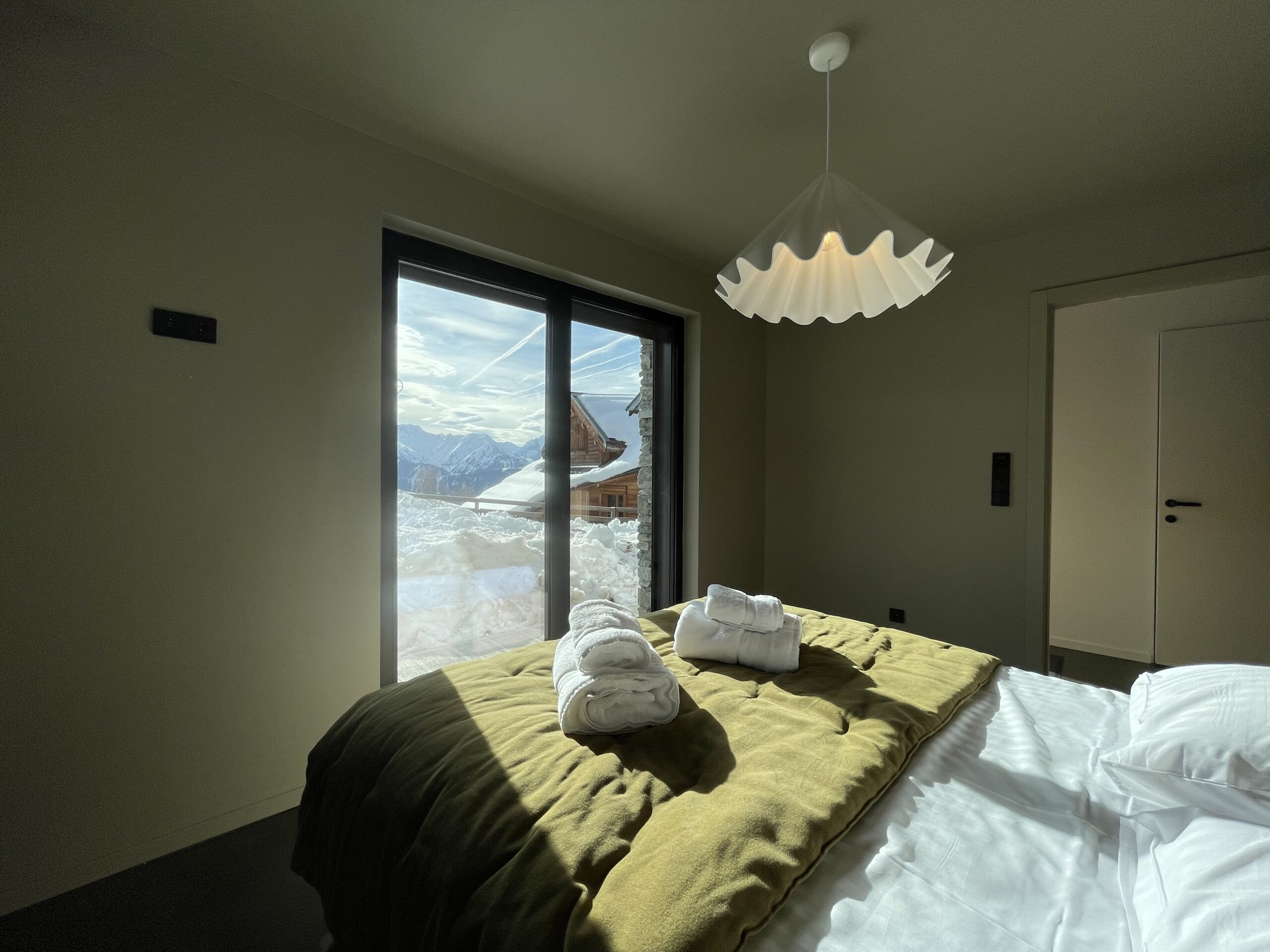 - Lit double (160 cm) avec belle vue sur les montagnes