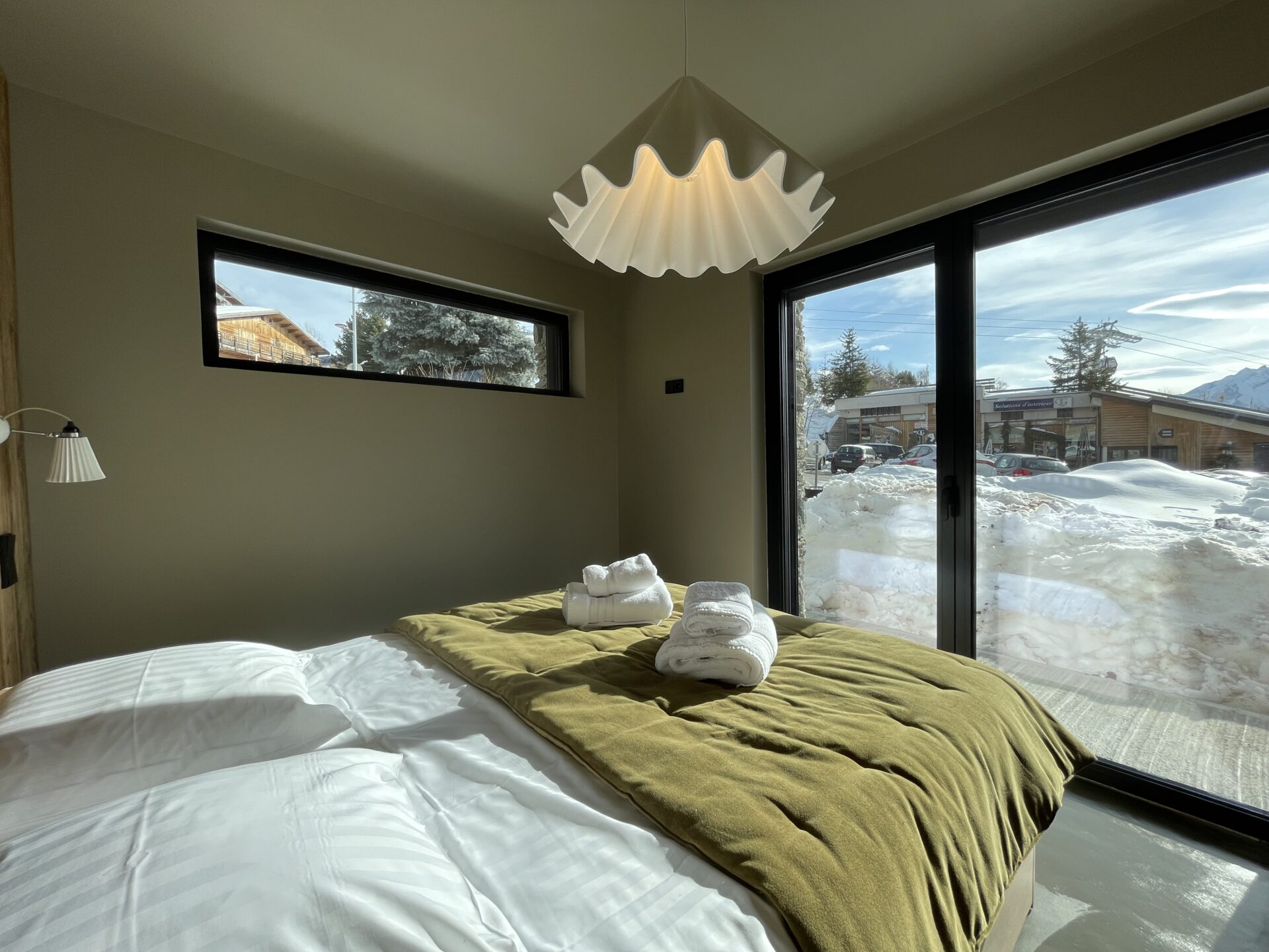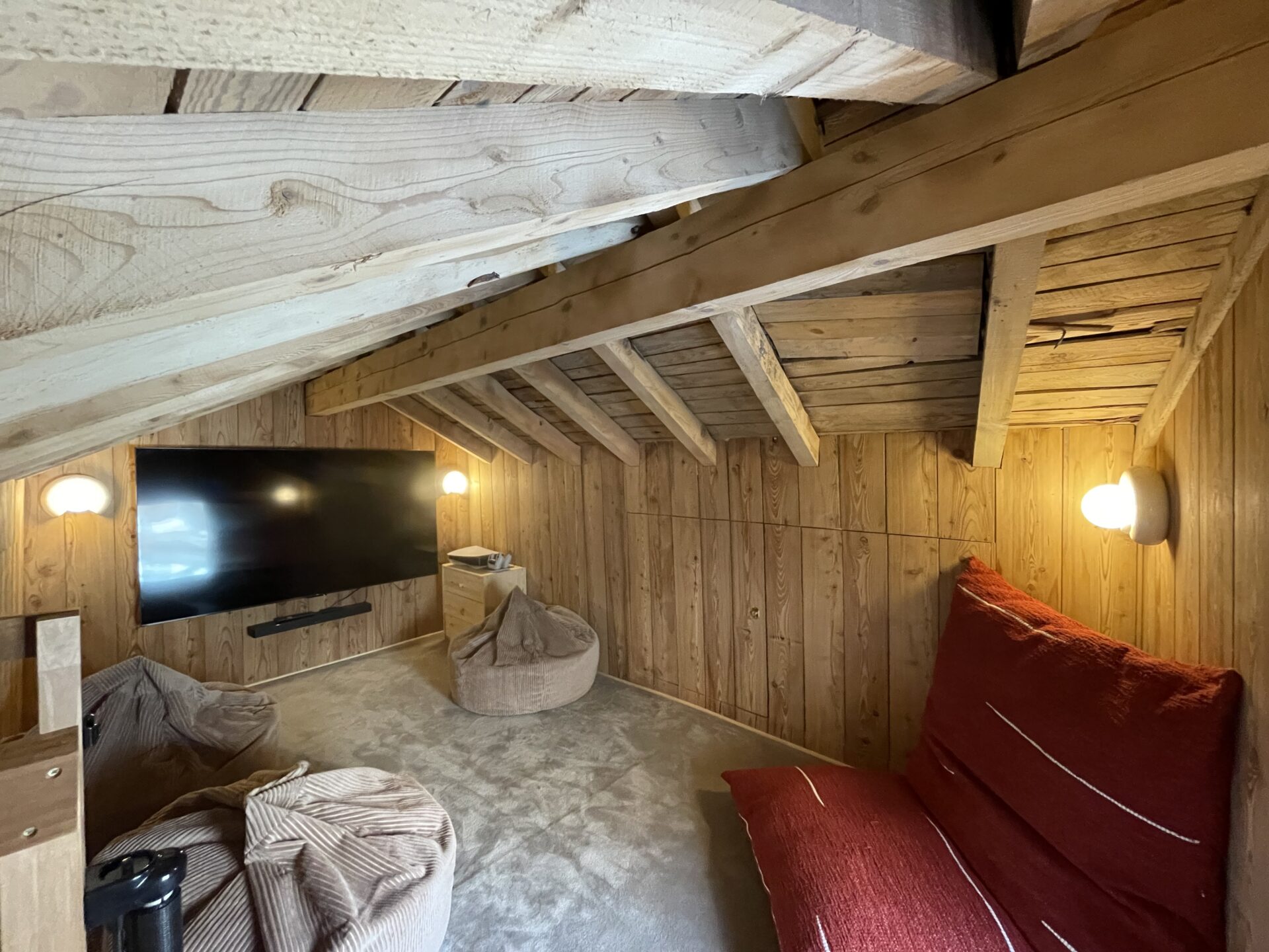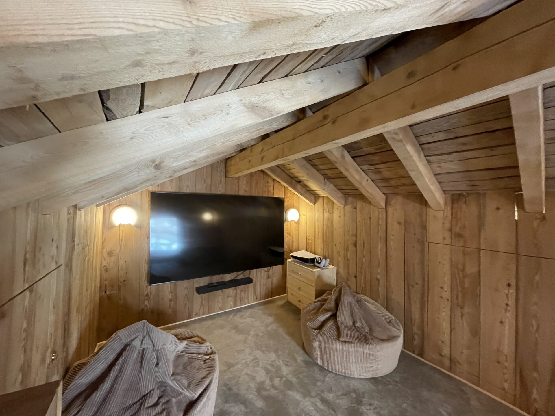 D’une superficie de 135 m², ce chalet peut accueillir jusqu’à 10 personnes. Il se compose d’un vaste séjour cathédrale avec cheminée (décorative), d’une salle à manger conviviale et d’une cuisine ouverte de belle facture. Les 4 chambres confortables disposent chacune de leur salle de bain, dont une suite avec sauna privatif, et un dortoir chaleureux pensé pour les enfants. Les espaces dédiés au confort et au bien-être en font un lieu rare : skiroom équipé de sèche-chaussures, salle télévision intimiste, buanderie, local technique avec rangement pour vélos et 3 places de stationnement privées (extérieures). Une terrasse aménagée de 25m² et un jardin privatif complètent le cadre, offrant une atmosphère à la fois chaleureuse et raffinée.