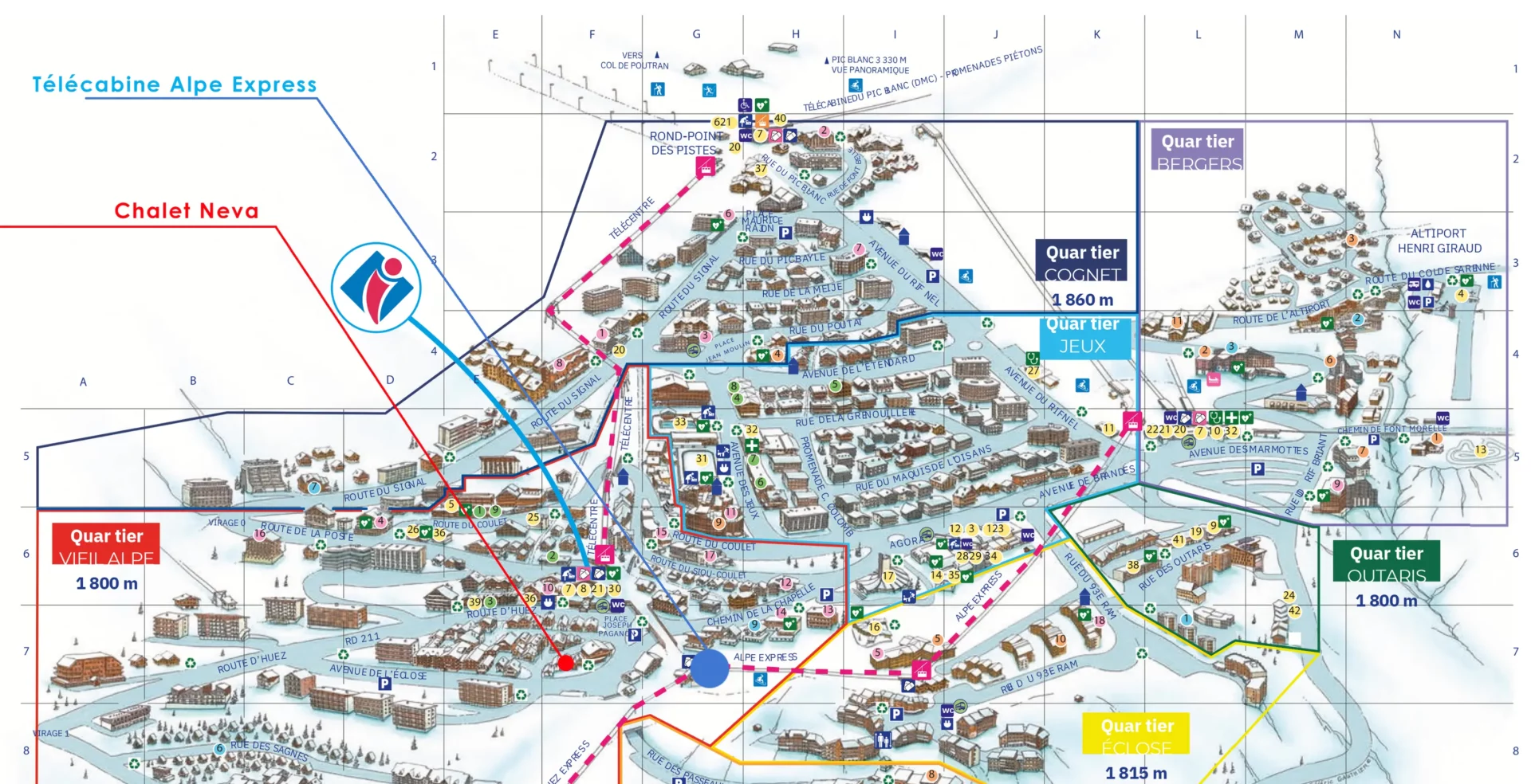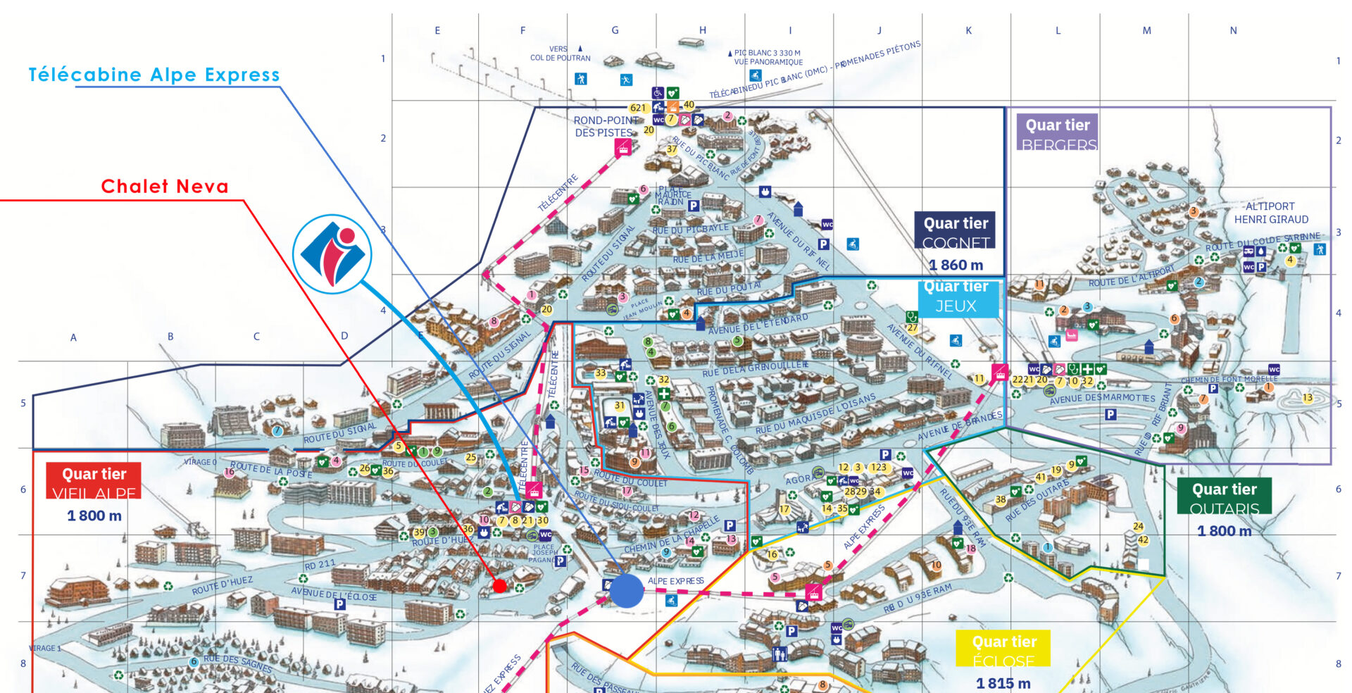 Accès rapide aux pistes à 100m, vous pourrez relier facilement le départ des cours ESF avec l'Alpe Express pour rejoindre les Bergers et le chalet des enfants (Point de rendez-vous ESF pour enfants dès 2 ans 1/2) ou grâce au Télécentre pour rejoindre le Rond-Point des pistes (Télécabine des Grandes Rousses - Point de rendez-vous ESF). Navettes gratuites depuis la Place Paganon (50m) pour rejoindre le Rond-Point des Pistes ou les Bergers.