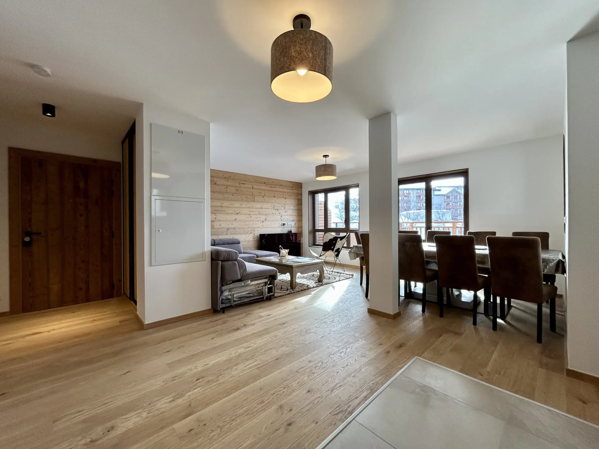 Très bien située, la résidence est située à 50 m de la Télécabine l’Alpe Express et vous pourrez ainsi facilement rejoindre les pistes et le Chalet des Enfants (point de départ des cours de ski). Cet appartement dispose également de 2 garages fermés et d’une place de parking.