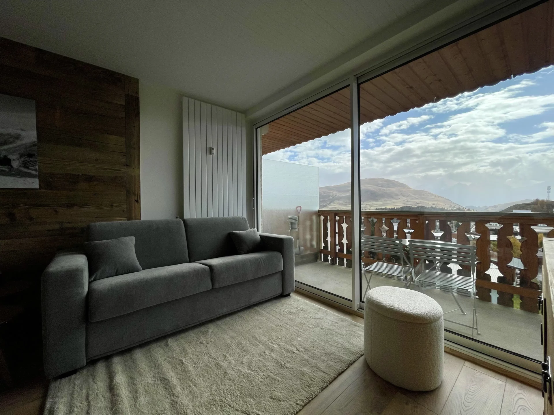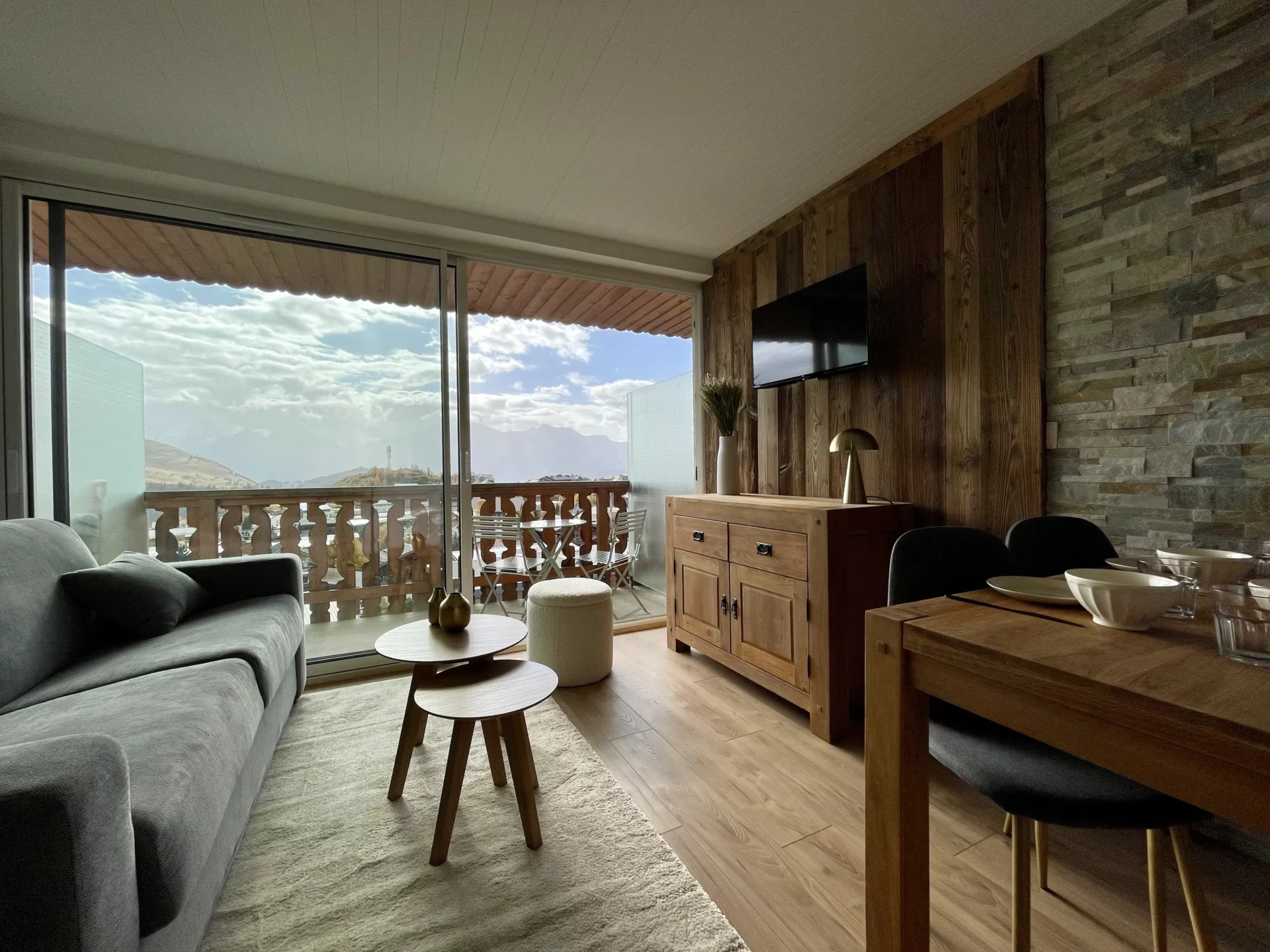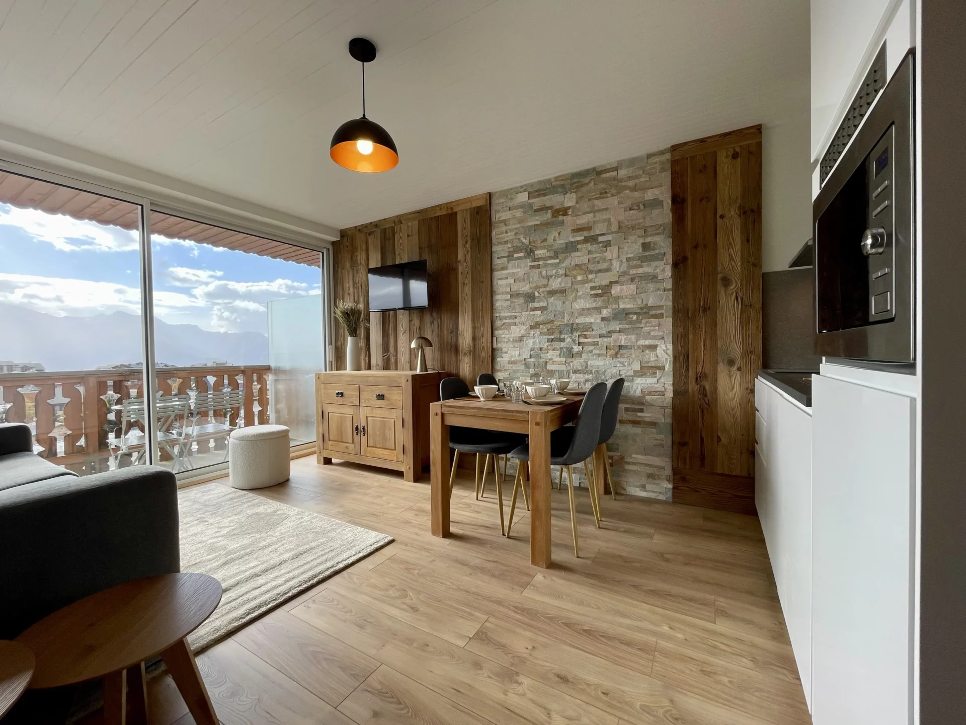 Au pied des pistes dans le quartier des Jeux, le Concorde C5 est un très bel appartement, de standing, entièrement refait à neuf avec des matériaux de qualité. Vous pourrez profiter d’une belle pièce de vie donnant sur un balcon avec une vue magnifique.
