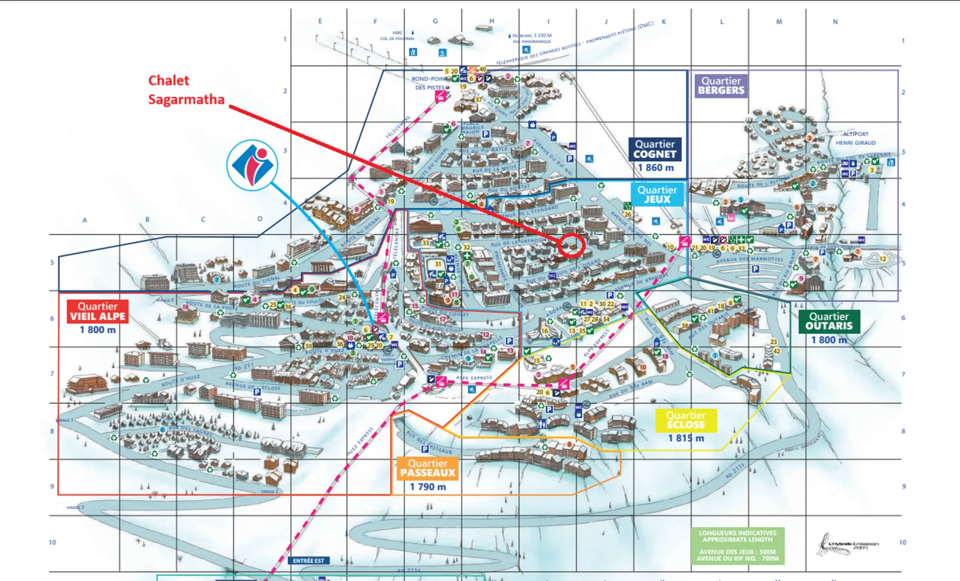 Accès des pistes des Bergers à 250 m et le chalet des enfants (Point de rendez-vous ESF pour enfants dès 2 ans 1/2).