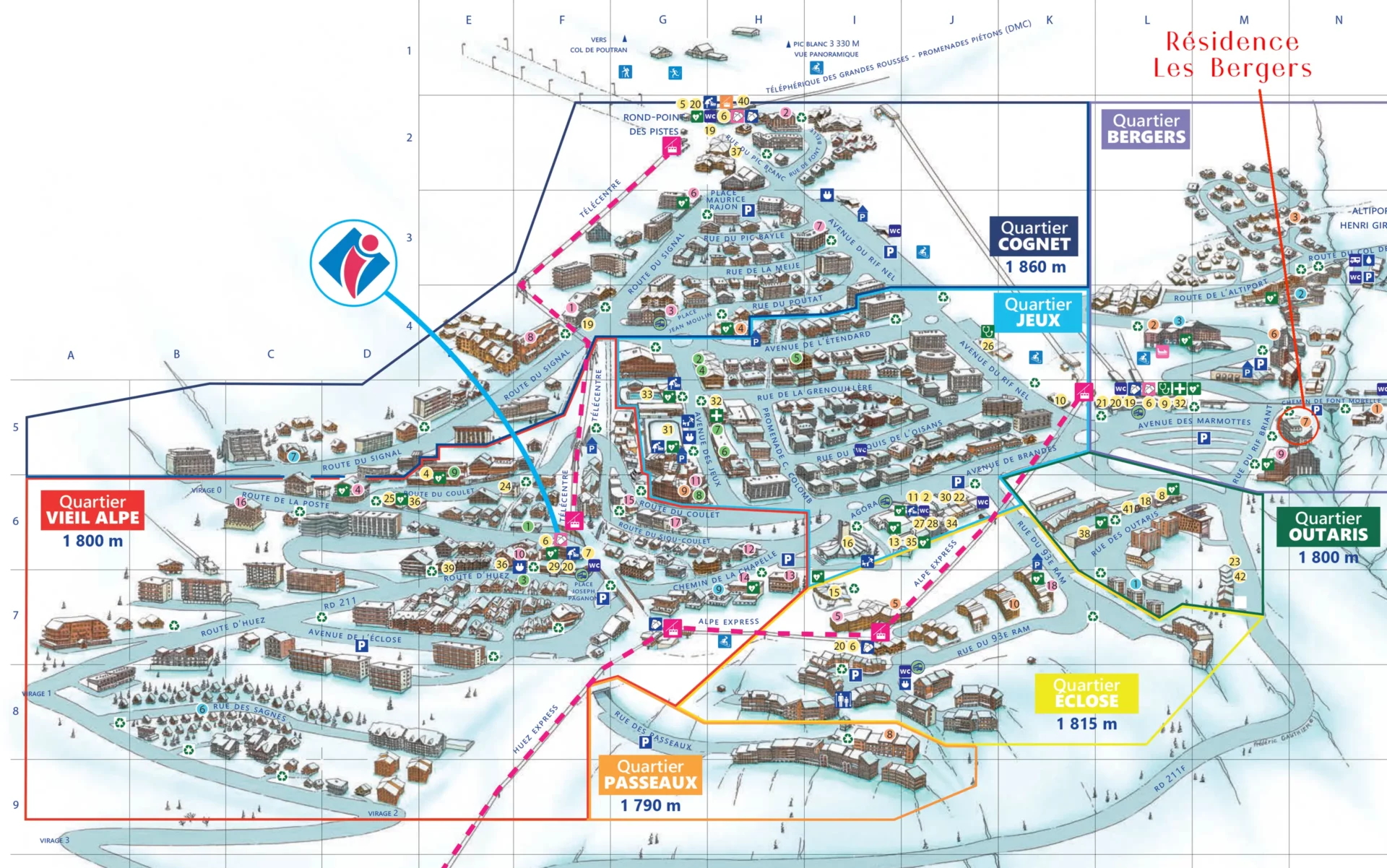 Situé dans le quartier des Bergers, la résidence Les Bergers vous propose un retour skis aux pieds (résidence à 100 m du départ des pistes).