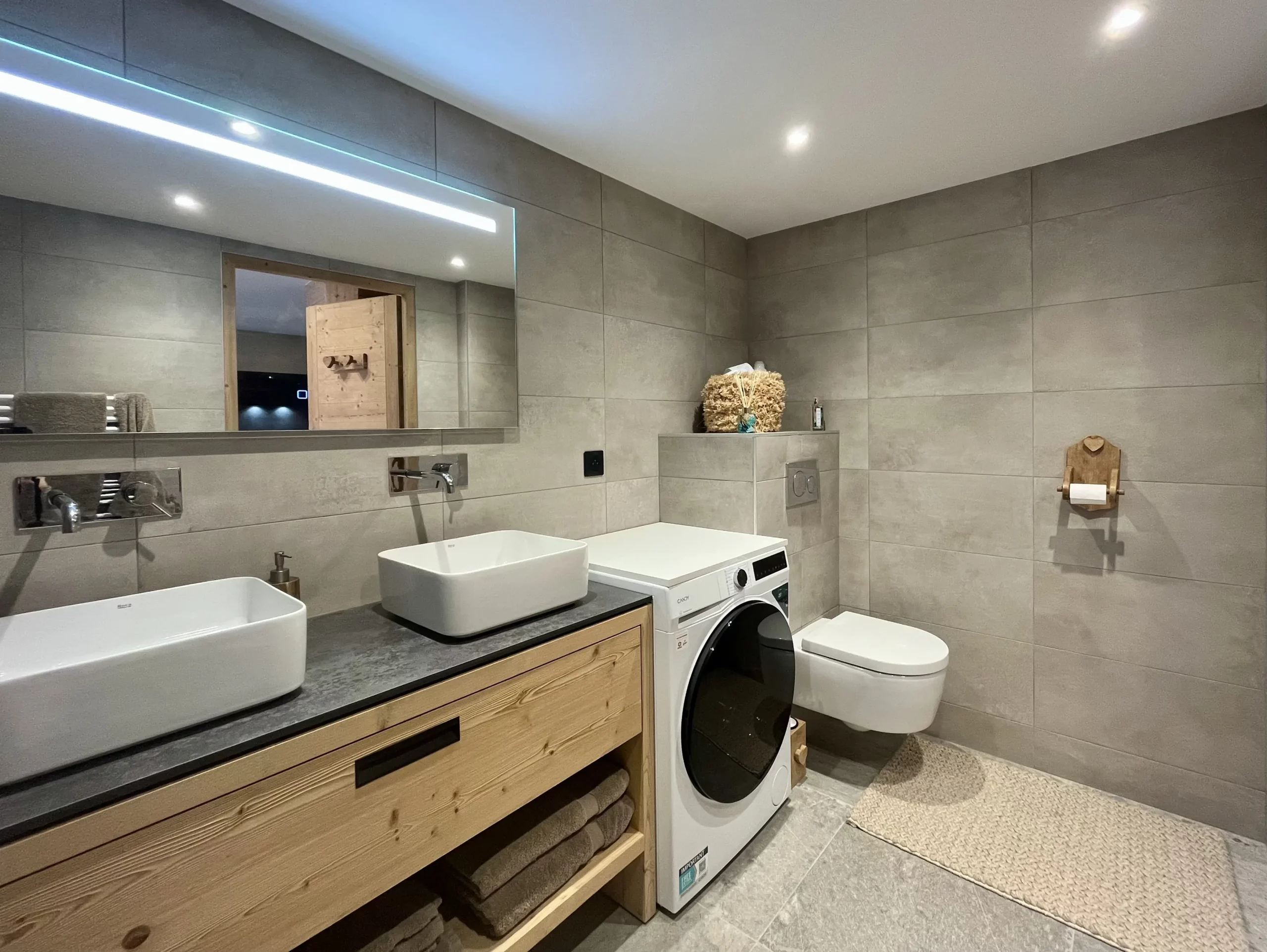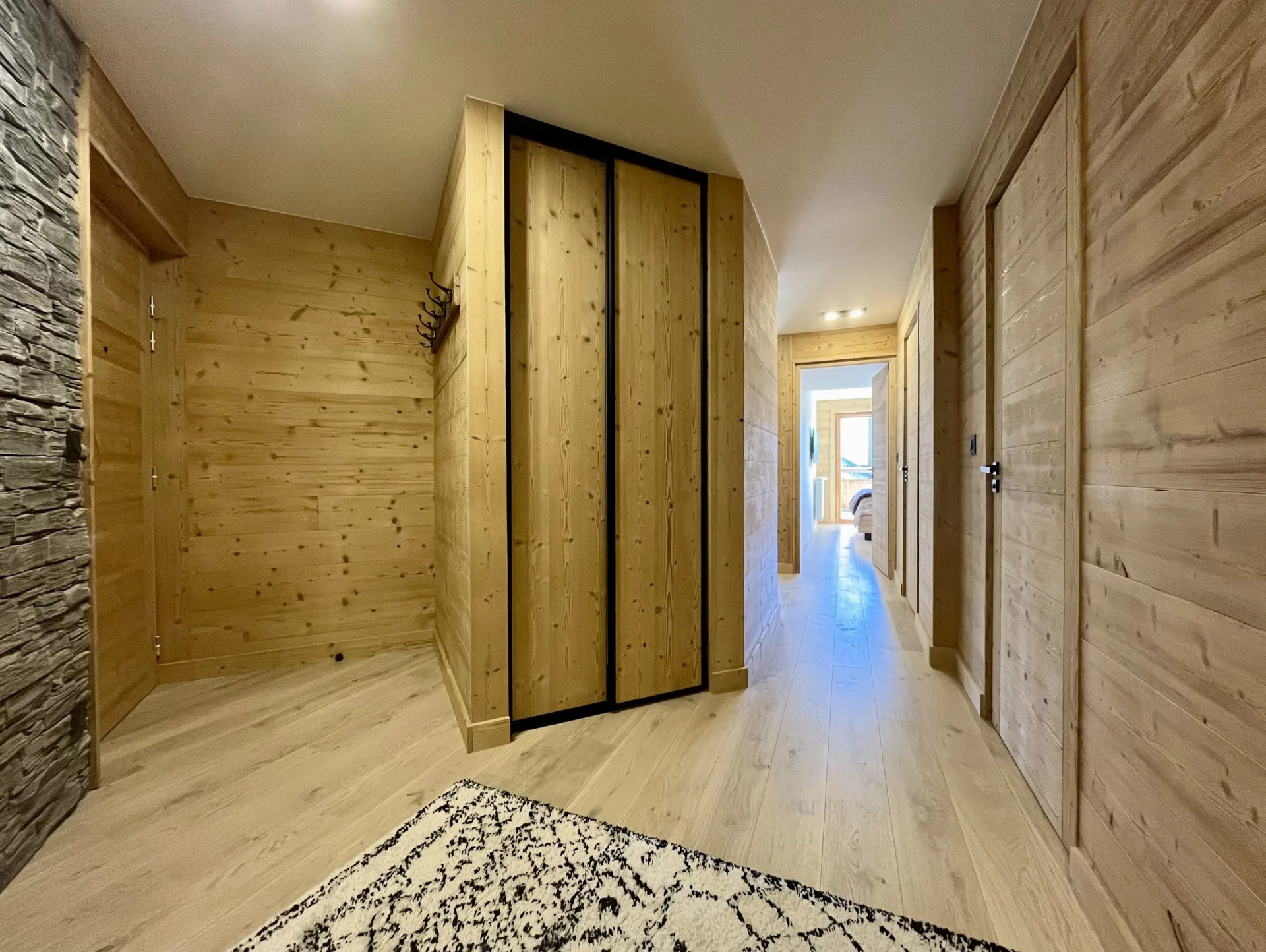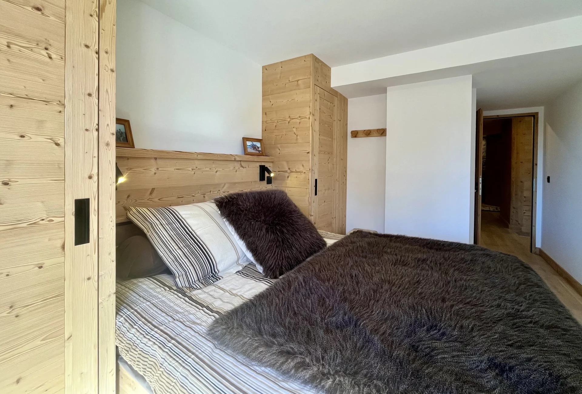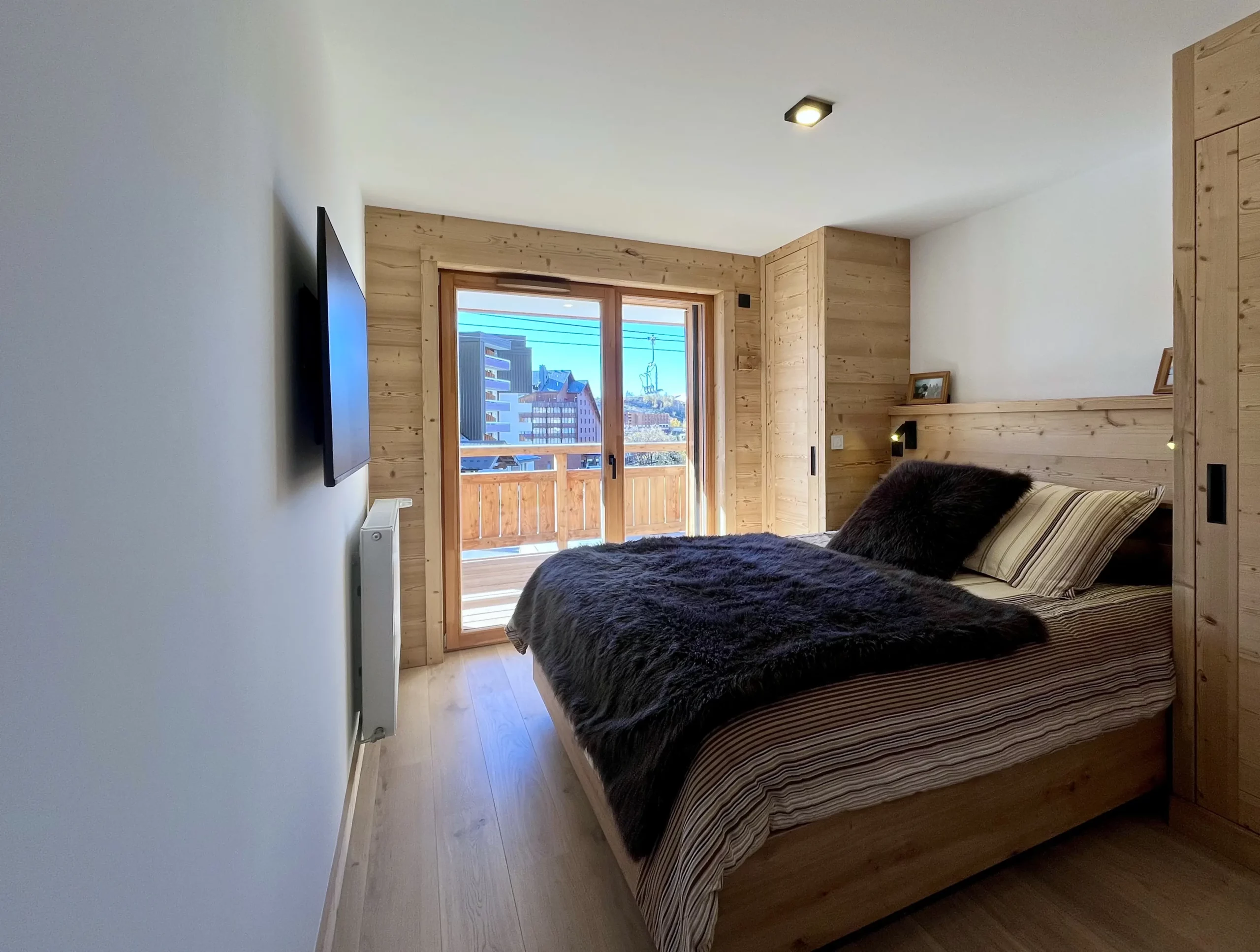 Dès votre arrivée, vous serez séduits par la lumière naturelle et la douceur des matériaux qui habillent les espaces de vie. La pièce principale s’articule autour d’un salon confortable, décoré de bois clair et de teintes apaisantes, offrant un accès direct au balcon. Ce dernier vous invite à profiter pleinement de l’air pur et des paysages alpins tout au long de la journée. La cuisine ouverte, moderne et parfaitement équipée, permet de préparer vos repas dans une ambiance conviviale, tandis que la belle table familiale prolonge ces moments de partage.