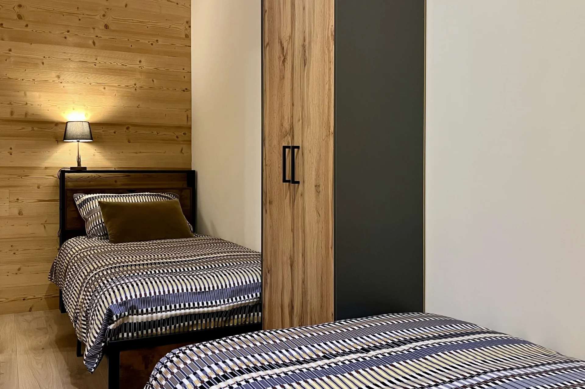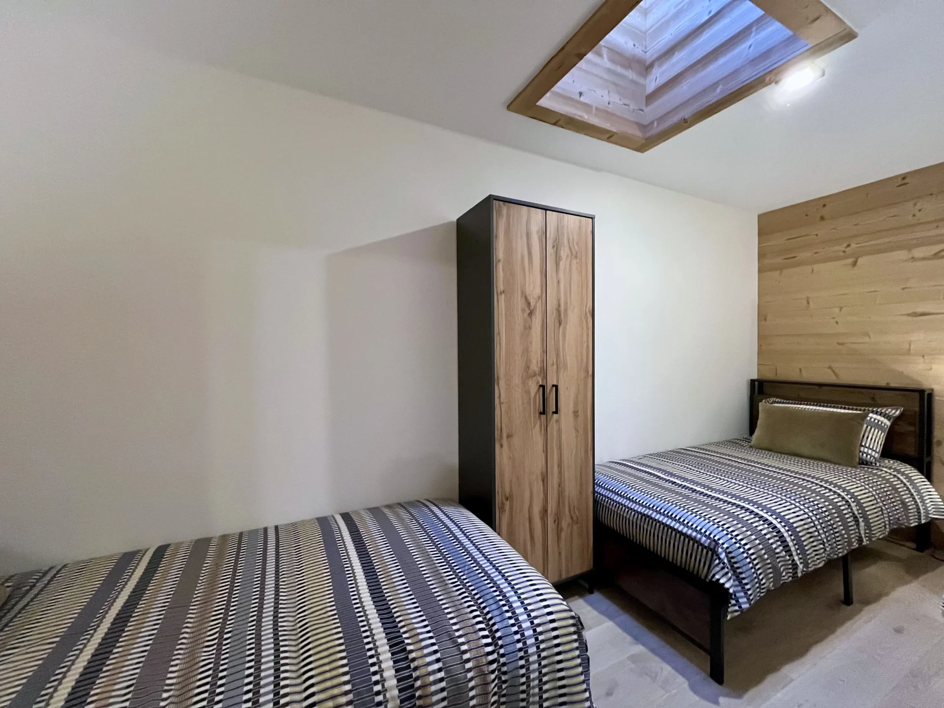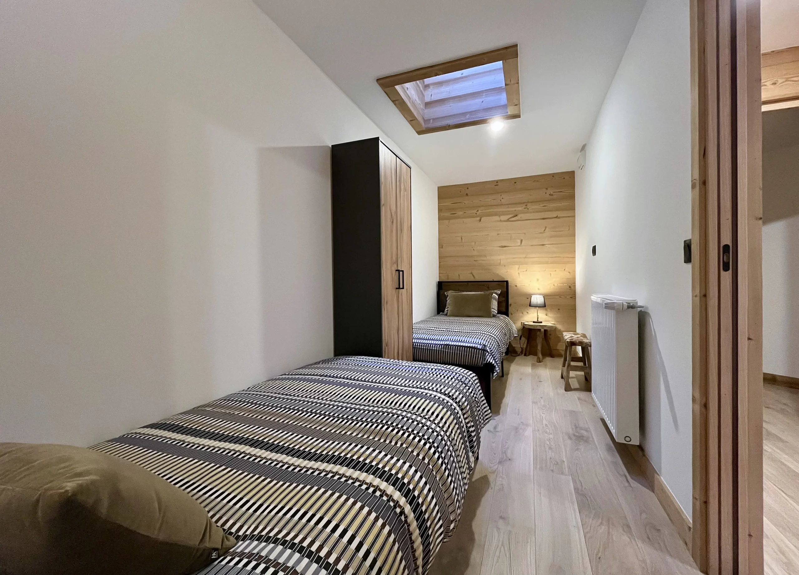 L’appartement propose une configuration idéale pour garantir confort et intimité à chacun. La suite parentale dispose d’un lit double et d’un puits de lumière, ainsi que d’une salle d’eau privative. Une deuxième chambre, chaleureuse et élégante, bénéficie d’un lit double et d’un accès direct au balcon. La troisième chambre, pensée pour les enfants ou amis, offre deux lits simples et un puits de lumière qui illumine délicatement l’espace. Une salle de bain supplémentaire complète cet agencement fonctionnel et harmonieux. Un garage fermé peut être réservé en option et les animaux de compagnie peuvent également être acceptés, en option et sur demande préalable.