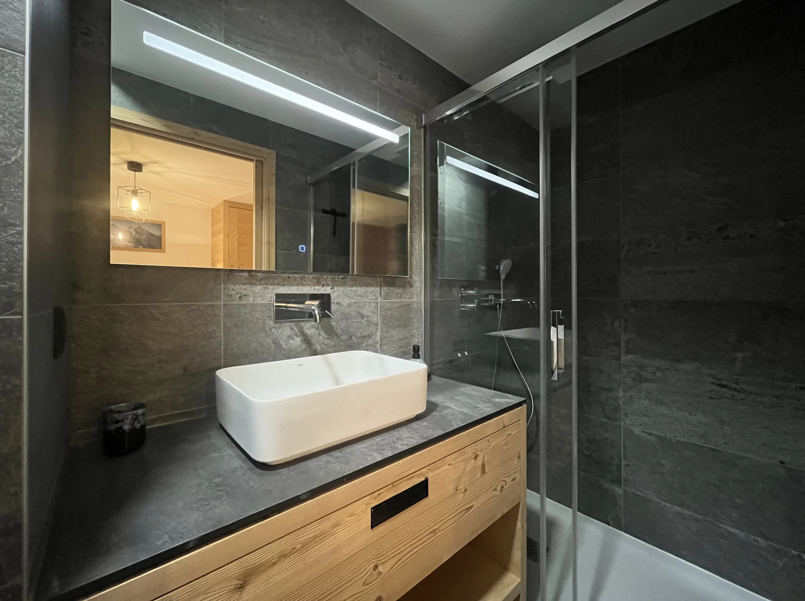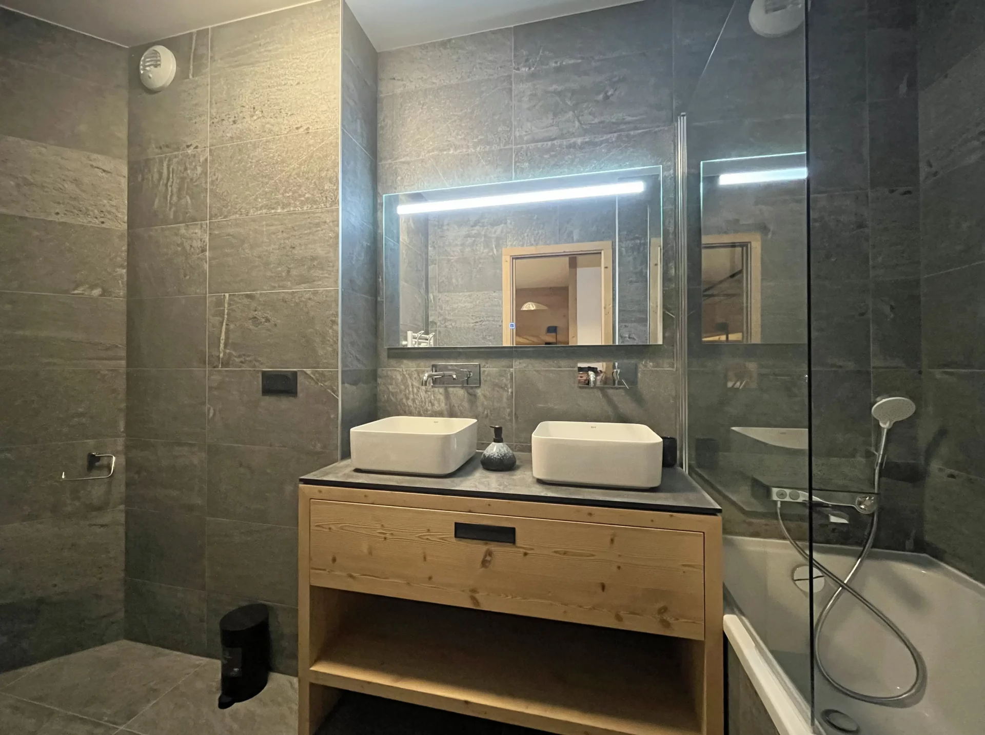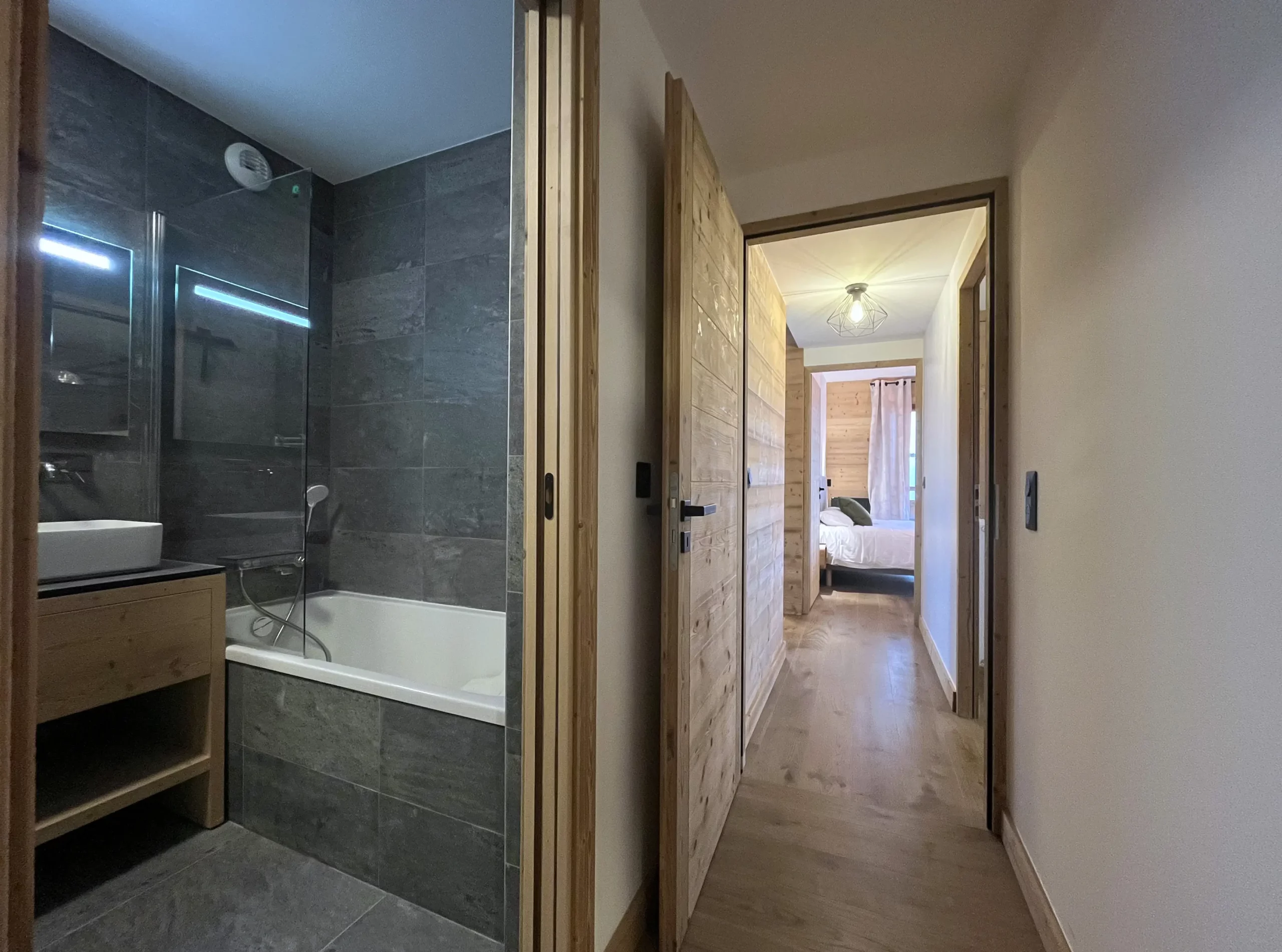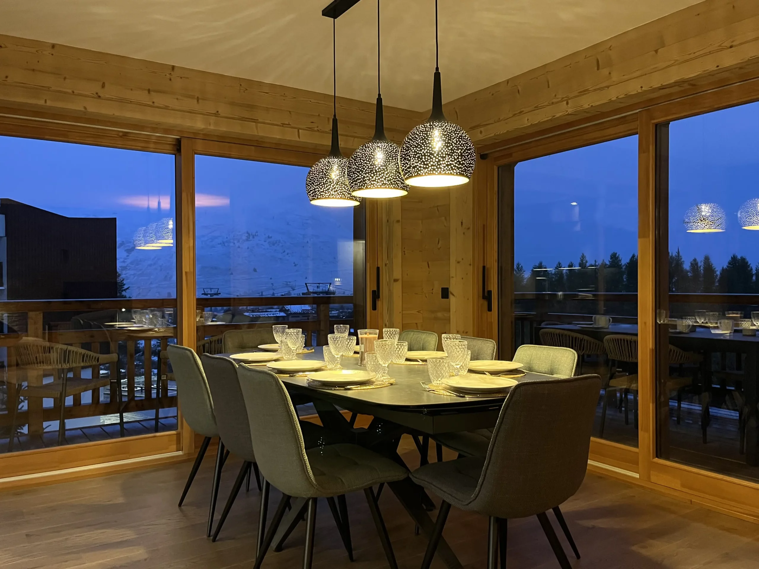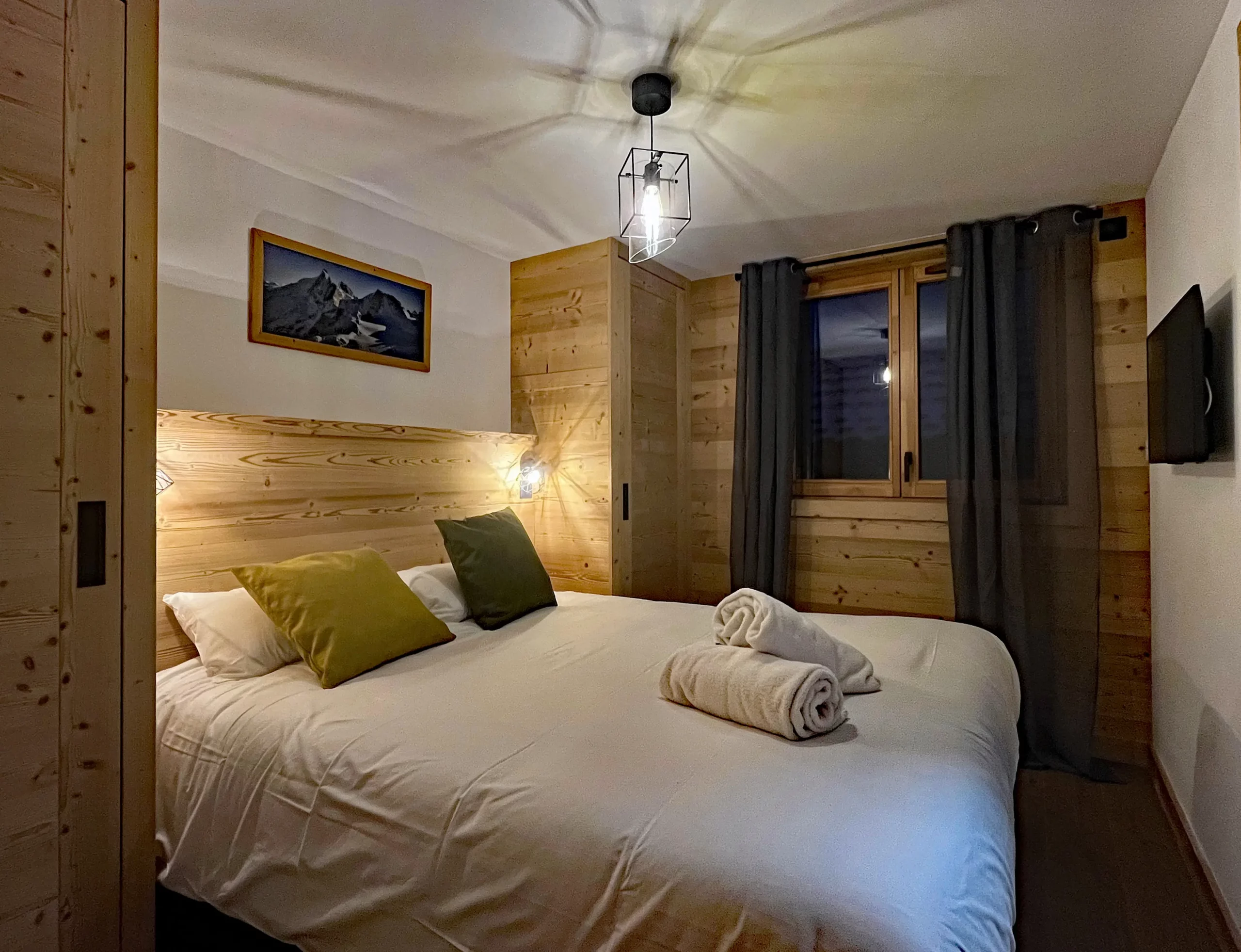 Dès l’entrée dans la pièce de vie, vous serez séduits par les volumes généreux et la lumière naturelle qui baigne l’espace grâce aux grandes baies vitrées. La pièce de vie s’articule autour d’un salon convivial, avec un grand canapé d’angle, une TV grand écran, et un accès direct à la terrasse offrant une vue imprenable sur les massifs environnants. La cuisine ouverte, moderne et entièrement équipée permet de préparer vos repas tout en partageant des moments de convivialité autour de la grande table familiale. L’appartement propose une configuration pensée pour le confort et l’intimité de chacun grâce à ses 2 suites parentales et sa chambre familiale, chacune offrant une ambiance douce et apaisante, sublimée par des matériaux nobles et des teintes naturelles, pour un véritable repos après la glisse.