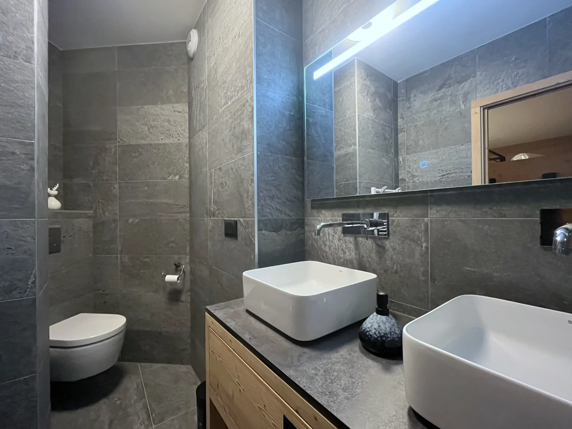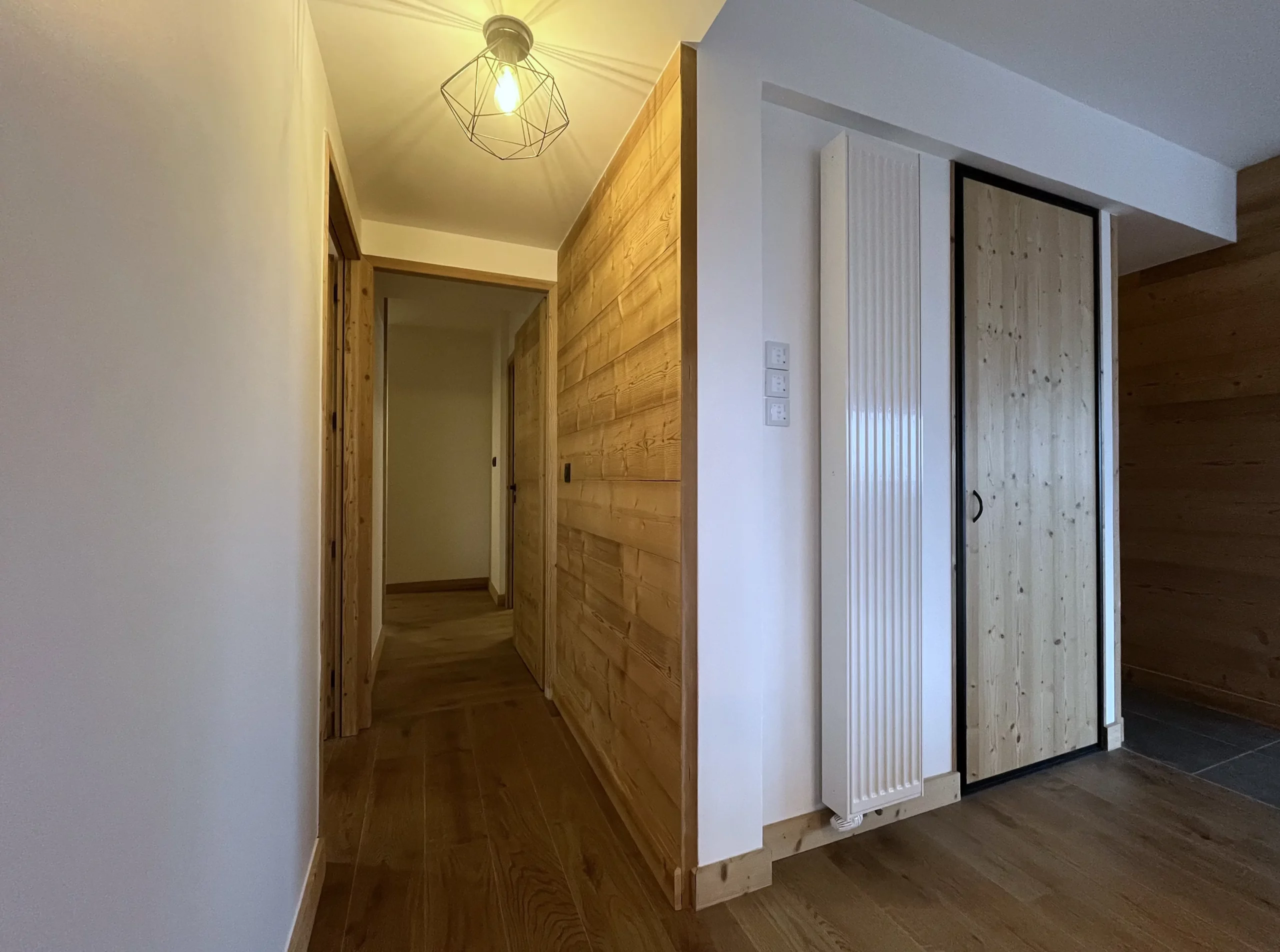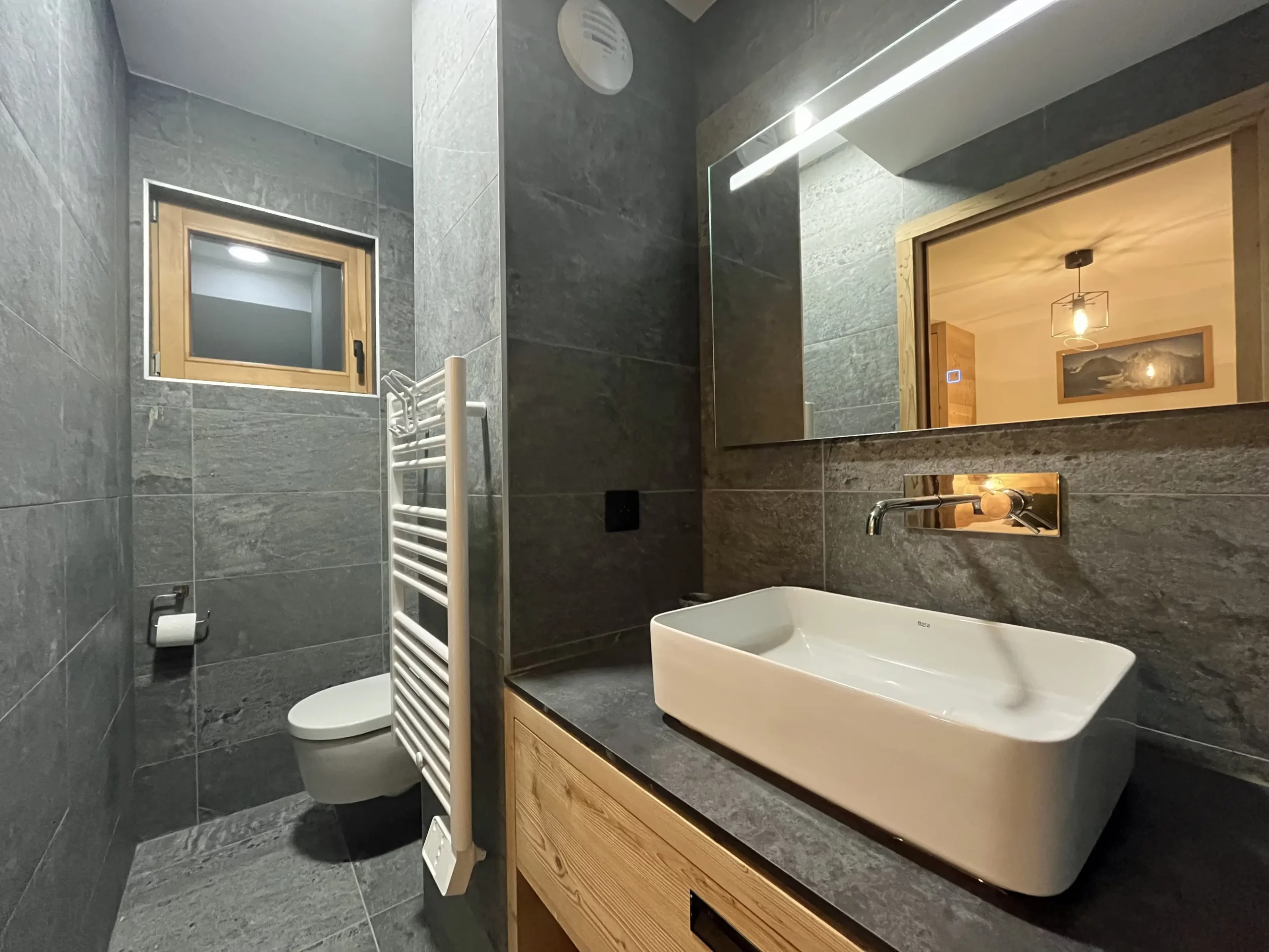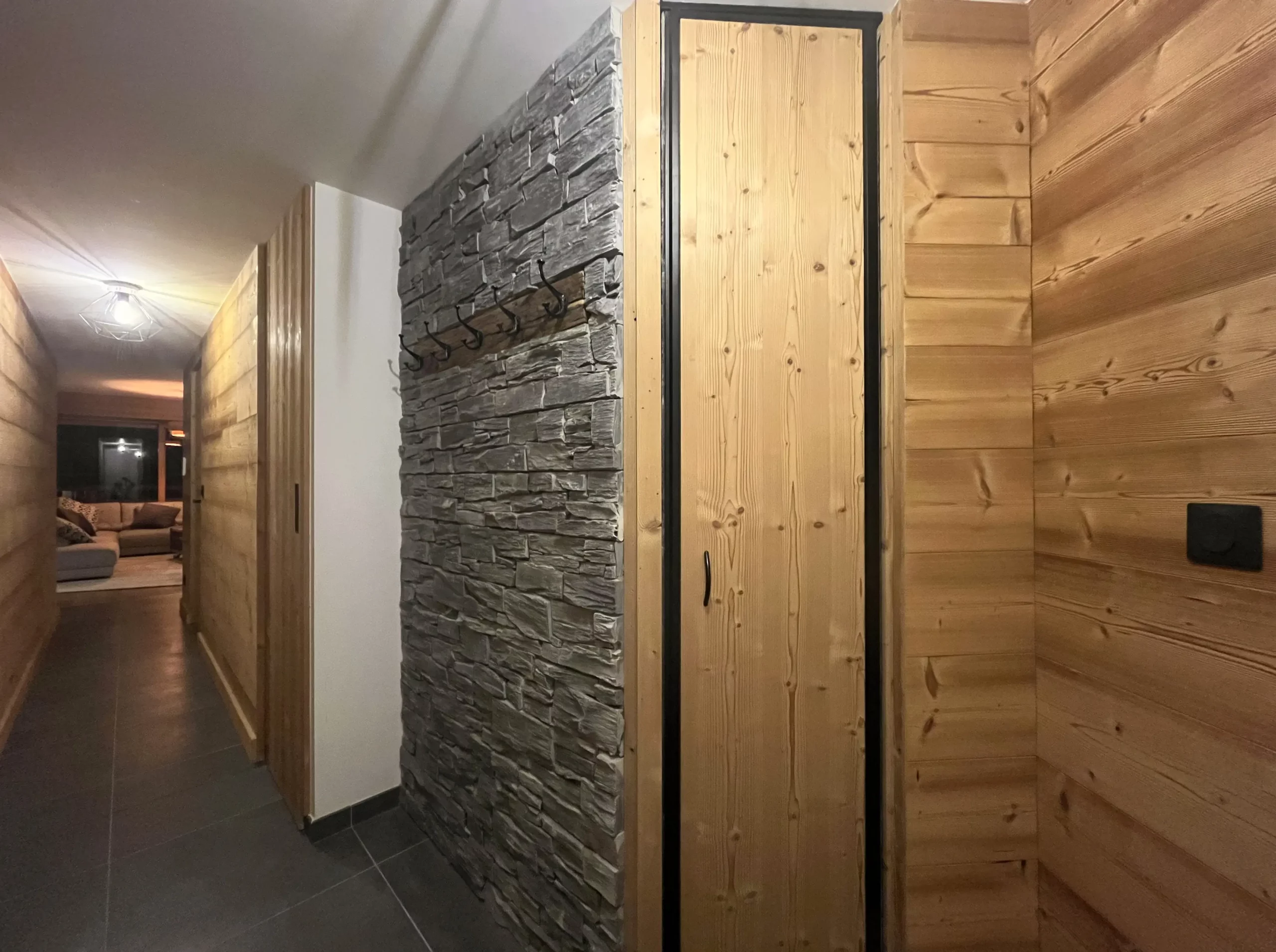 Dès l’entrée dans la pièce de vie, vous serez séduits par les volumes généreux et la lumière naturelle qui baigne l’espace grâce aux grandes baies vitrées. La pièce de vie s’articule autour d’un salon convivial, avec un grand canapé d’angle, une TV grand écran, et un accès direct à la terrasse offrant une vue imprenable sur les massifs environnants. La cuisine ouverte, moderne et entièrement équipée permet de préparer vos repas tout en partageant des moments de convivialité autour de la grande table familiale. L’appartement propose une configuration pensée pour le confort et l’intimité de chacun grâce à ses 2 suites parentales et sa chambre familiale, chacune offrant une ambiance douce et apaisante, sublimée par des matériaux nobles et des teintes naturelles, pour un véritable repos après la glisse.