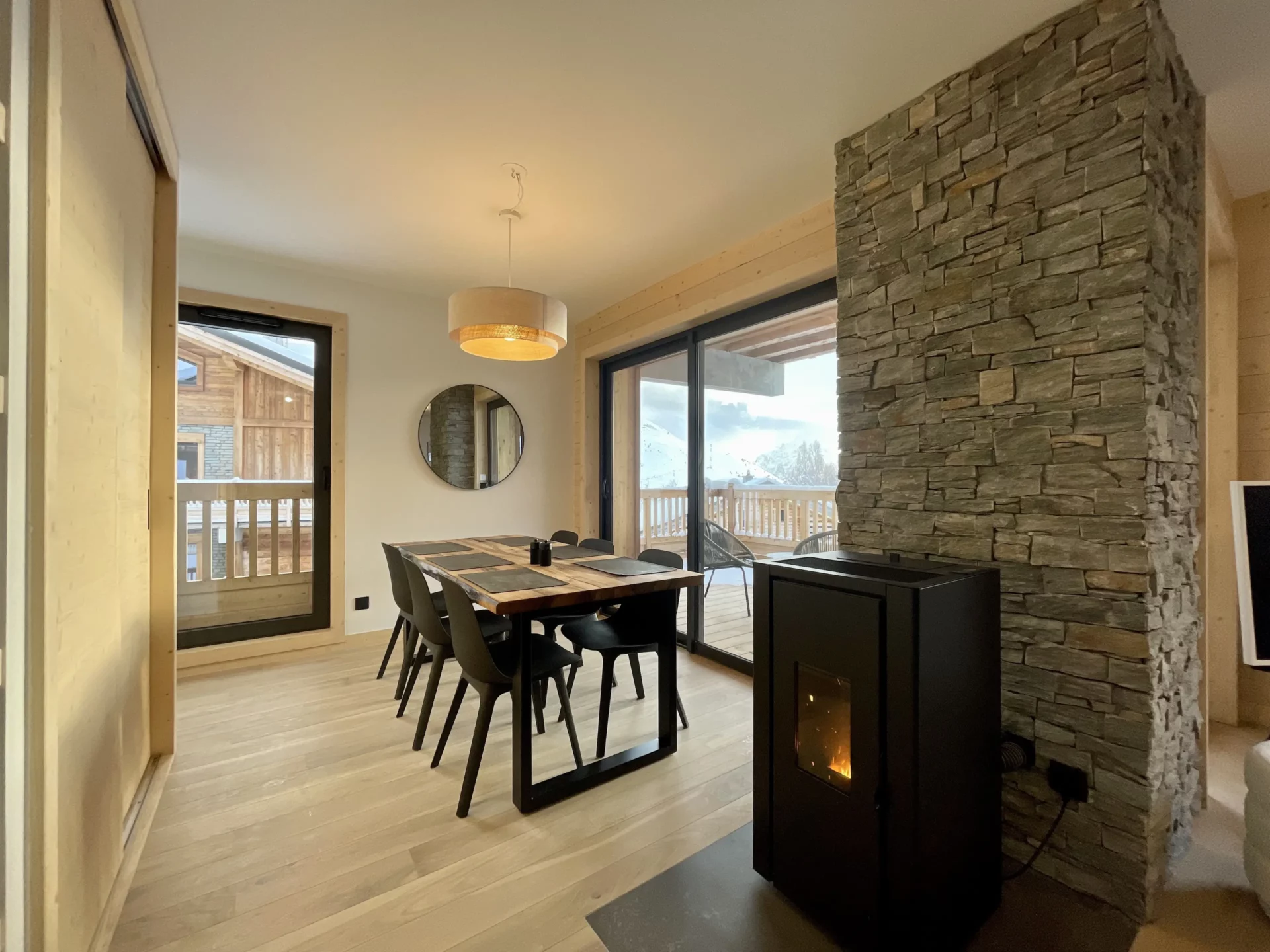 - Espace salle à manger avec poêle à granules