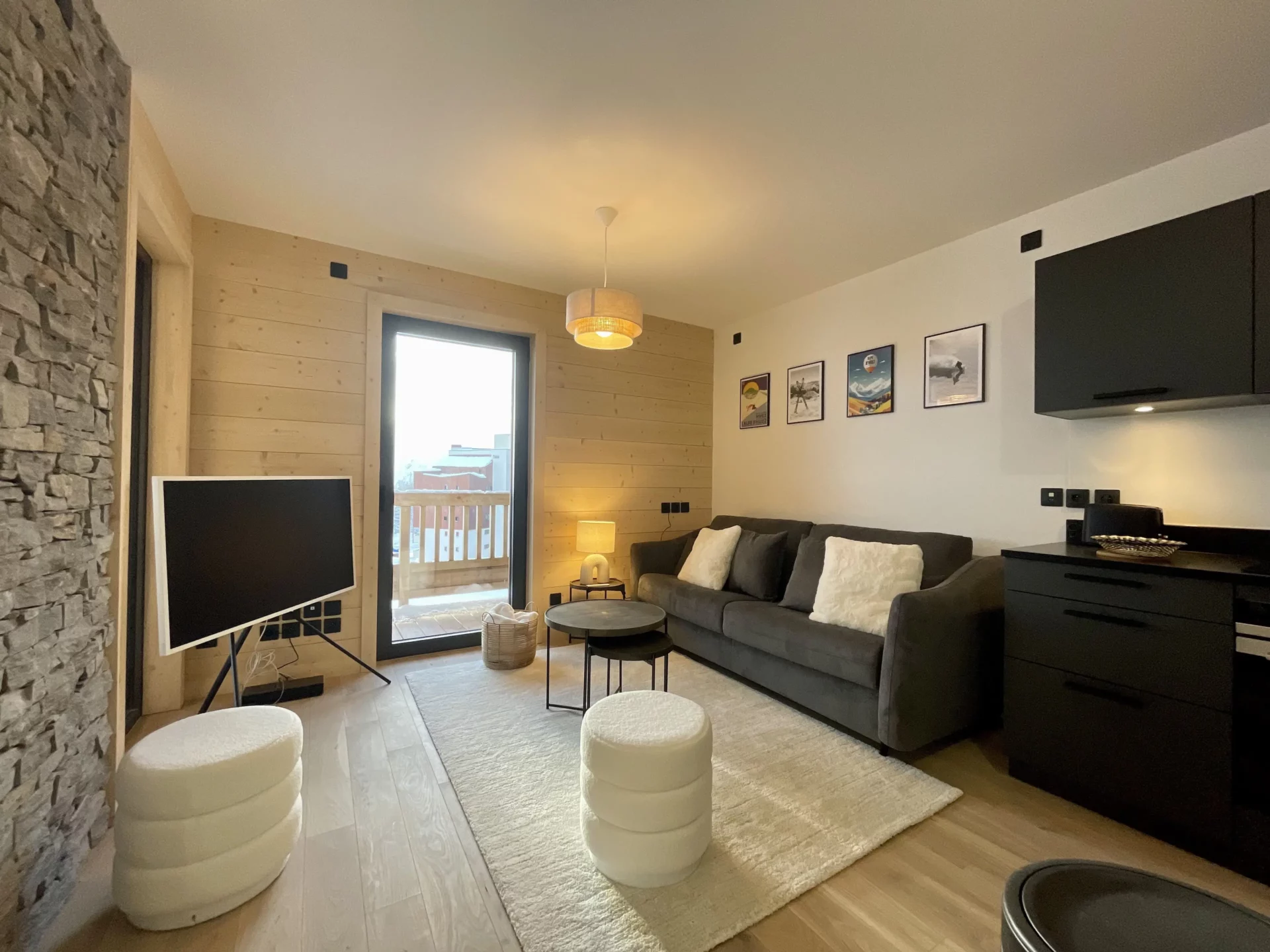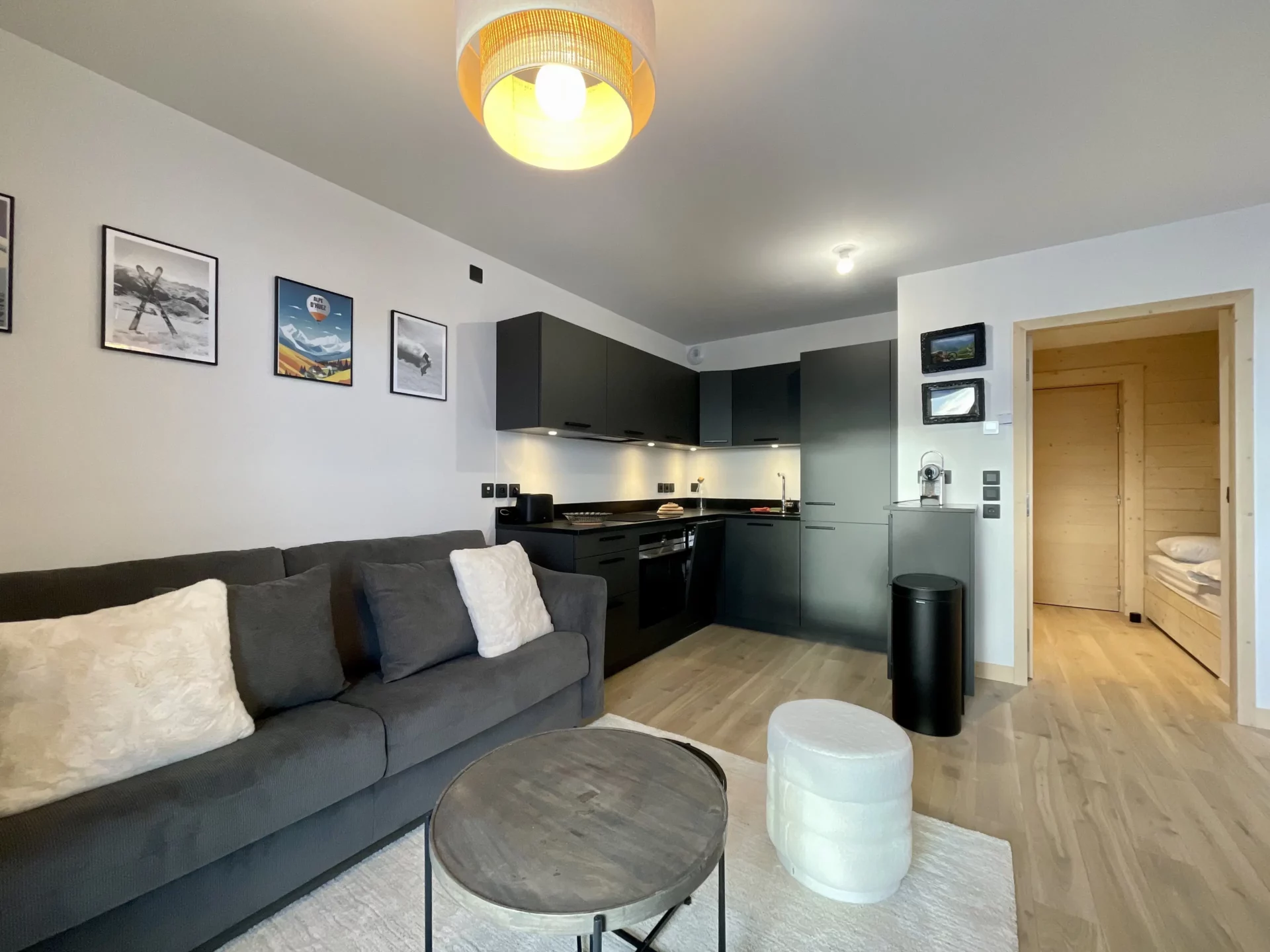 - Espace salon (canapé-lit 160 cm)