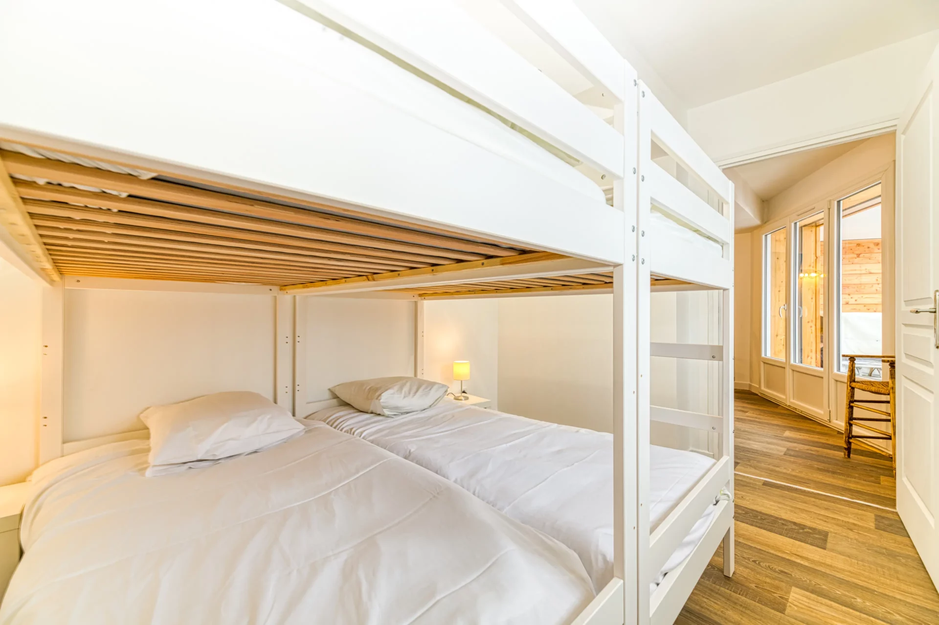 Entièrement refait à neuf, vous disposerez de 72 m² : une chambre en-suite avec lit double et salle d’eau, d’une chambre avec lit double et d’une chambre avec 4 lits simples superposés ainsi que d’un canapé-lit dans le séjour ce qui vous permettra d’accueillir jusqu’à 10 personnes. Une terrasse aménagée vous permet de vous prélasser au soleil tout en contemplant le magnifique panorama qui se déroule devant vos yeux. Une place de parking dans un garage souterrain vient compléter ce bien (en option).