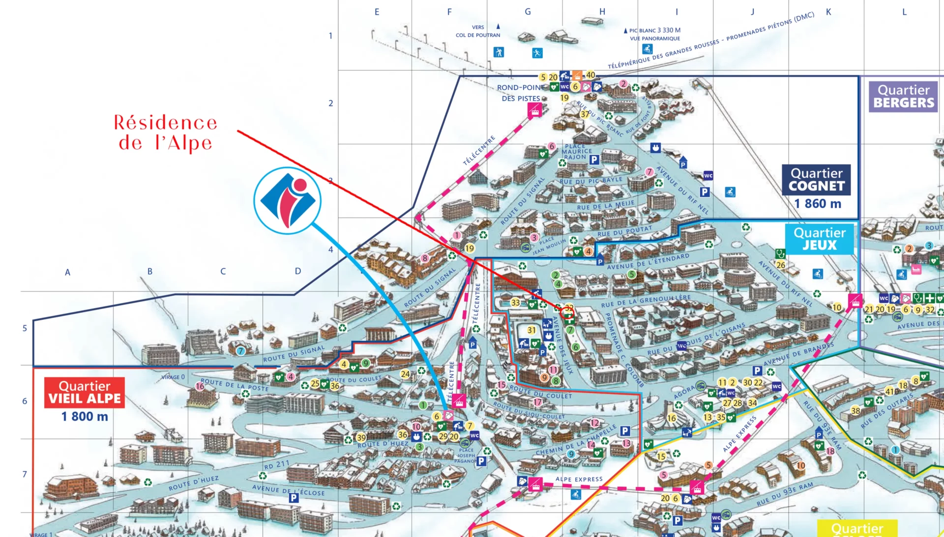 Accès à la piste qui traverse l'Alpe d'Huez à 200m et qui descend à l'Alpe Express pour rejoindre les Bergers et le chalet des enfants (Point de rendez-vous ESF pour enfants dès 2 ans 1/2) ou grâce au Télécentre pour rejoindre le Rond-Point des pistes (Télécabine des Grandes Rousses). Navette gratuite pour rejoindre le Rond-Point des Pistes ou les Bergers.