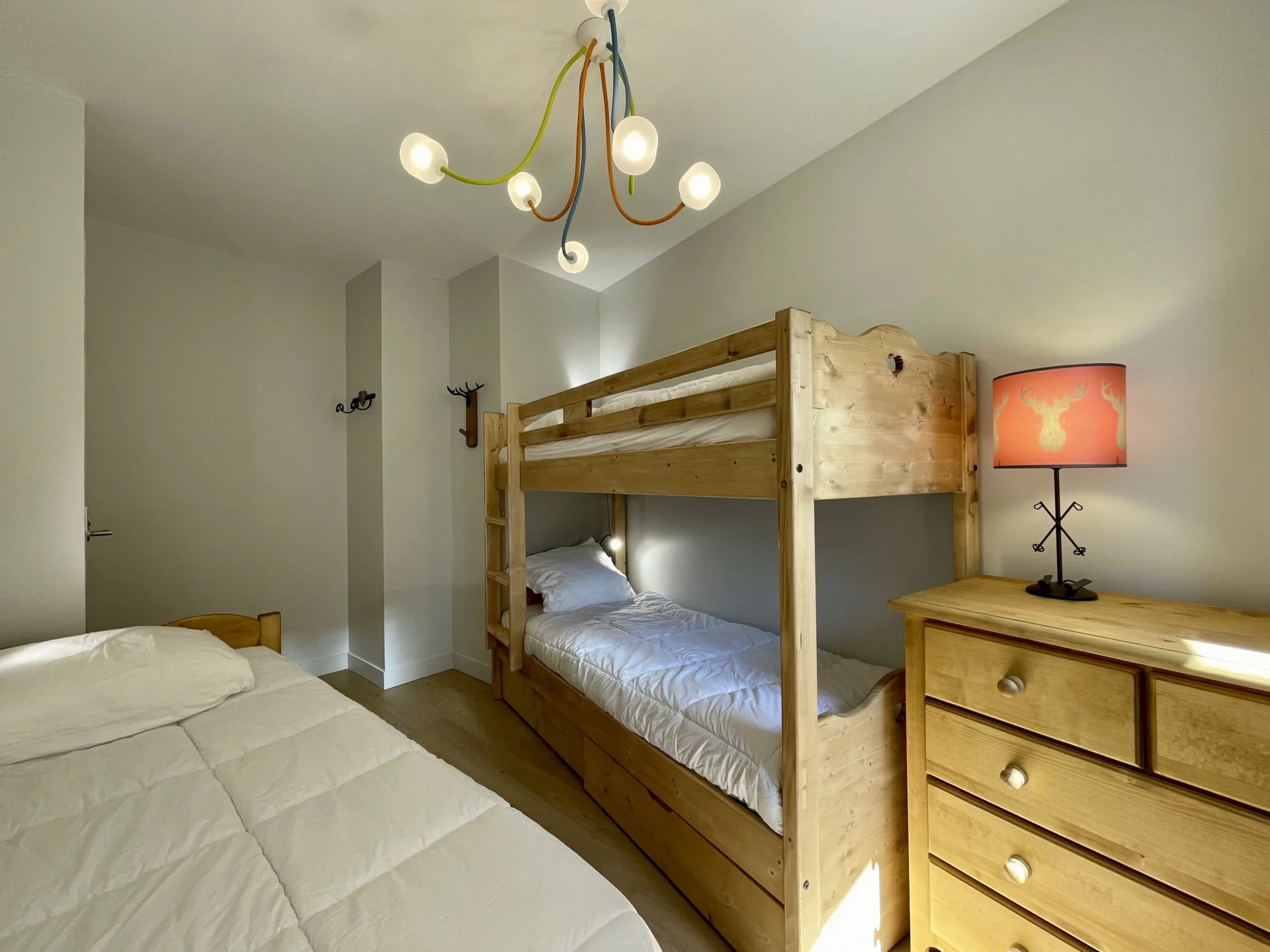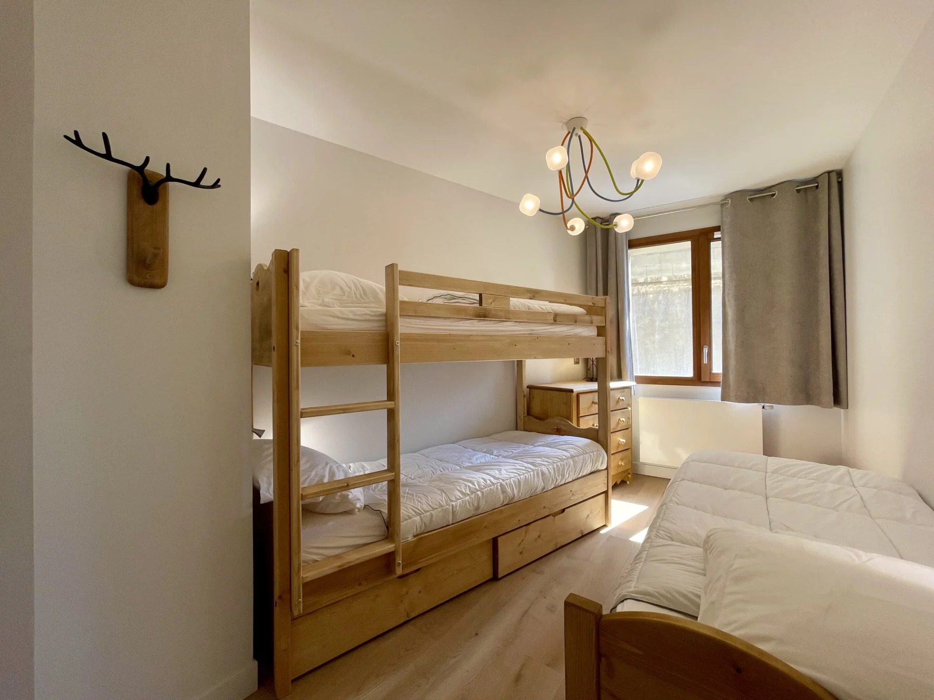 - 1 chambre avec 1 lit simple (90) et 2 lits simples superposés