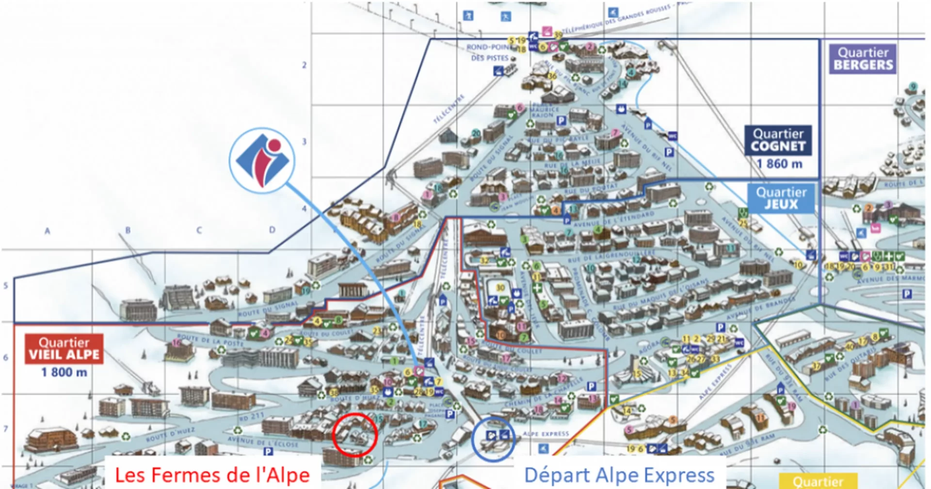 Accès rapide aux pistes à 150m, vous pourrez relier facilement le départ des cours ESF avec l'Alpe Express pour rejoindre les Bergers et le chalet des enfants (Point de rendez-vous ESF pour enfants dès 2 ans 1/2) ou grâce au Télécentre pour rejoindre le Rond-Point des pistes (Télécabine des Grandes Rousses - Point de rendez-vous ESF). Navettes gratuites depuis la Place Paganon (100m) pour rejoindre le Rond-Point des Pistes ou les Bergers.