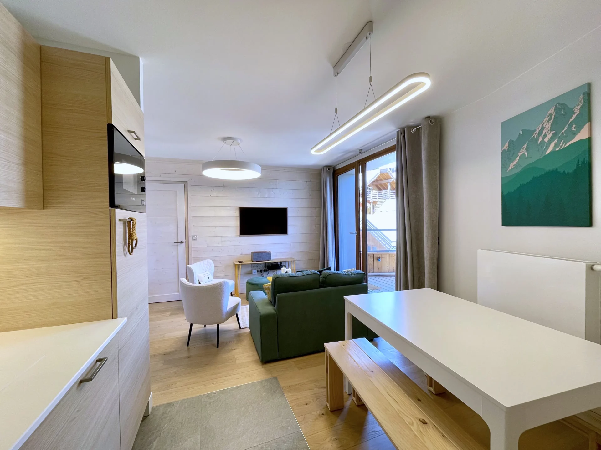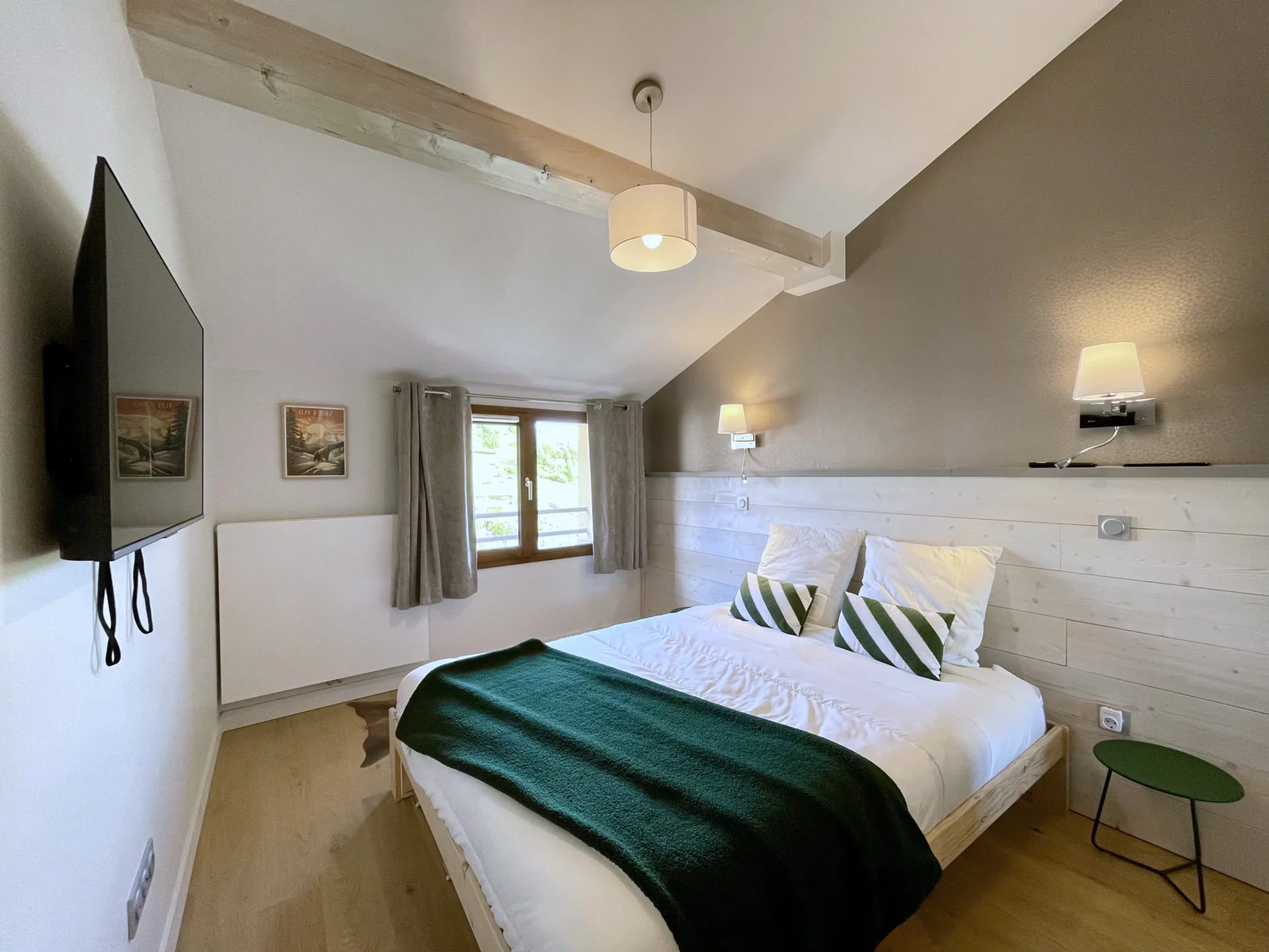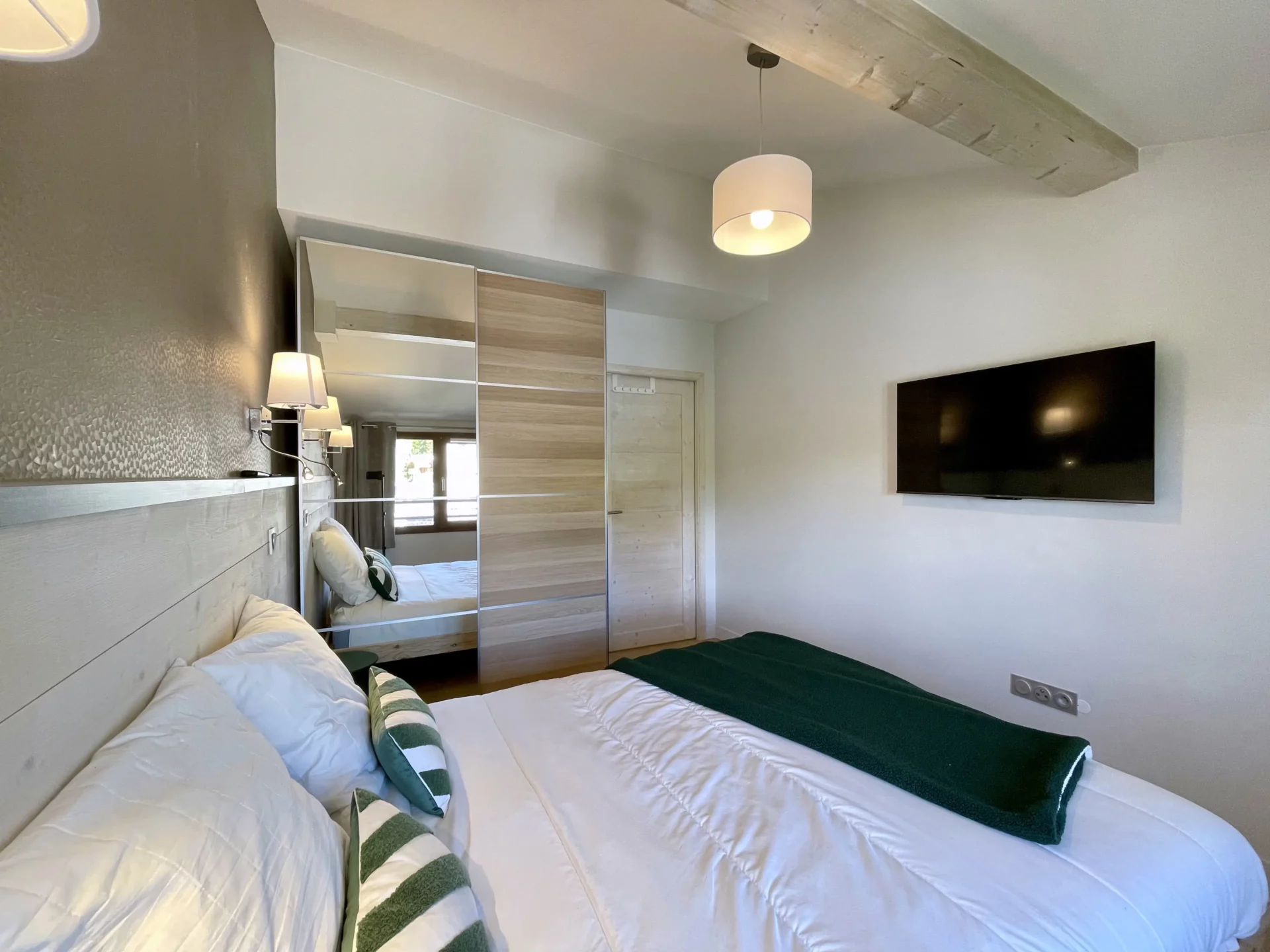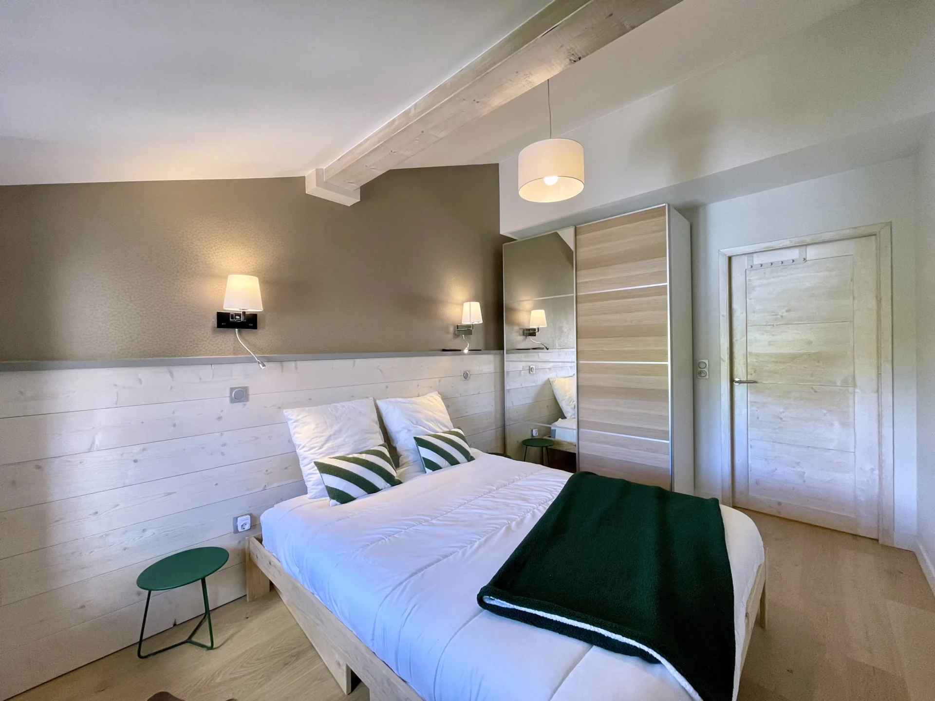 L’appartement A302 est un beau 4 pièces lumineux, situé au 3ème étage et bénéficiant d’une terrasse aménagée depuis laquelle il est agréable de contempler les massifs. Il peut accueillir confortablement 6 personnes voire 8 si nécessaire avec ses 2 chambres (lit double) et son coin montagne (4 lits simples – superposés 2 par 2). Un grand garage boxé (PMR), pouvant aisément accueillir également des vélos, vient compléter ce bien.