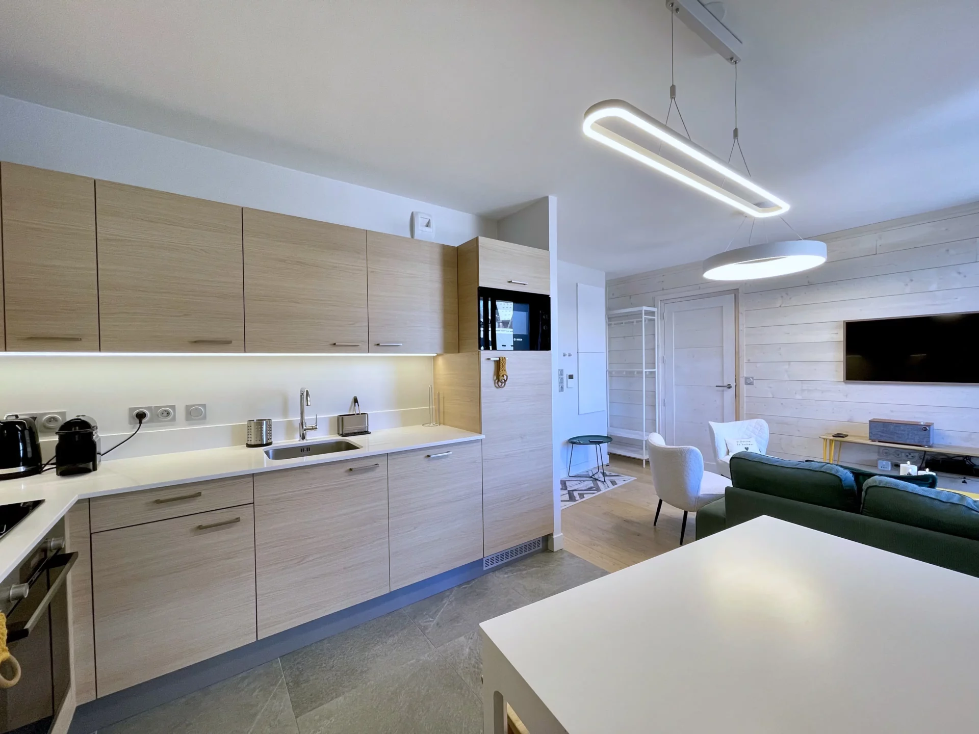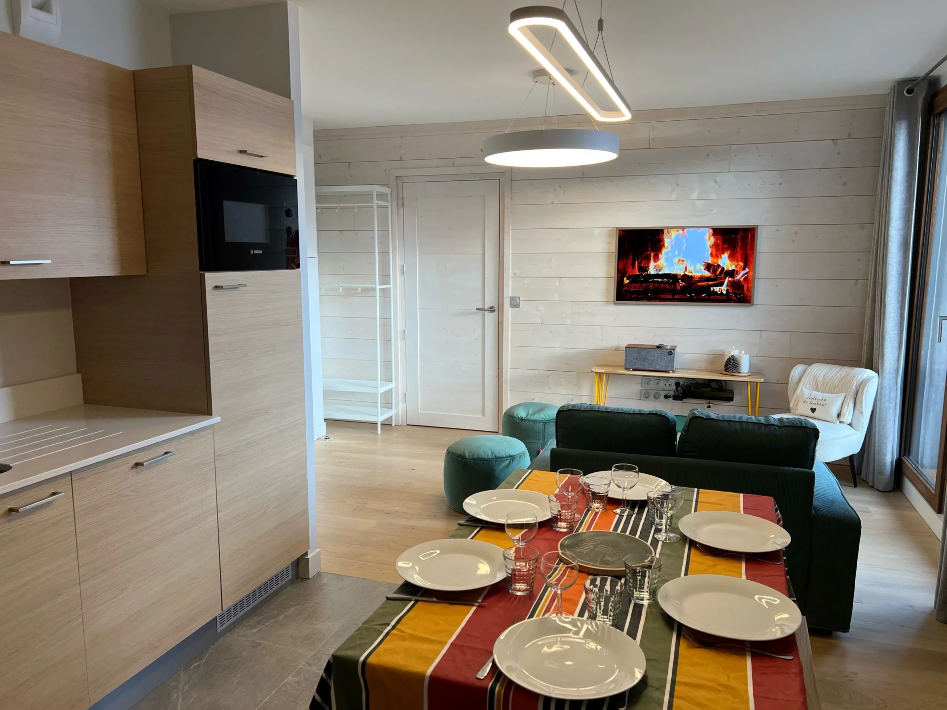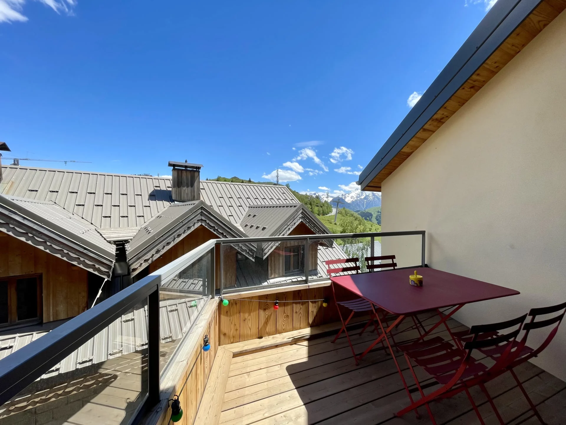 L’appartement A302 est un beau 4 pièces lumineux, situé au 3ème étage et bénéficiant d’une terrasse aménagée depuis laquelle il est agréable de contempler les massifs. Il peut accueillir confortablement 6 personnes voire 8 si nécessaire avec ses 2 chambres (lit double) et son coin montagne (4 lits simples – superposés 2 par 2). Un grand garage boxé (PMR), pouvant aisément accueillir également des vélos, vient compléter ce bien.