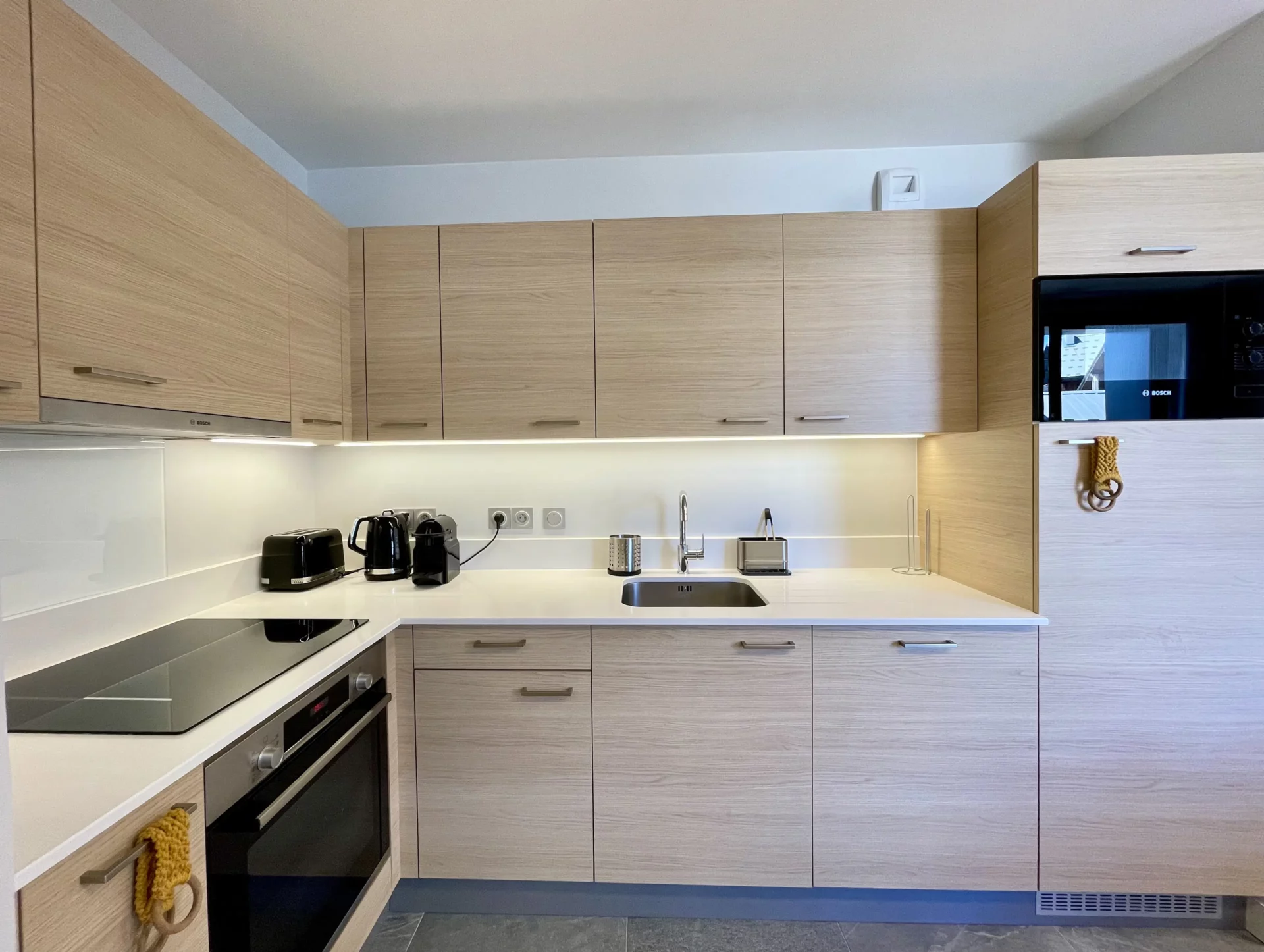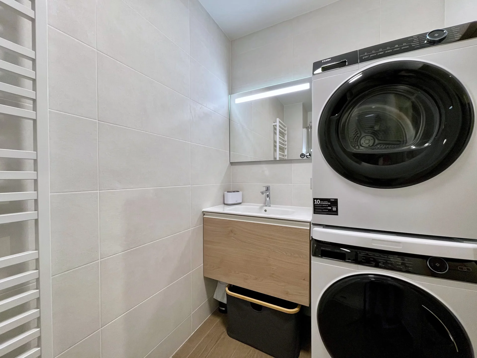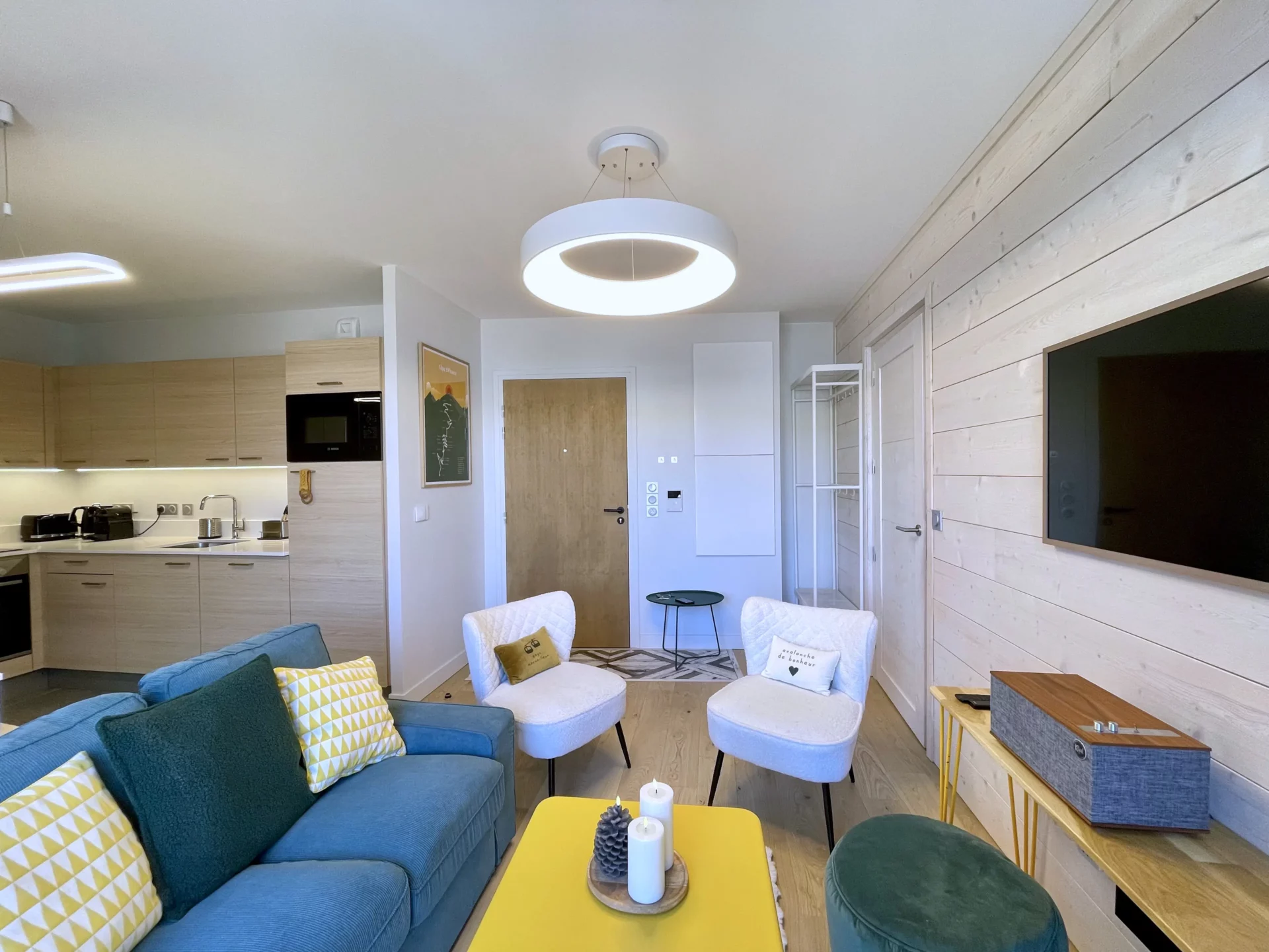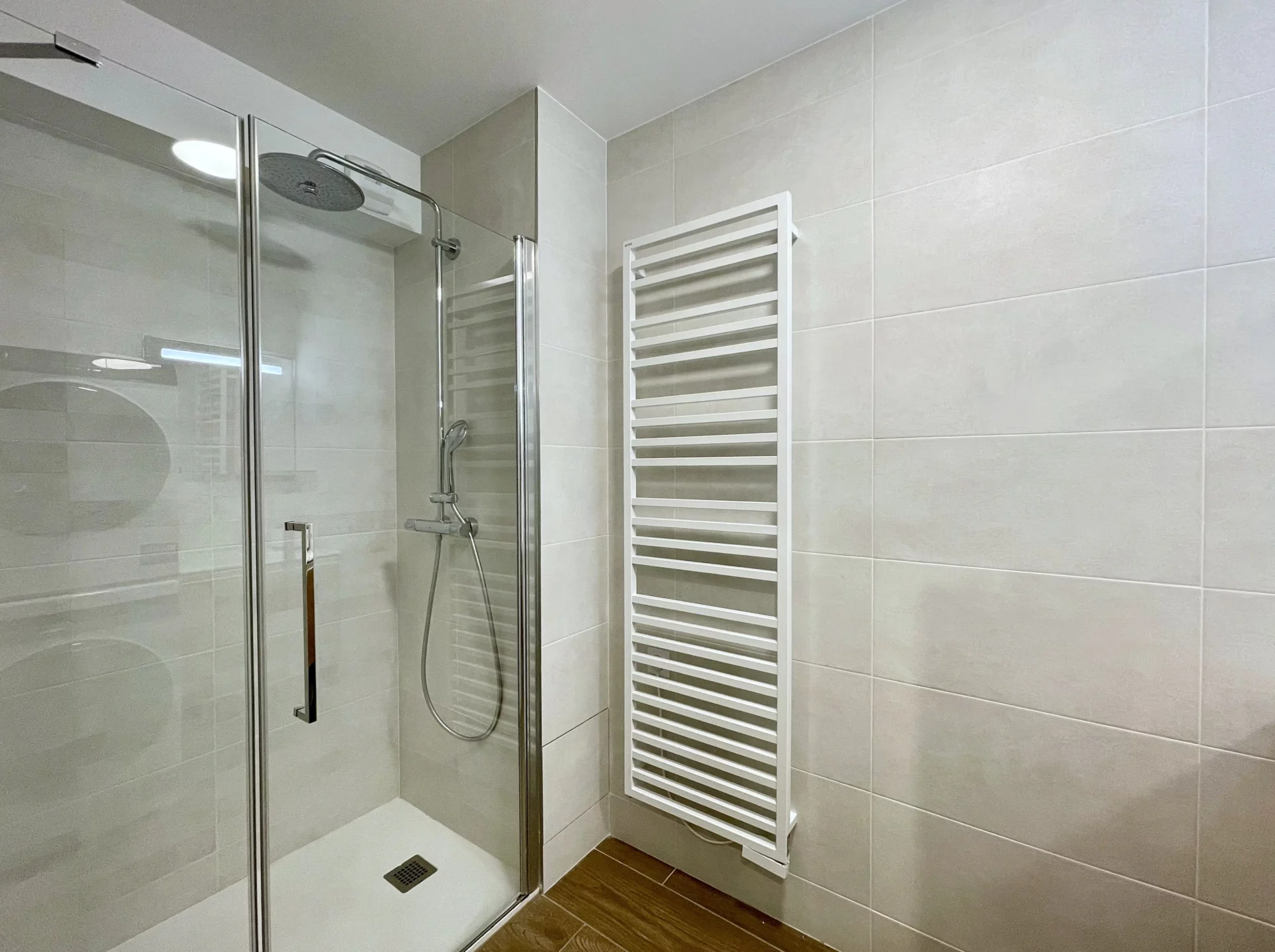 L’appartement A302 est un beau 4 pièces lumineux, situé au 3ème étage et bénéficiant d’une terrasse aménagée depuis laquelle il est agréable de contempler les massifs. Il peut accueillir confortablement 6 personnes voire 8 si nécessaire avec ses 2 chambres (lit double) et son coin montagne (4 lits simples – superposés 2 par 2). Un grand garage boxé (PMR), pouvant aisément accueillir également des vélos, vient compléter ce bien.