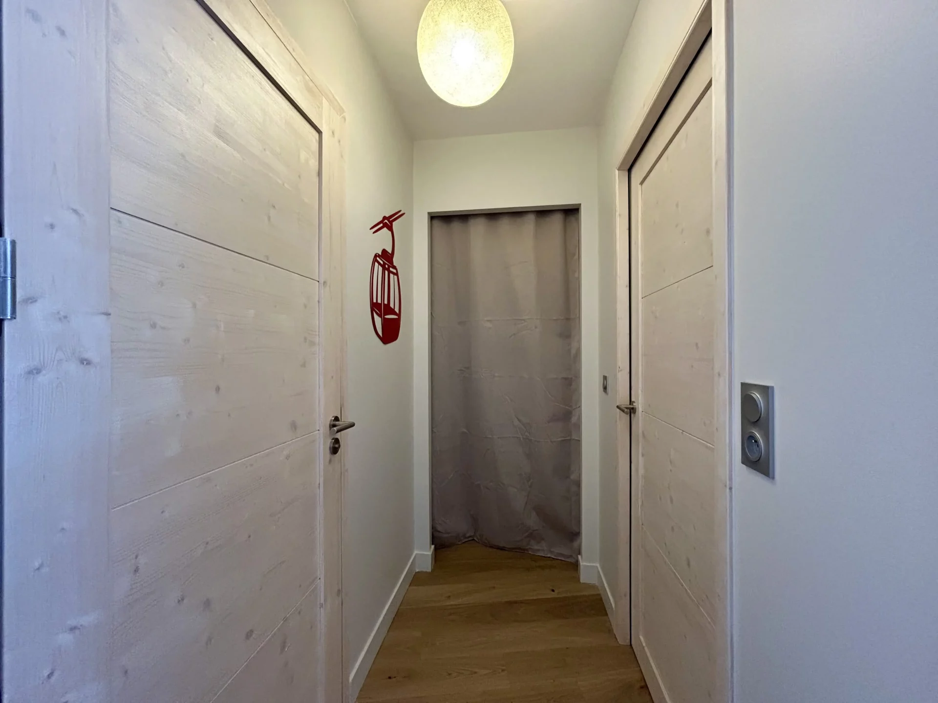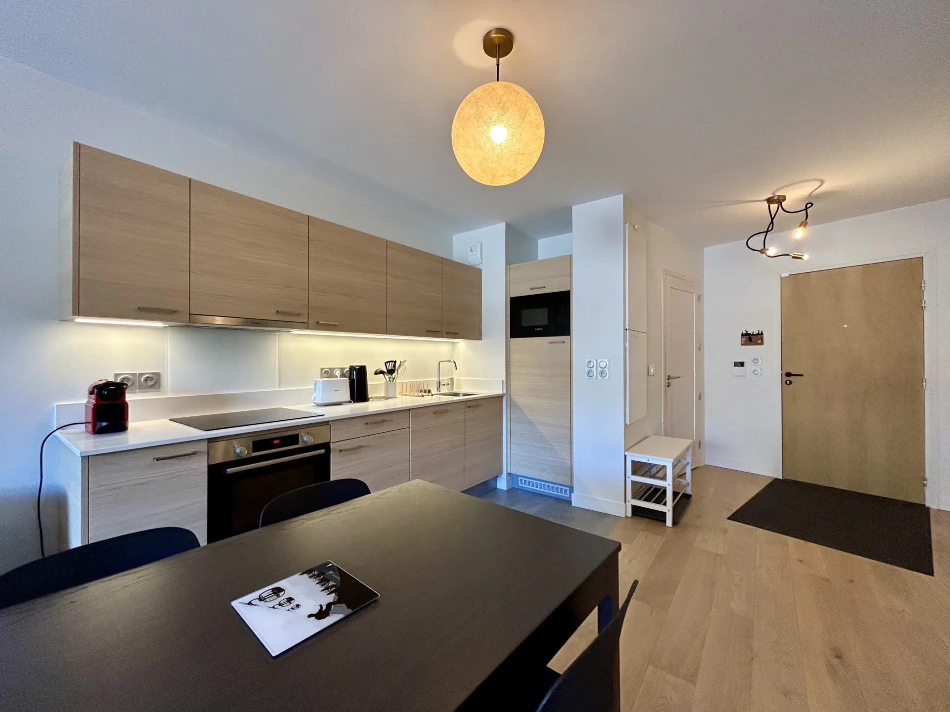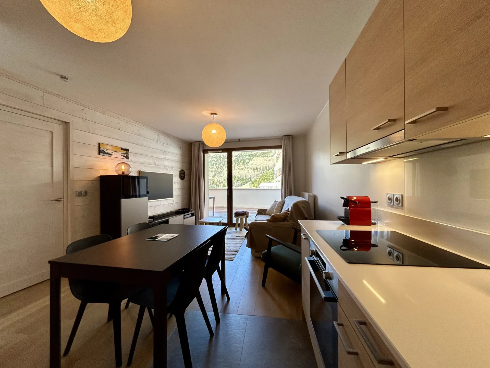 L’appartement D101 est un charmant 3 pièces, très cosy, situé au 1er étage. Il peut accueillir confortablement 4 personnes avec sa chambre et son coin montagne séparé par un rideau du couloir ( idéal pour 2 adultes et 2 enfants, le lit superposé étant réservé à des enfants ). La pièce de vie ouvre sur une belle terrasse aménagée de 24 m². Un garage complète ce bien avec prise Schuko renforcée pour recharger un véhicule électrique (prévoir un chargeur compatible).