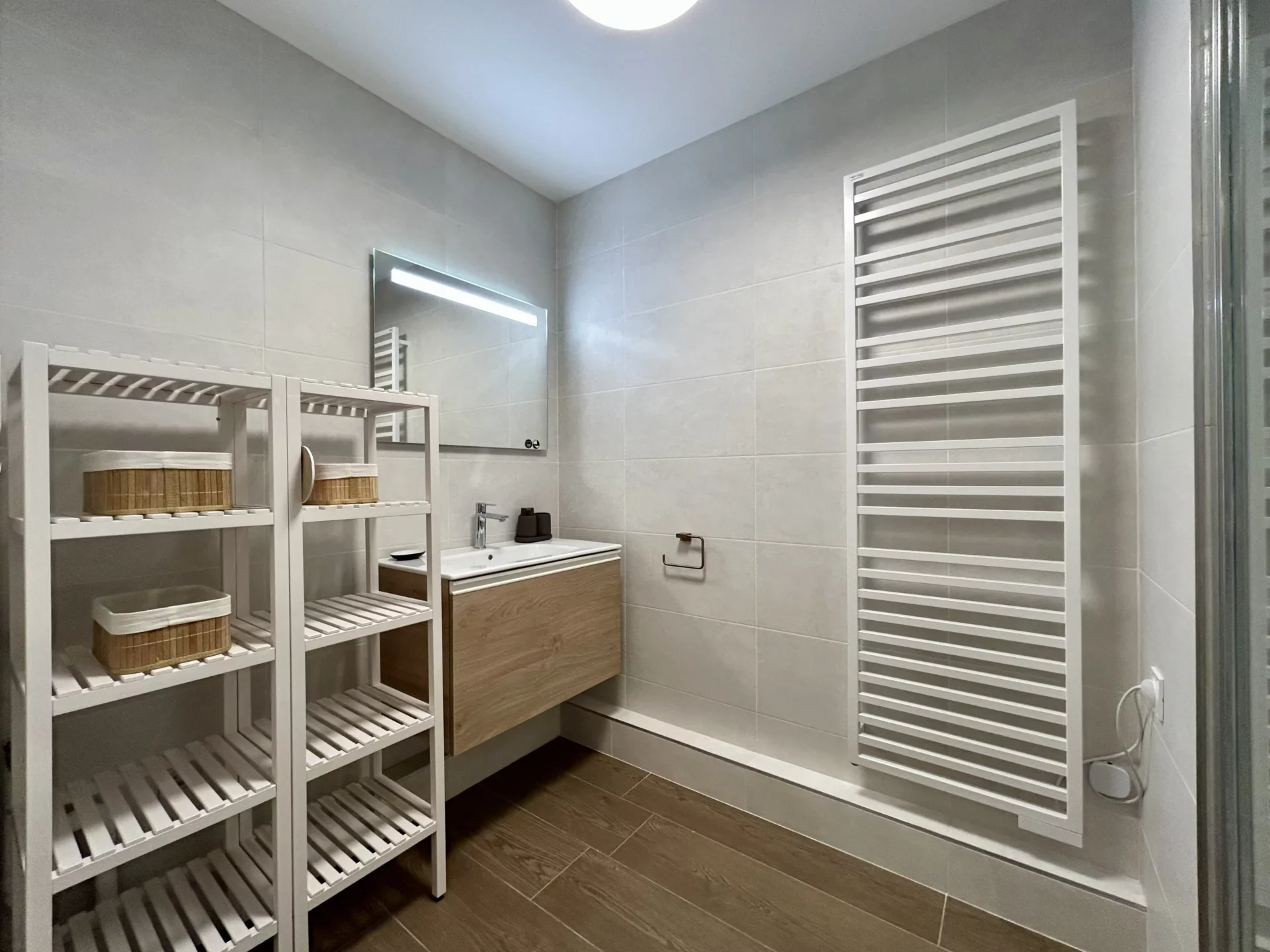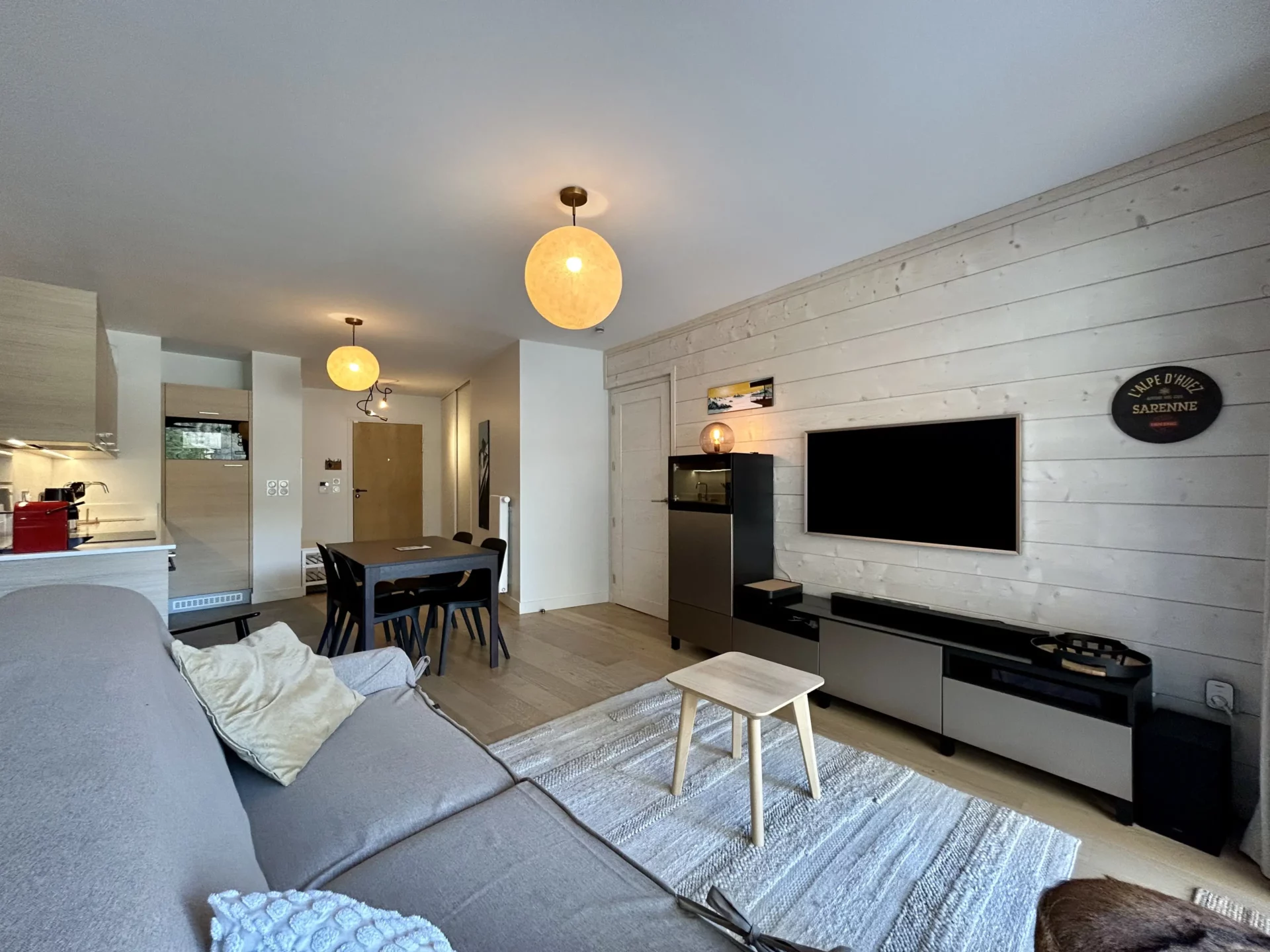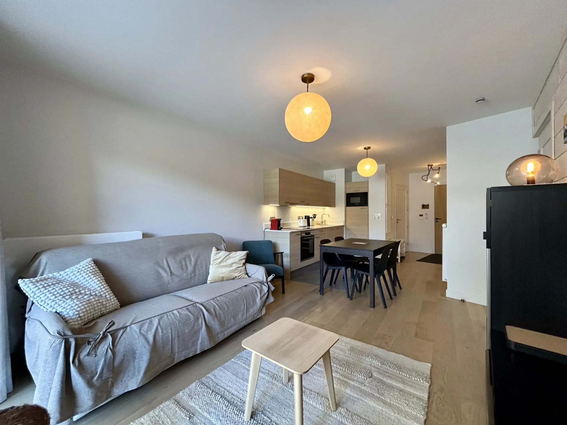 L’appartement D101 est un charmant 3 pièces, très cosy, situé au 1er étage. Il peut accueillir confortablement 4 personnes avec sa chambre et son coin montagne séparé par un rideau du couloir ( idéal pour 2 adultes et 2 enfants, le lit superposé étant réservé à des enfants ). La pièce de vie ouvre sur une belle terrasse aménagée de 24 m². Un garage complète ce bien avec prise Schuko renforcée pour recharger un véhicule électrique (prévoir un chargeur compatible).