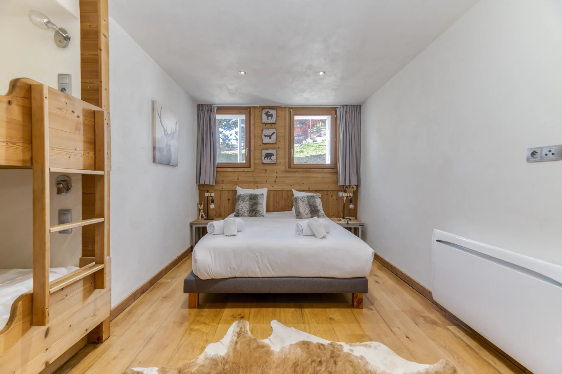 - 1 chambre avec lit double (160) et 2 lits simples superposés (90)