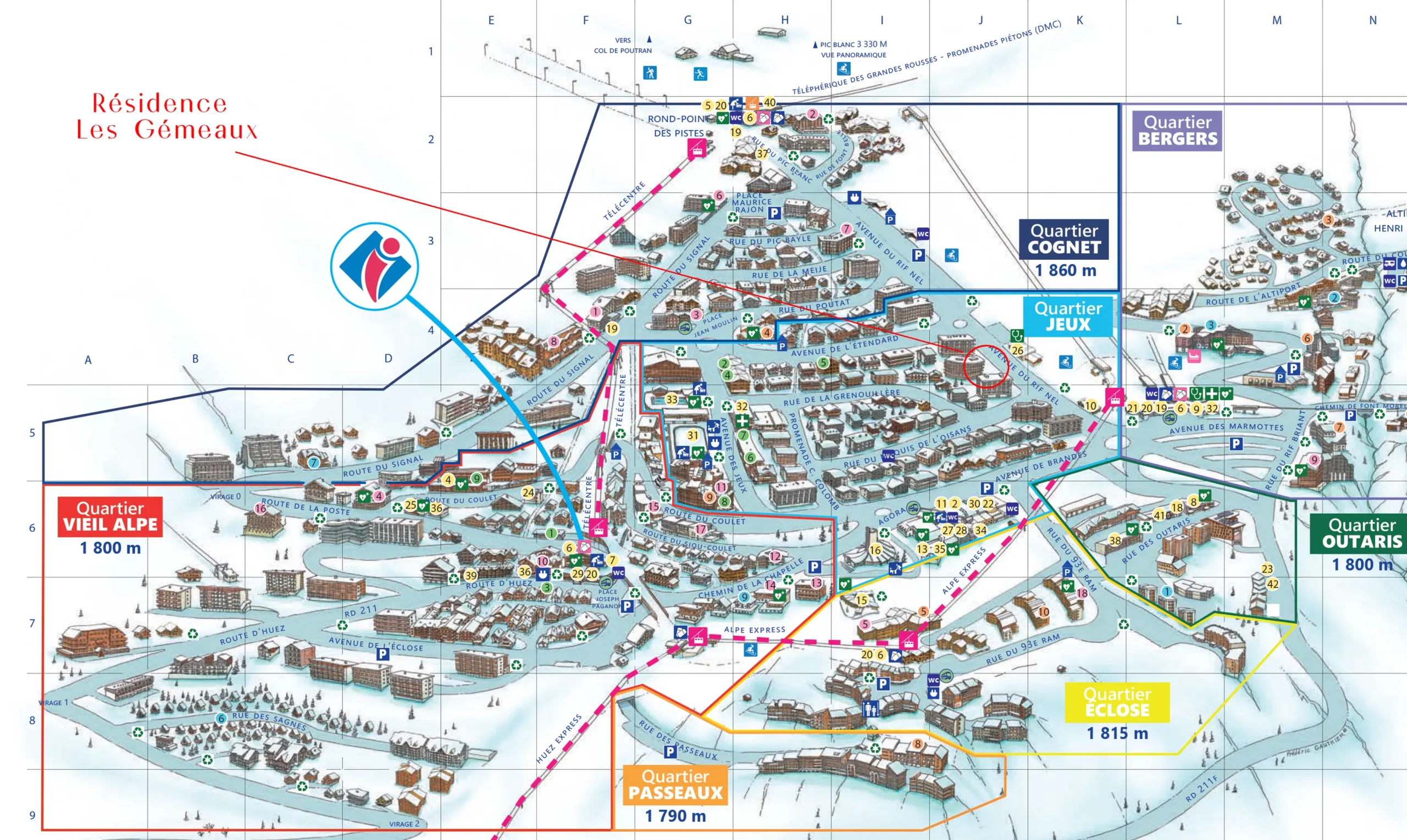 Située au cœur des Alpes françaises, l’Alpe d’Huez est une station de renommée internationale qui séduit les visiteurs été comme hiver. Une altitude élevée vous garantit de bonnes conditions d’enneigement.