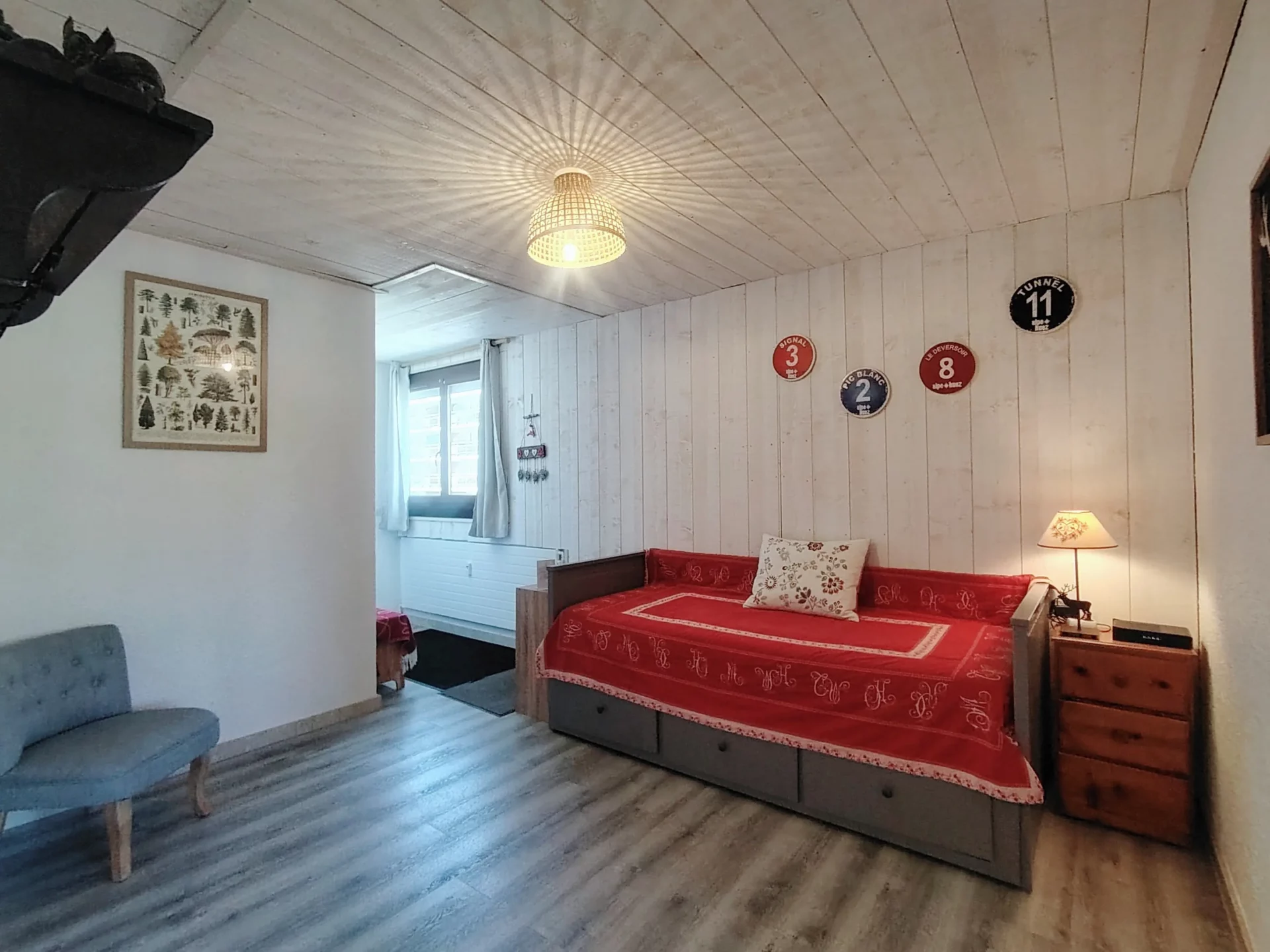 Une chambre avec lit double , un coin nuit dans l’entrée avec 2 lits simples, et un canapé-lit dans le salon vous permettront d’abriter jusqu’à 6 personnes. Vous pourrez vous prélasser au soleil grâce à un balcon aménagé et profiter d’une vue splendide sur les massifs. La résidence possède un parking extérieur auquel vous aurez accès.