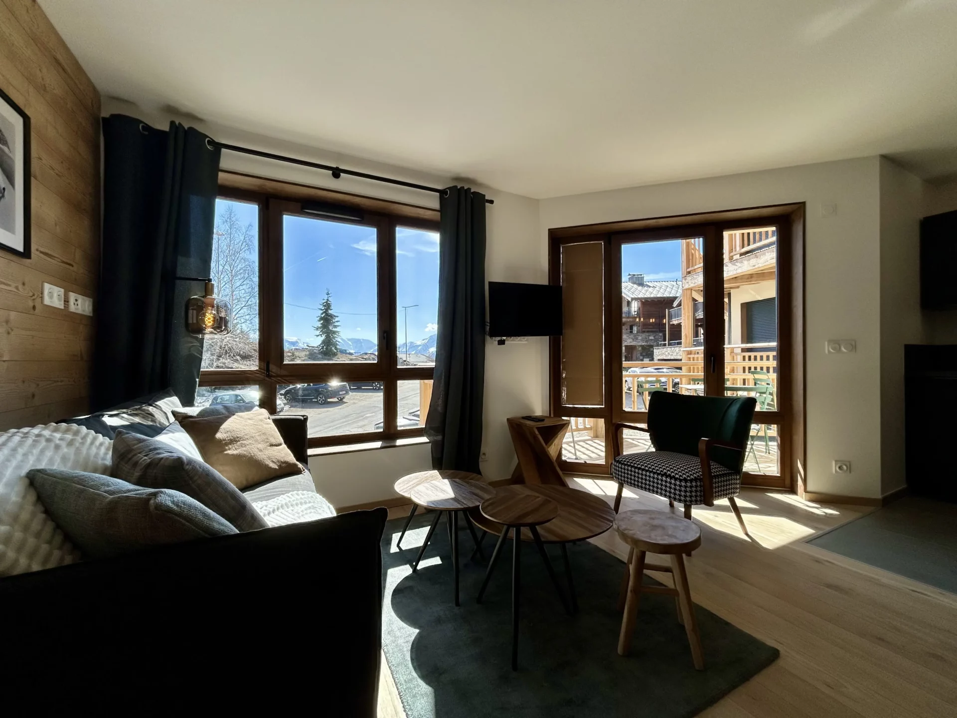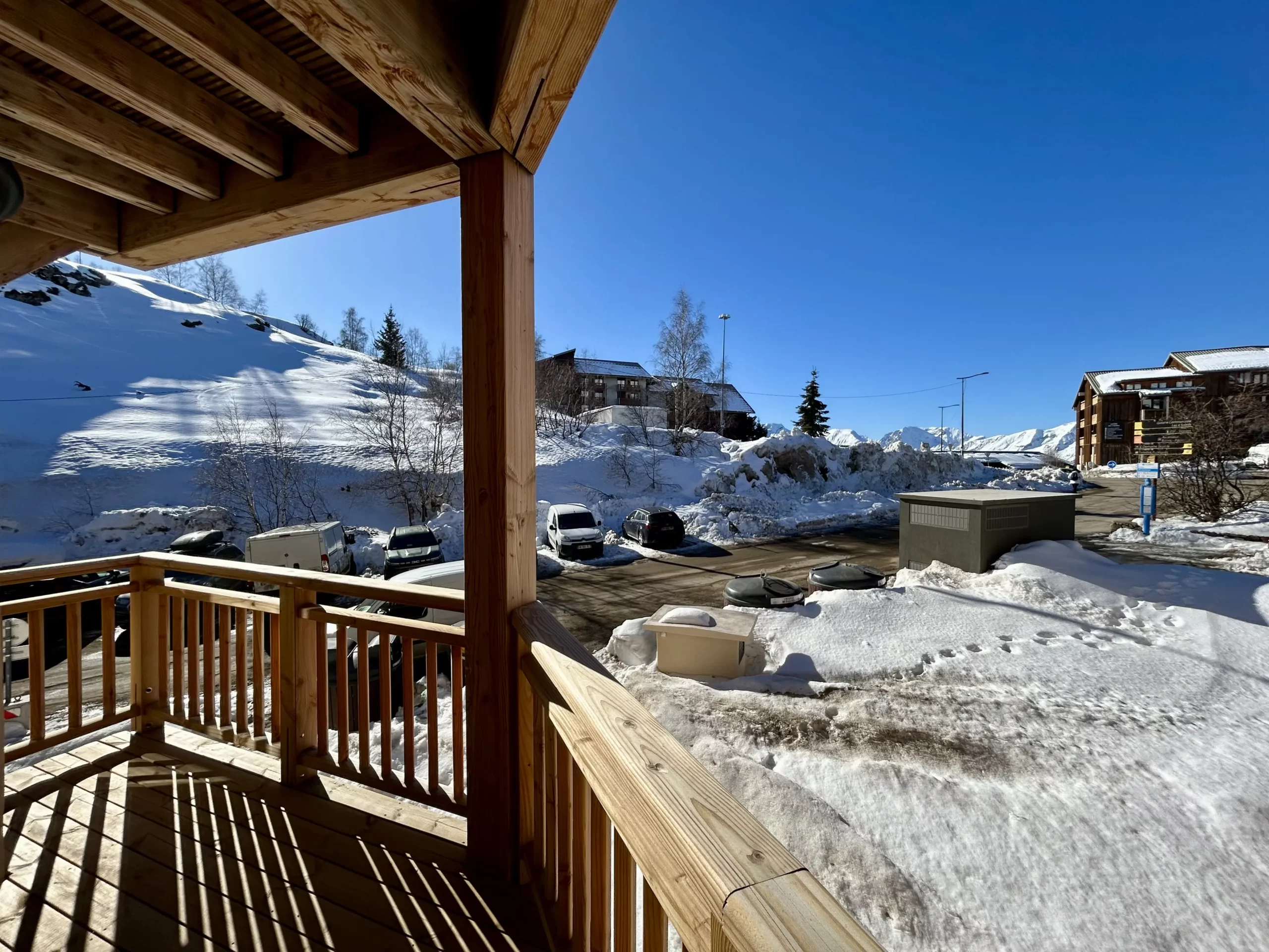À 50m de la télécabine l'Alpe Express qui permet de rejoindre les Bergers et le chalet des enfants (Point de rendez-vous ESF pour enfants dès 2 ans 1/2)