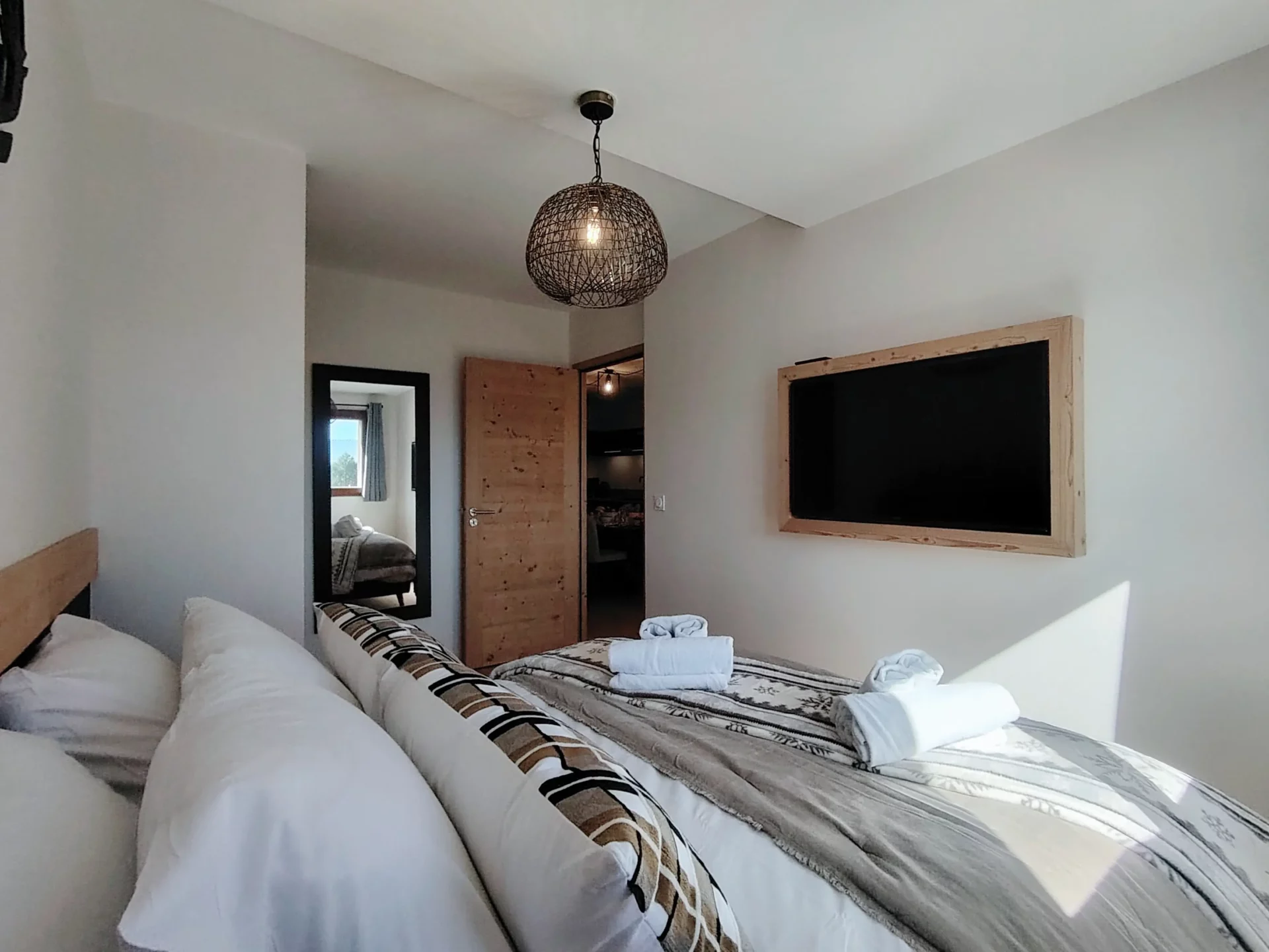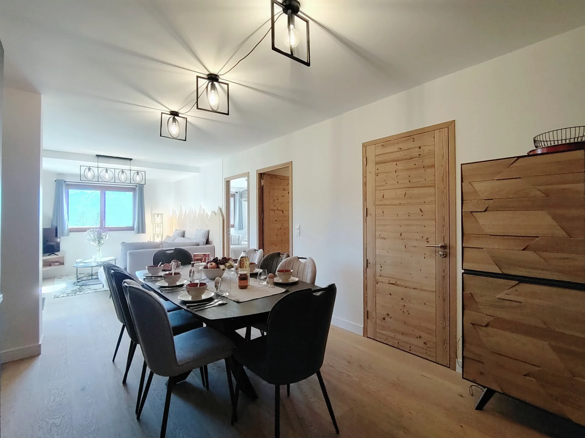 Cet appartement de haut standing vous offre 8 couchages, répartis dans 4 chambres dont 1 en-suite, très confortables, un ski-room avec sèche-chaussures et un box fermé ainsi qu’une place de parking (parking public des Ecloses)