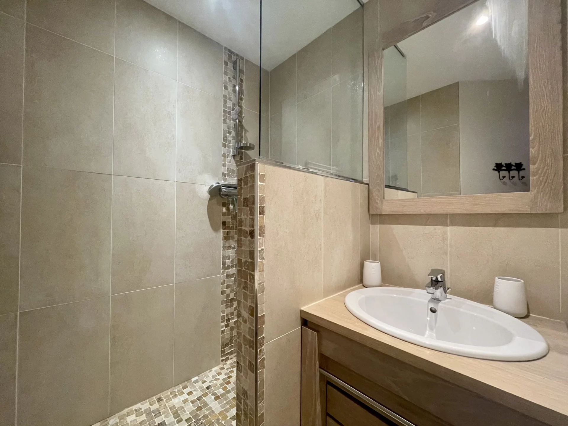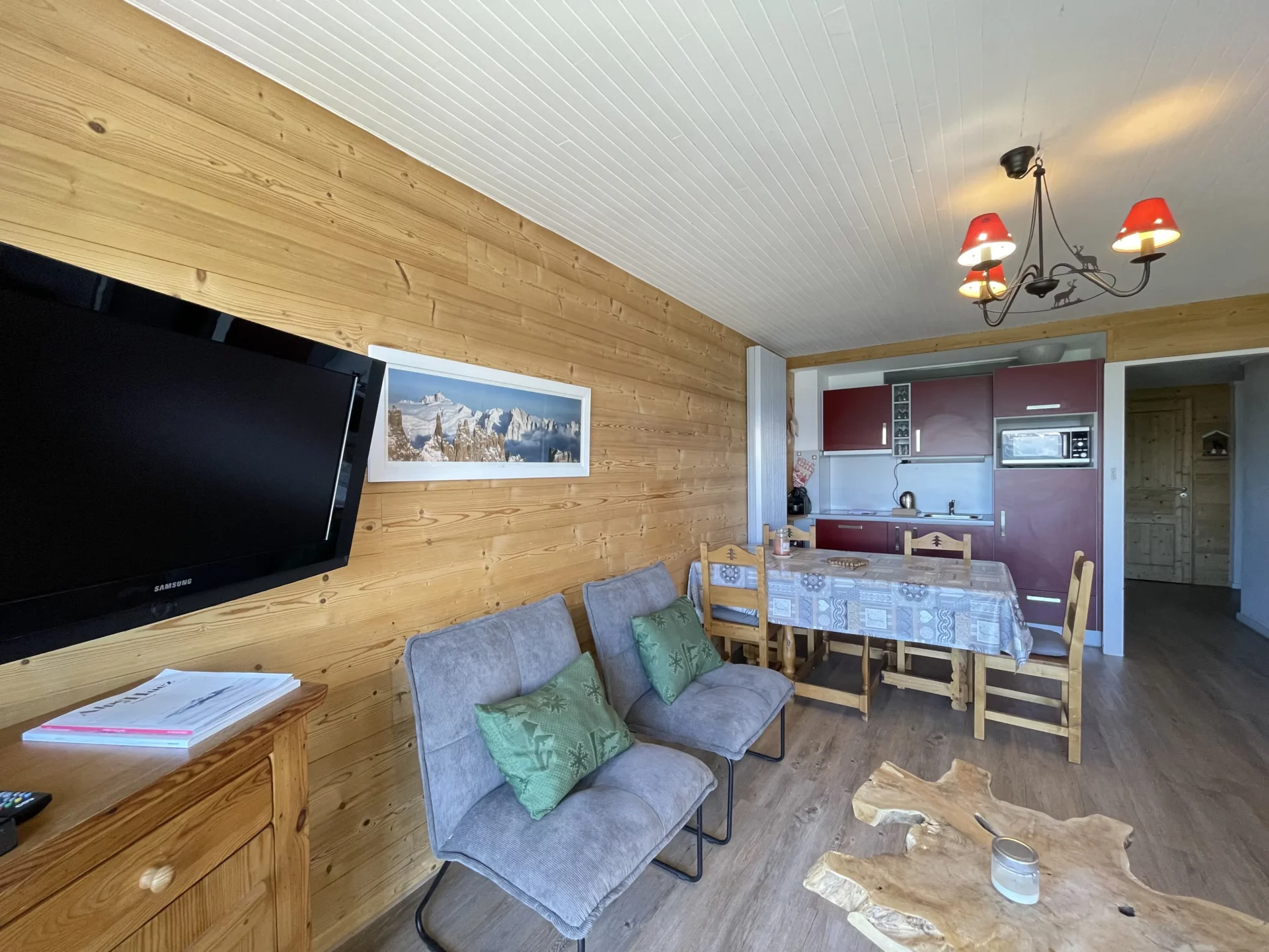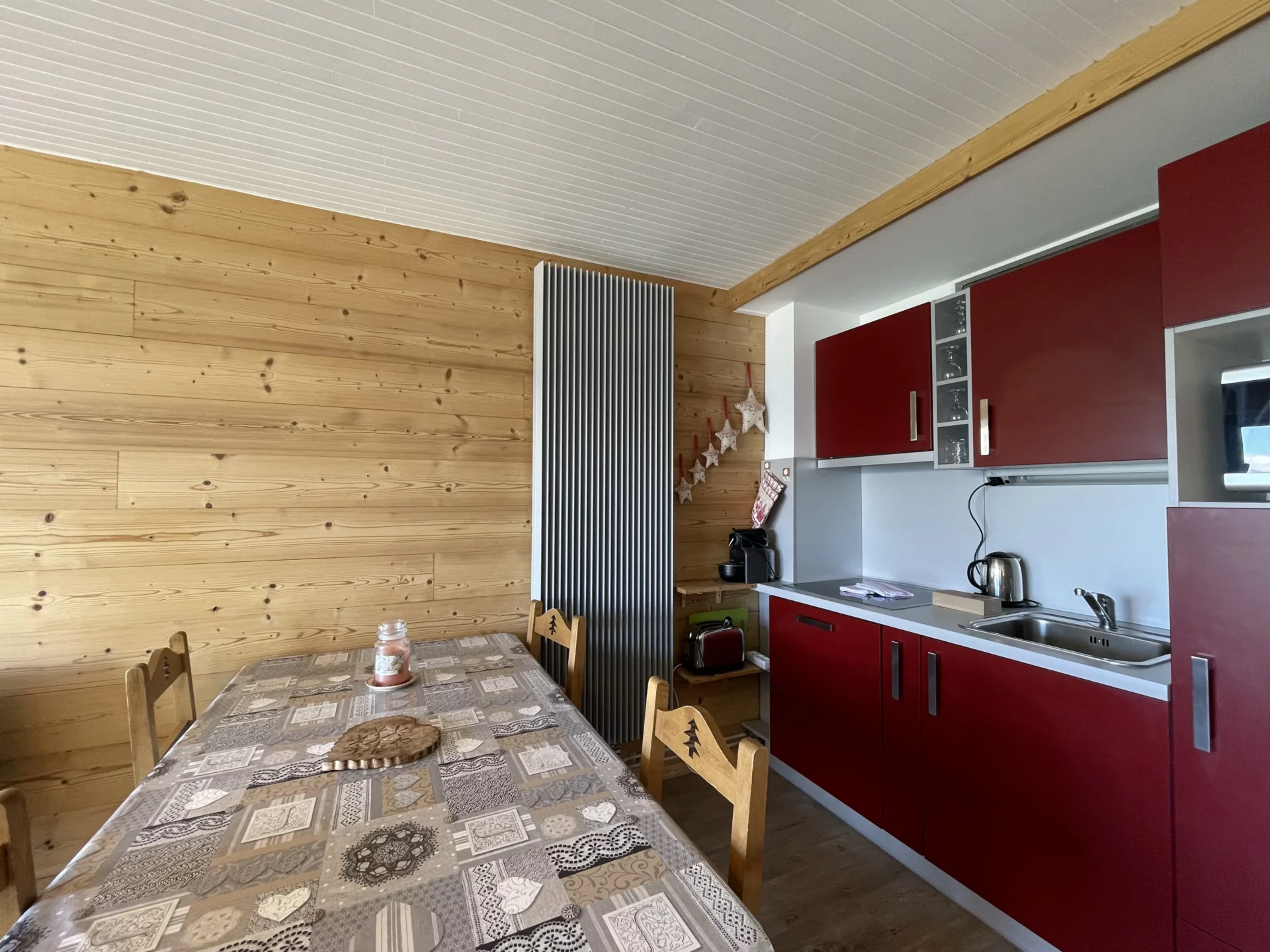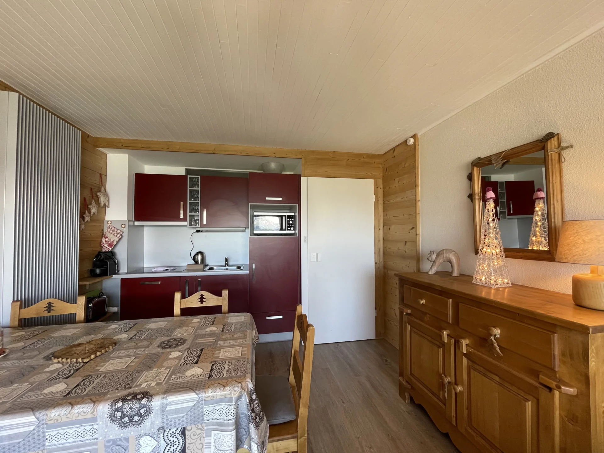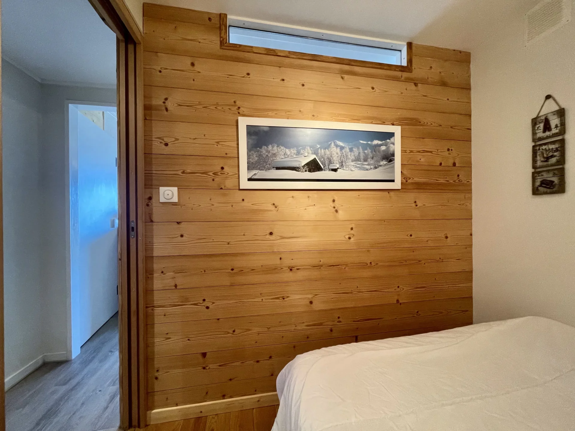 Vous pourrez profiter d’une pièce de vie spacieuse, ouvrant grâce à de larges baies vitrées sur un balcon plein sud. 1 chambre avec lit double (140) et 1 canapé-lit de qualité (160) vous permettent de vous réunir en famille.