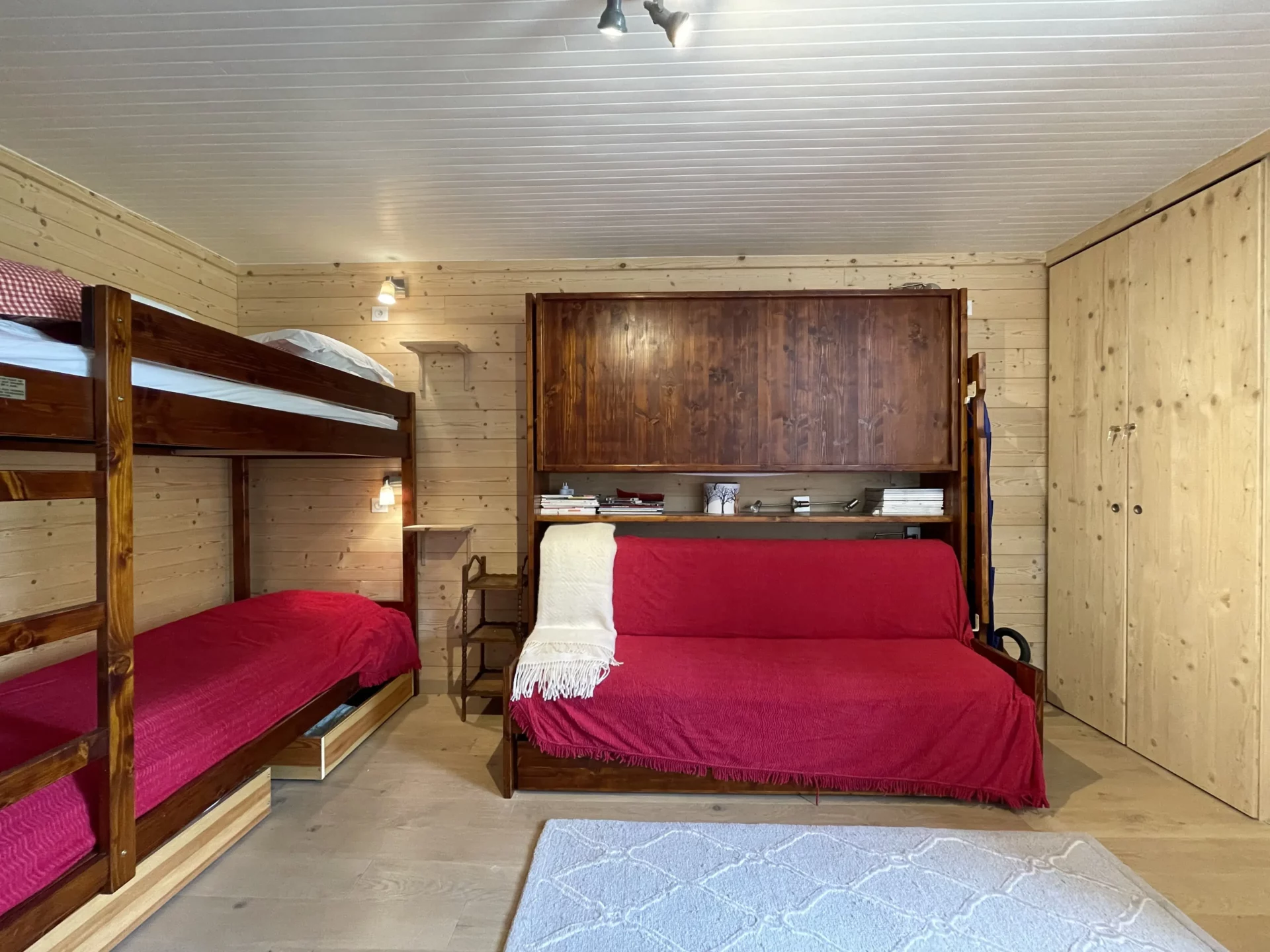 - Une chambre avec 3 lits superposés et 2 lits simples.